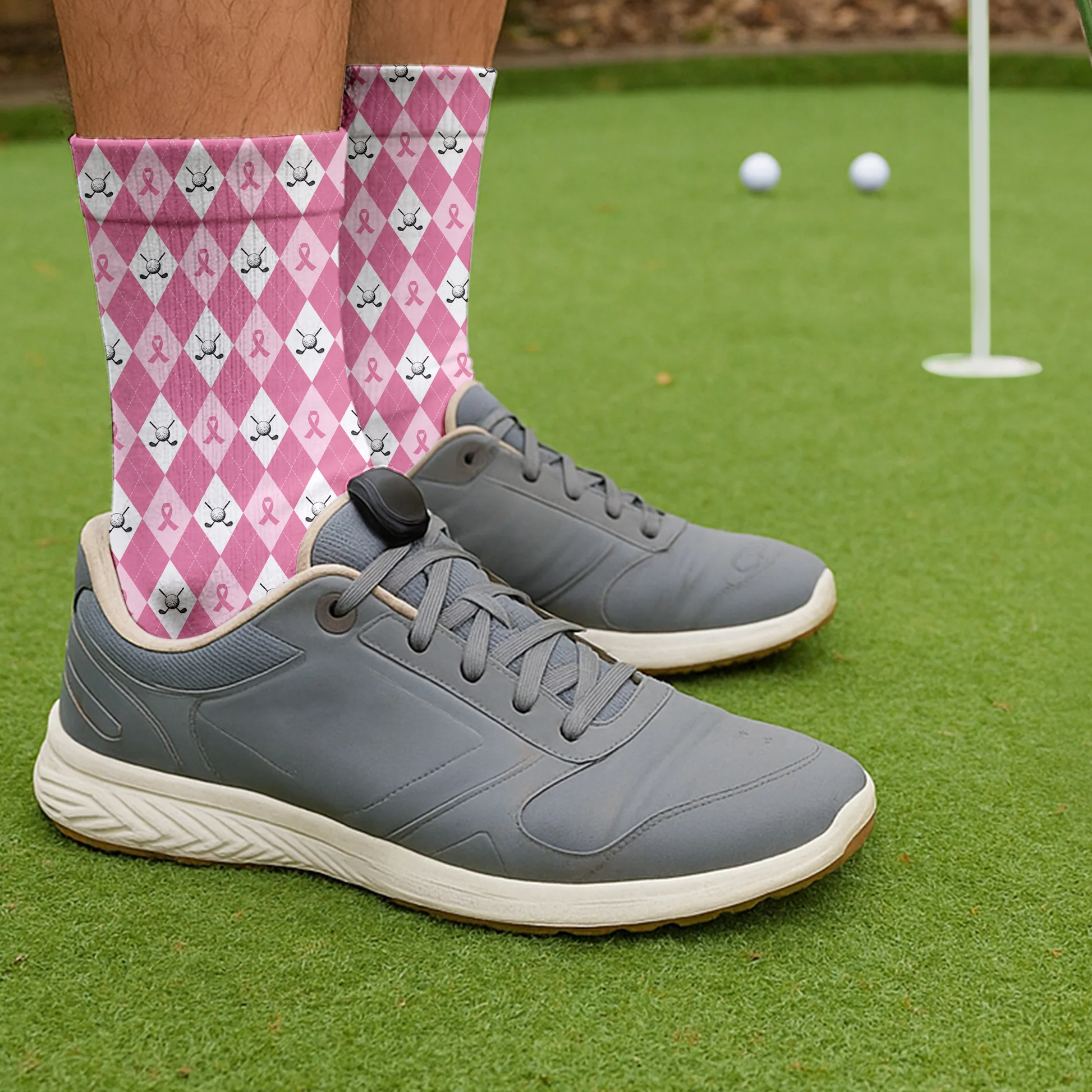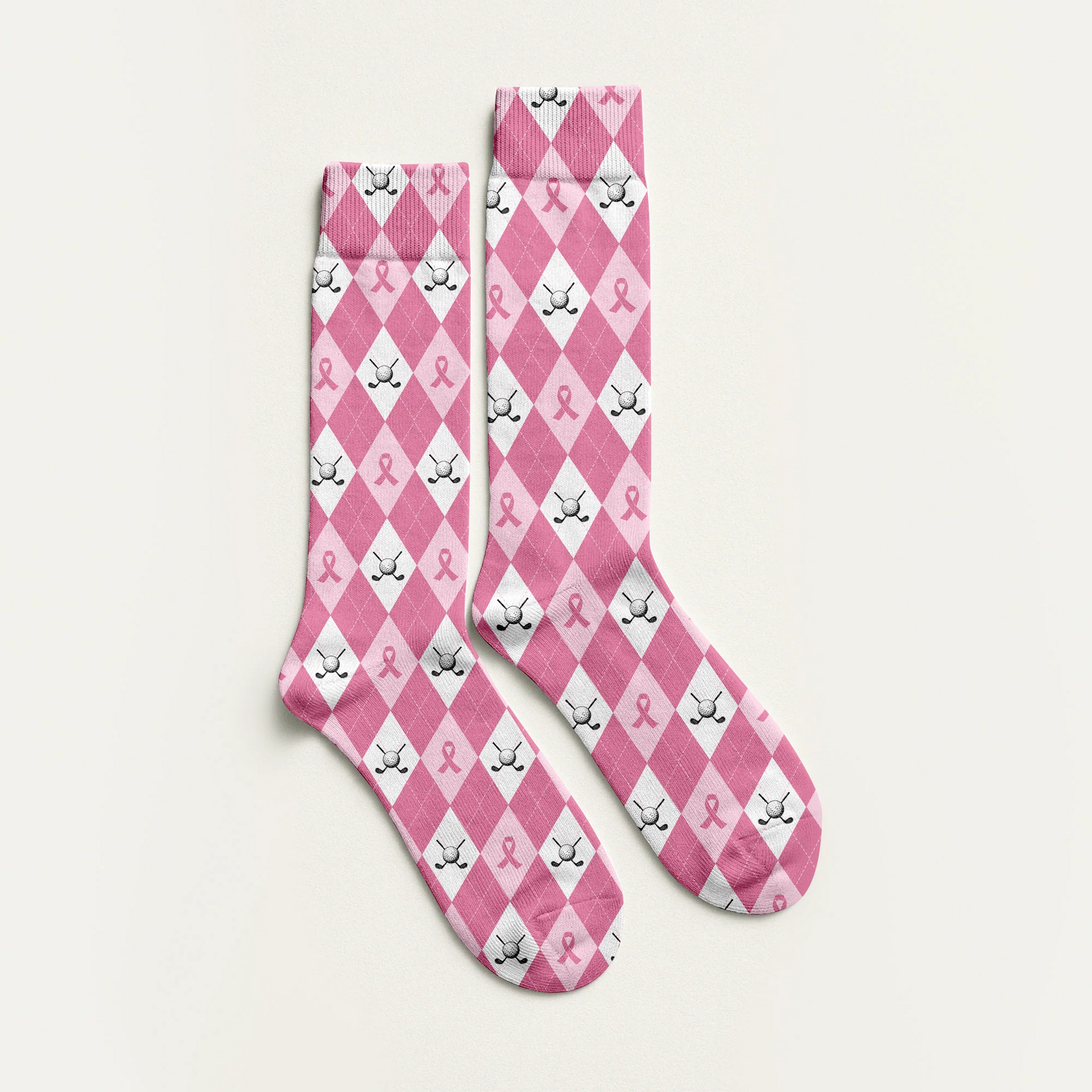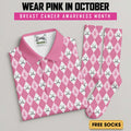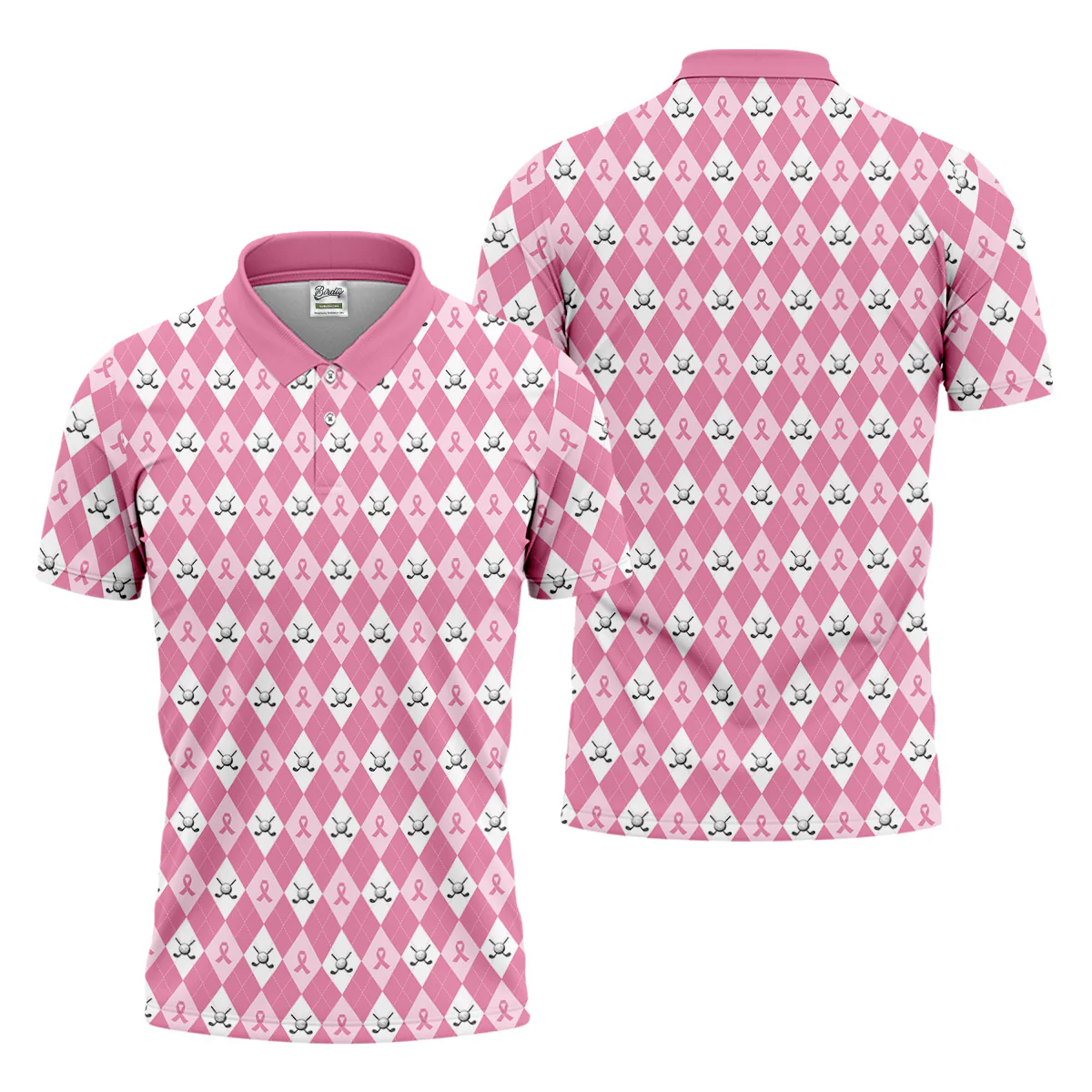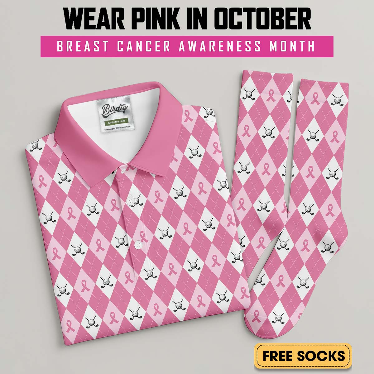 Pink Argyle Men's Golf Shirt With Socks Free, Breast Cancer Awareness Gift