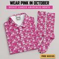 Pink Breast Cancer Men's Golf Shirt With Socks Free, Breast Cancer Awareness Gift