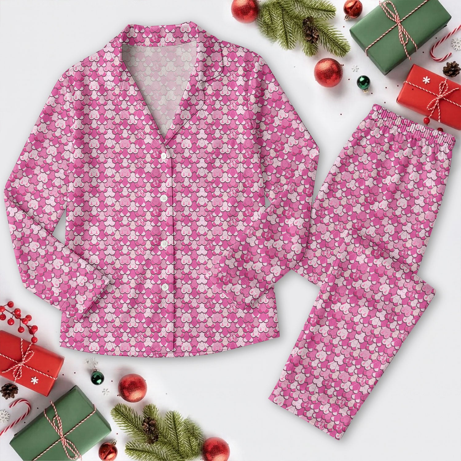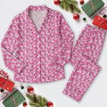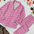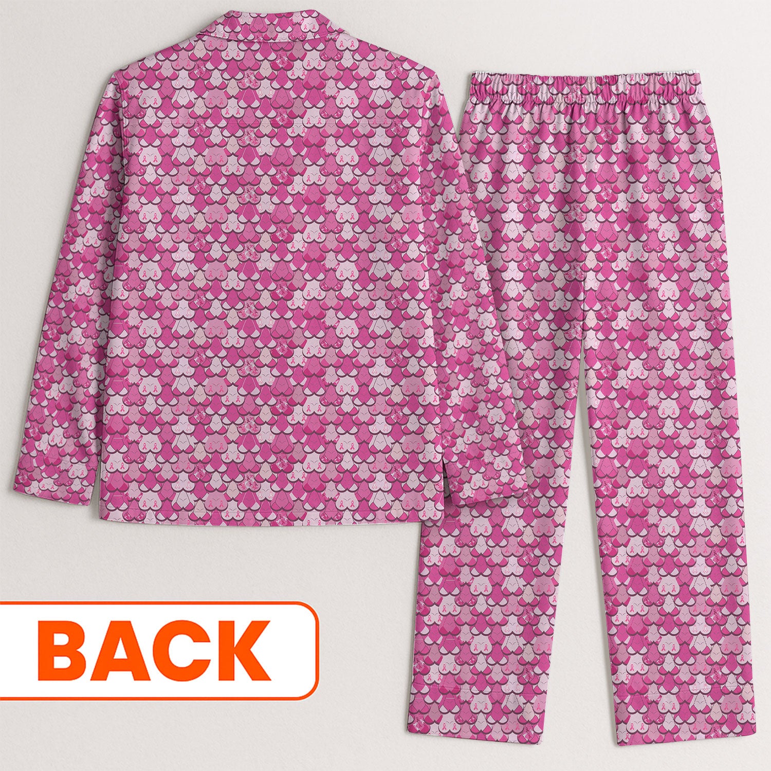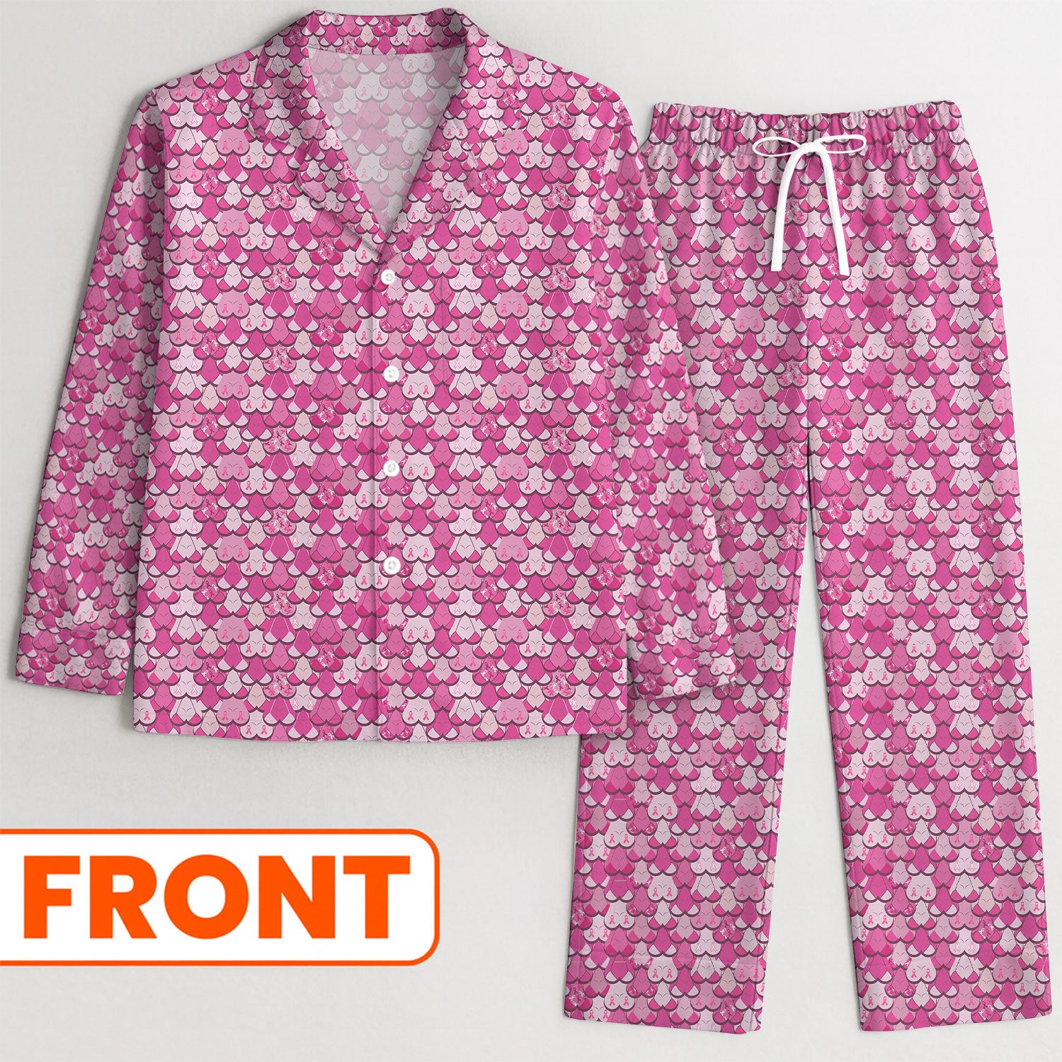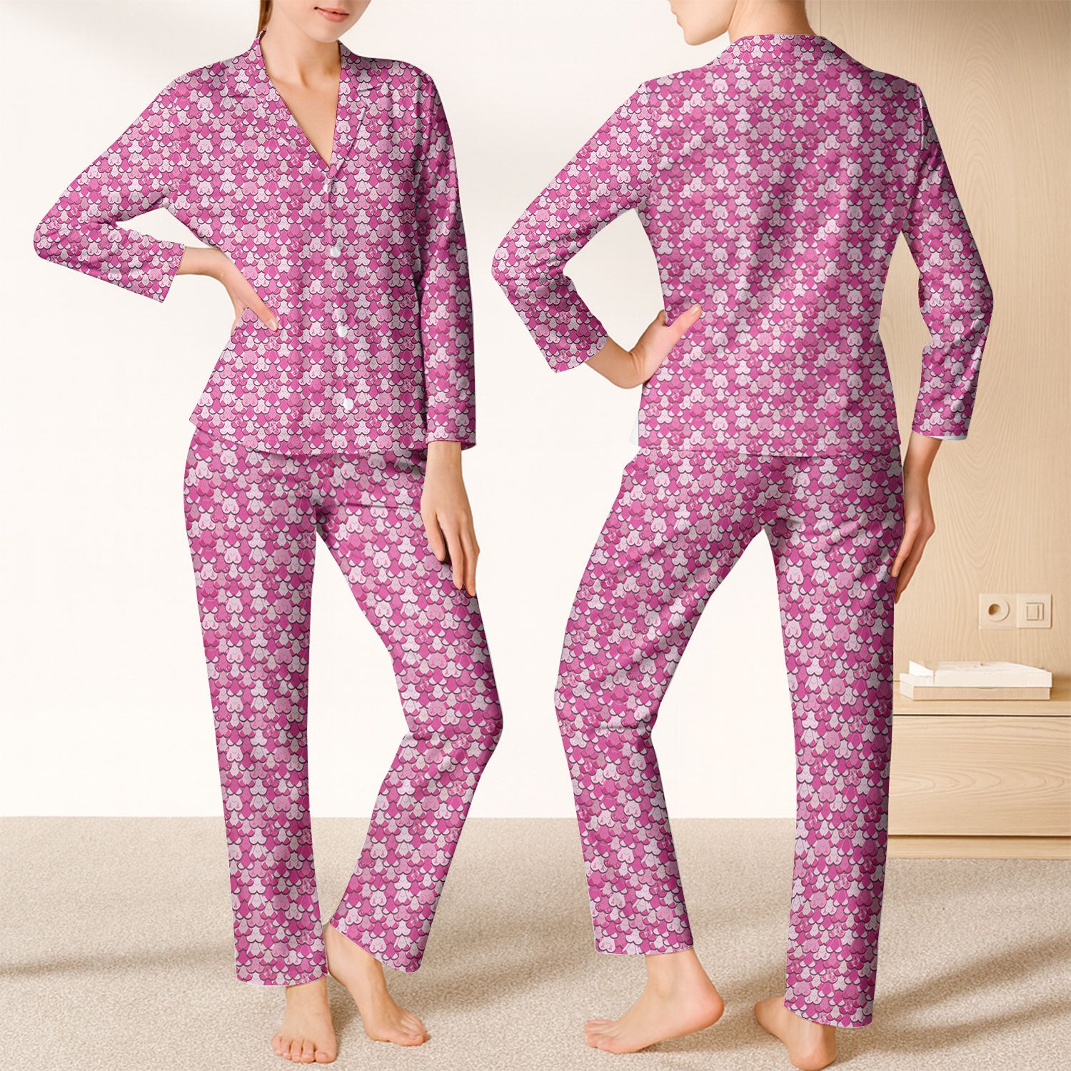 Pink Breast Cancer Long Sleeve Pajama Set, Fun Pajama Sets, Cancer Awareness Pink Satin Pajama
