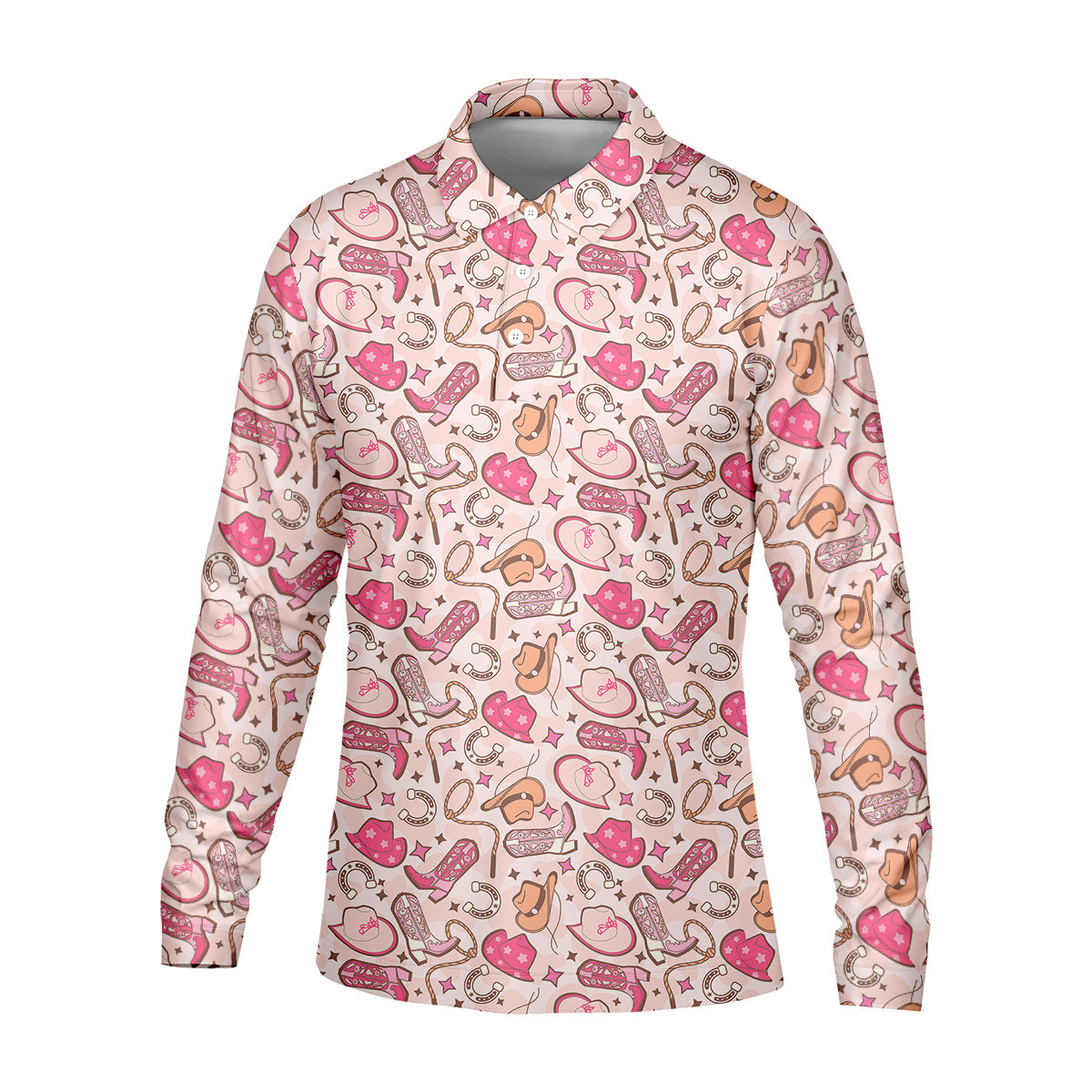 Pink Cowboy Western Golf Shirt, Fun Golf Shirts For Men, Men's Golf Polo, Golfing Apparel