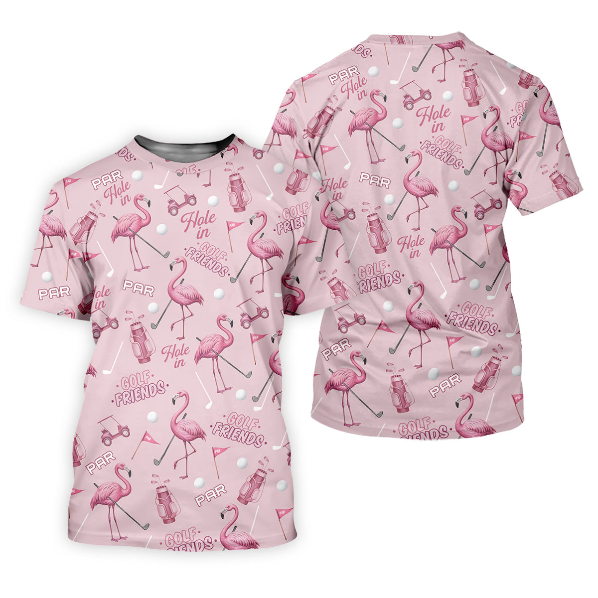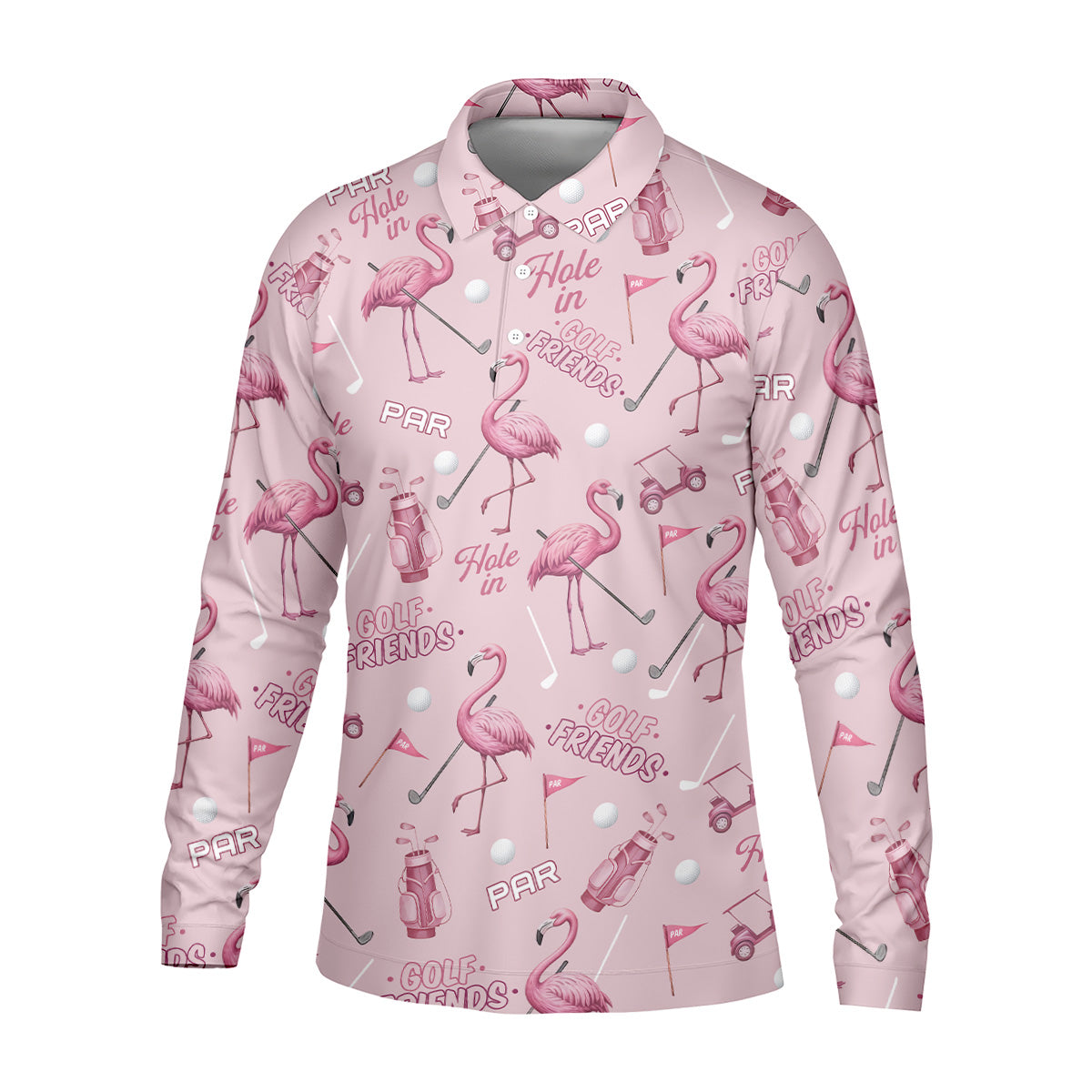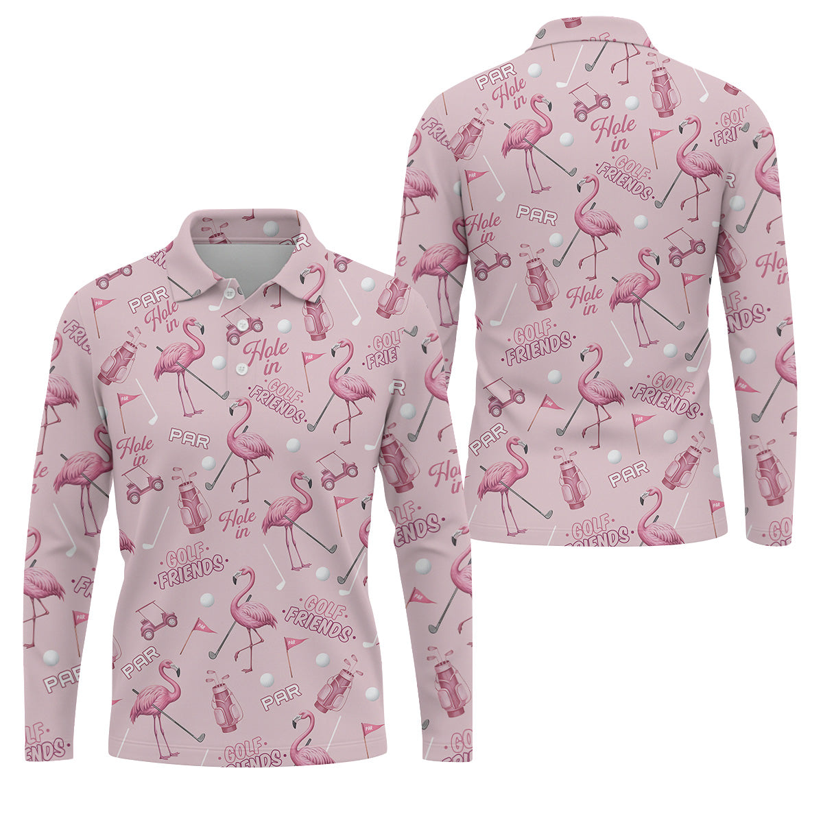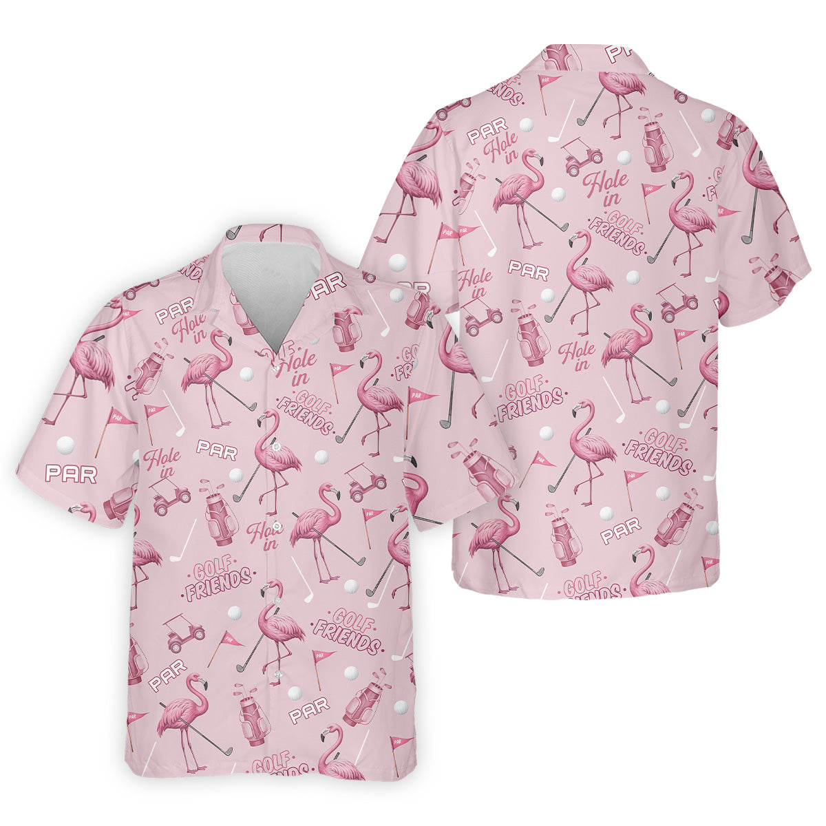 Pink Flamingo Customized Golf Polos, Fun Men's Golf Polos, Hawaiian Golf Shirts, Golfing Apparel