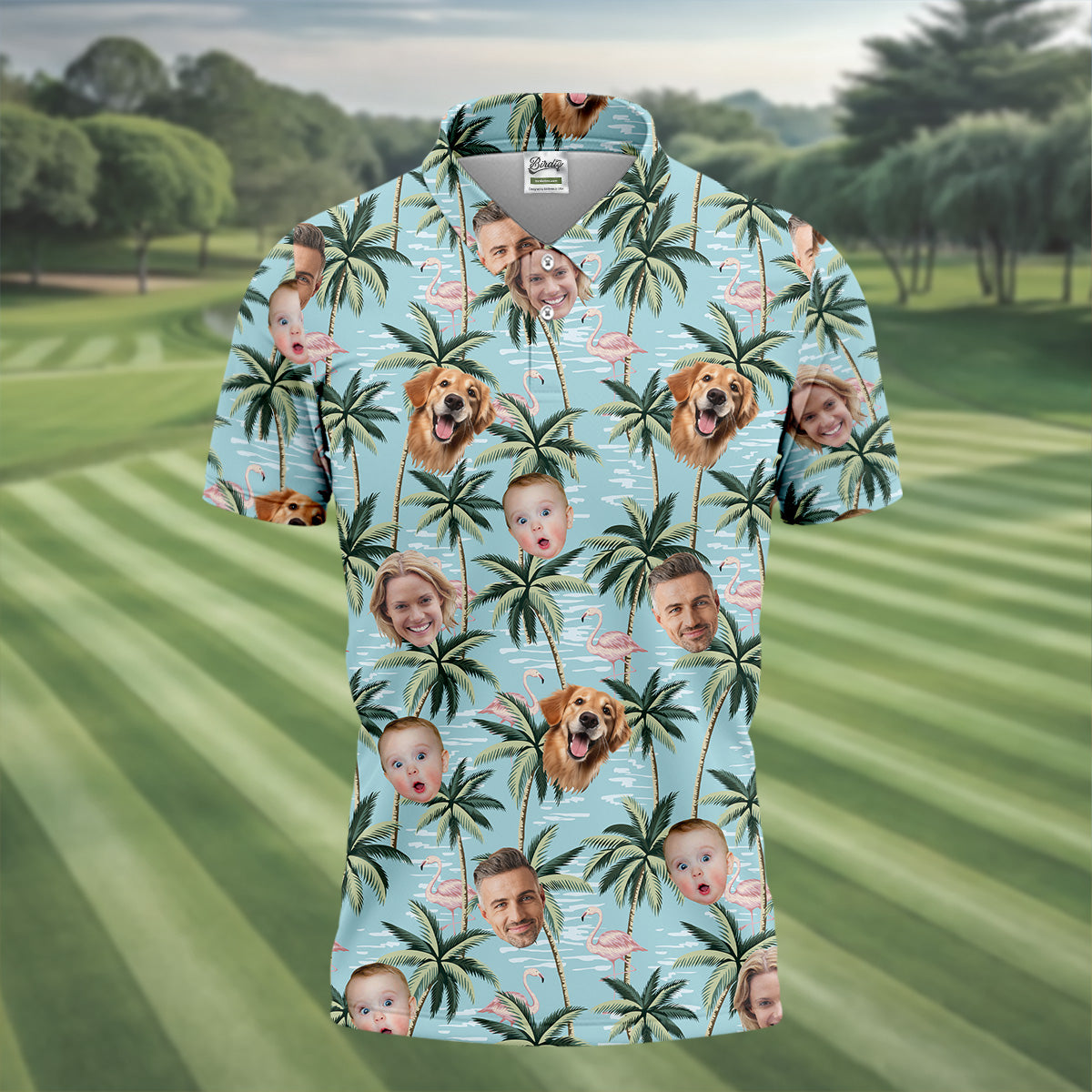 Pink Flamingo Hawaiian Shirt, Custom Team Shirt, Green Polo Shirt, Best Gifts For Men Golfers