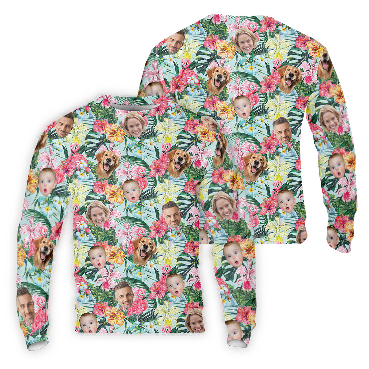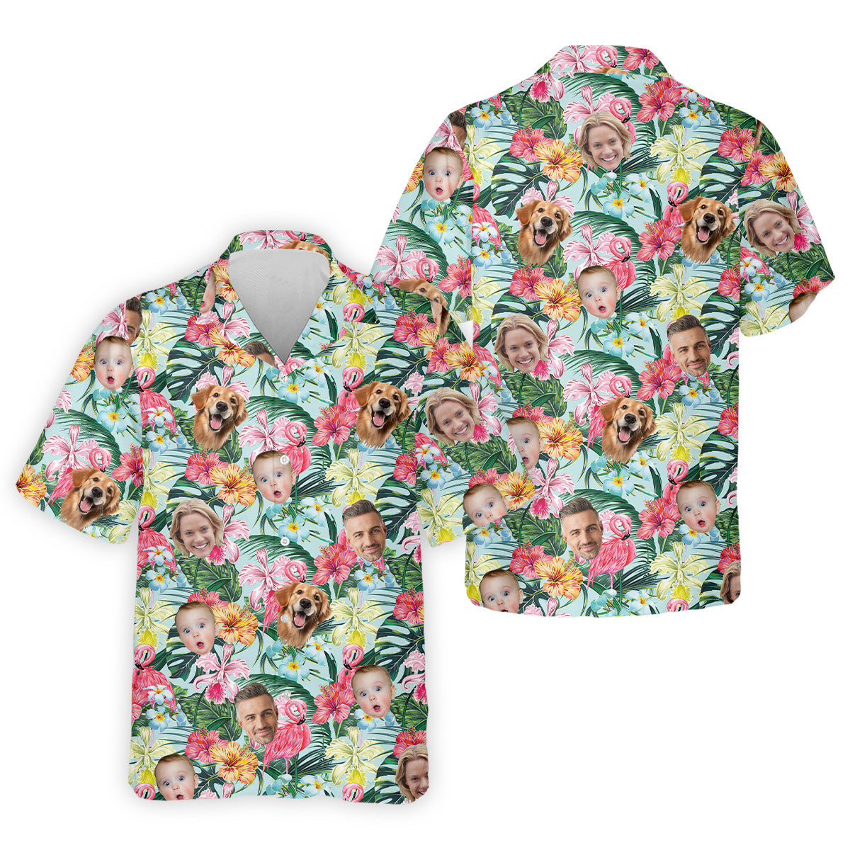 Pink Flamingo Hawaiian Shirt, Hibiscus Shirt, Custom Face Shirt, Matching Hawaiian Outfits, Mens Golf Polo Shirts