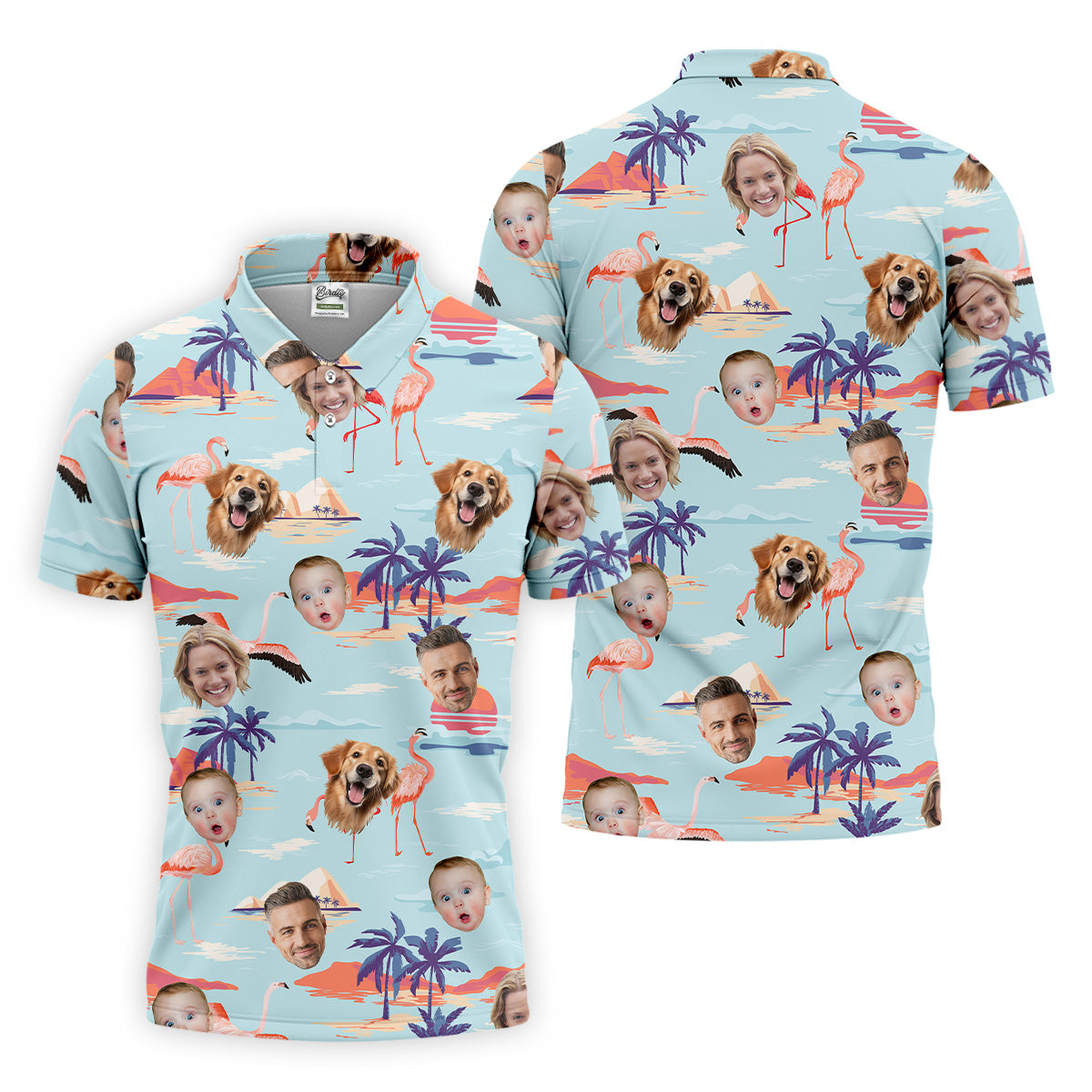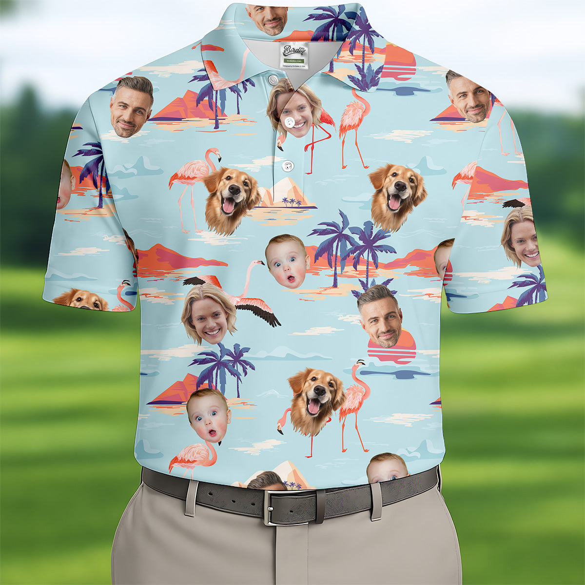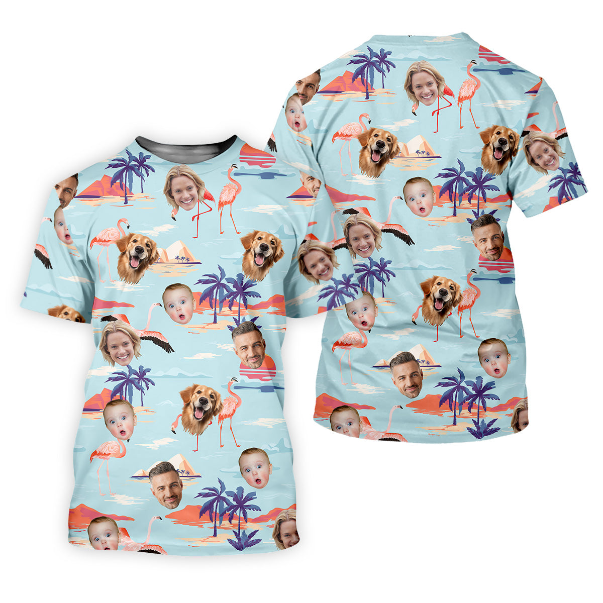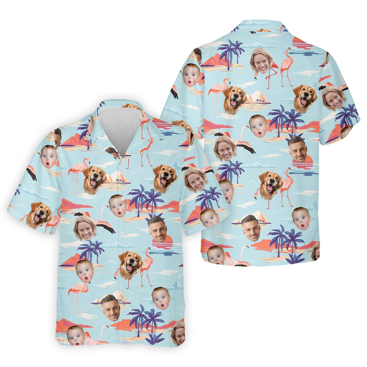 Pink Flamingo Hawaiian Shirt, Men Palm Tree Shirt, Custom Face Shirt, Matching Hawaiian Outfits, Best Golf Gifts For Men