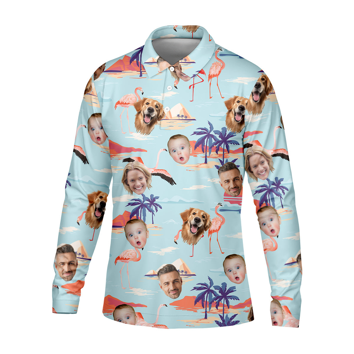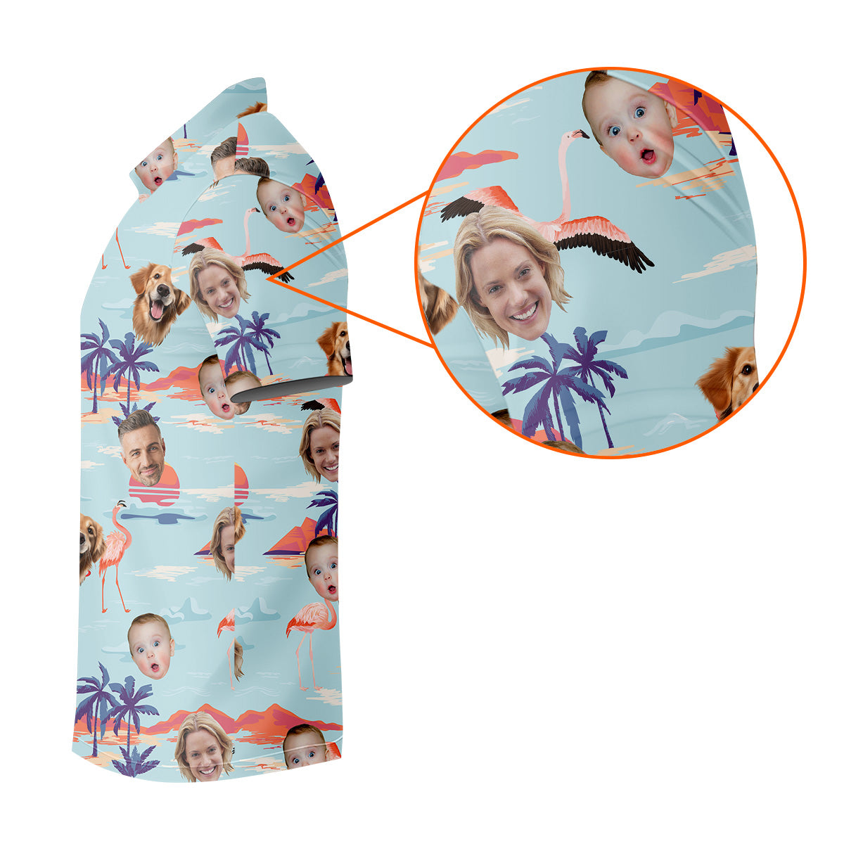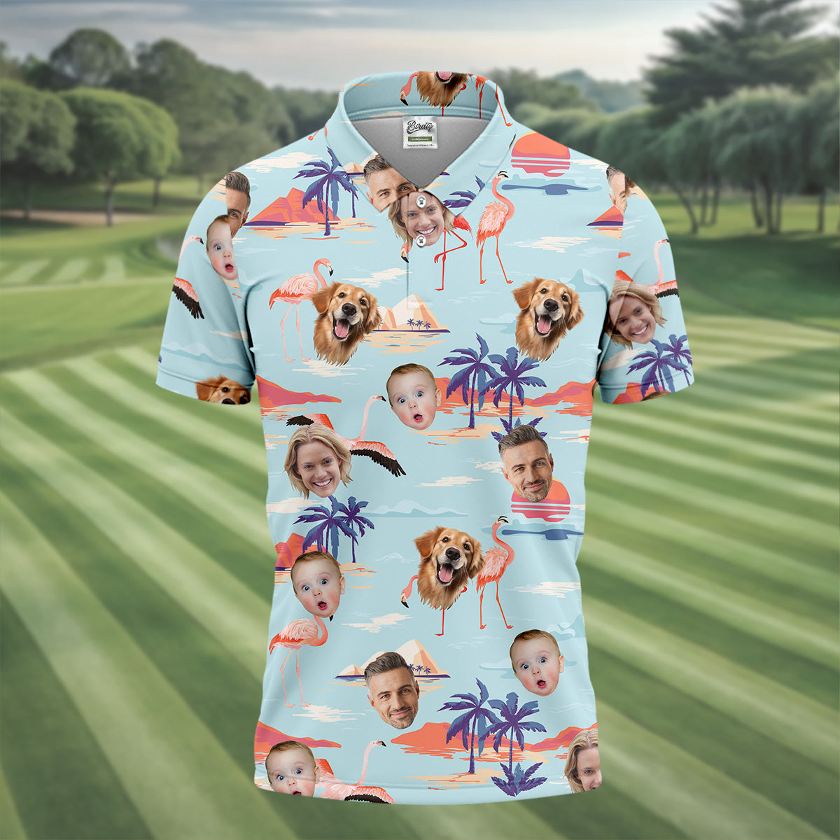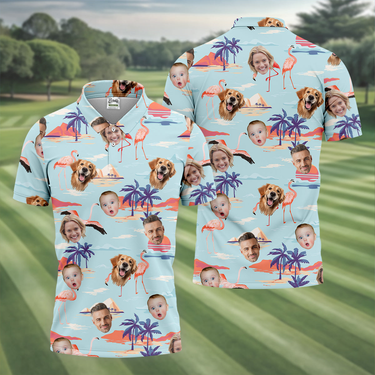 Pink Flamingo Hawaiian Shirt, Men Palm Tree Shirt, Custom Face Shirt, Matching Hawaiian Outfits, Best Golf Gifts For Men