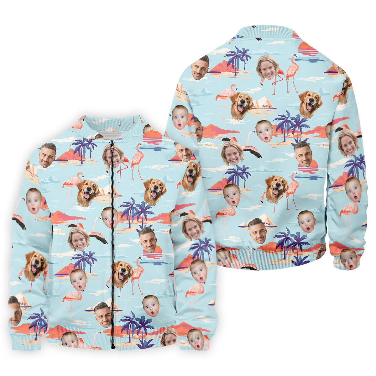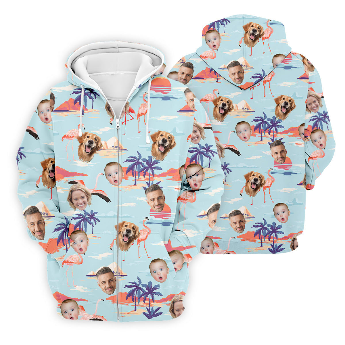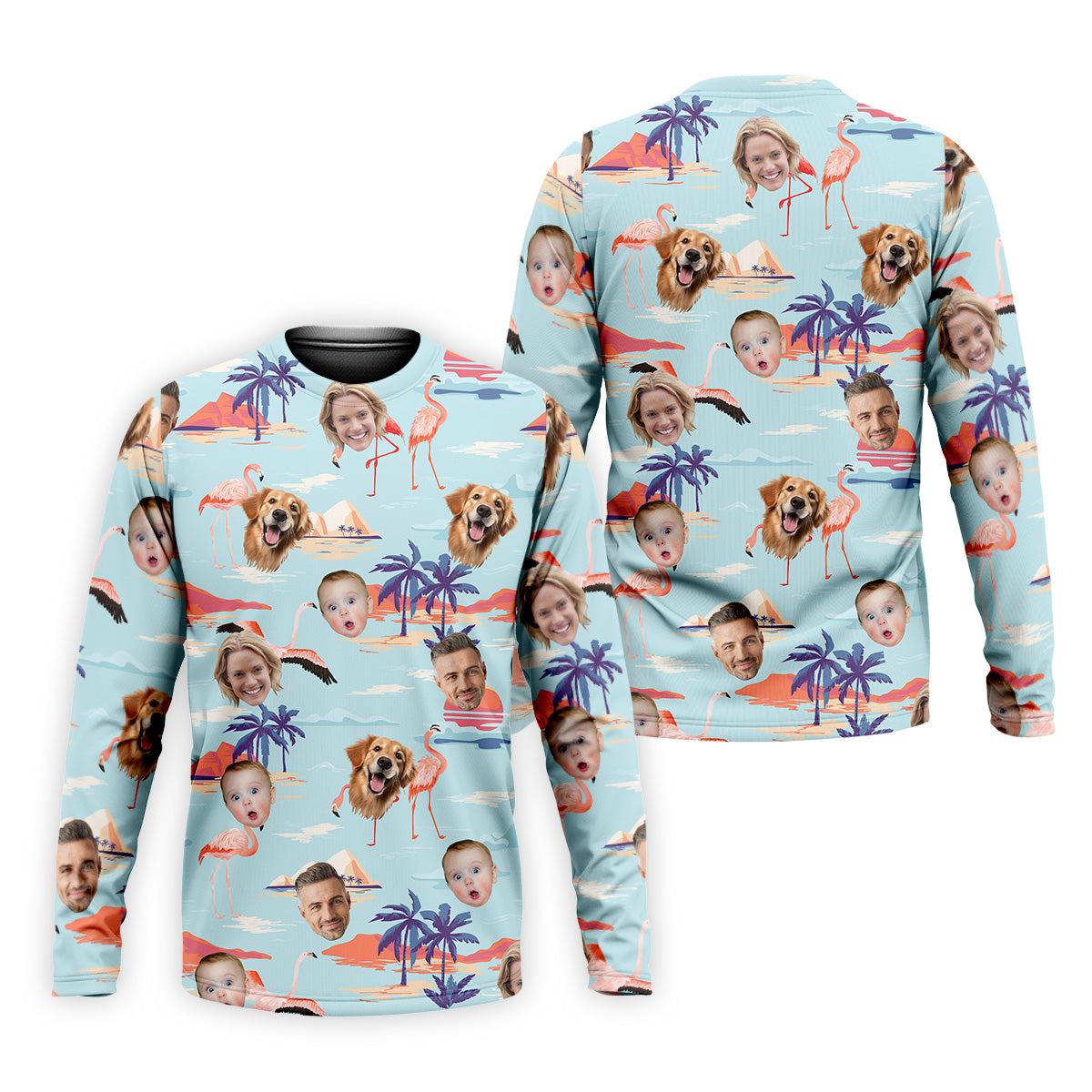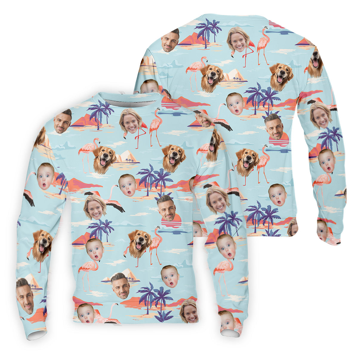 Pink Flamingo Hawaiian Shirt, Men Palm Tree Shirt, Custom Face Shirt, Matching Hawaiian Outfits, Best Golf Gifts For Men