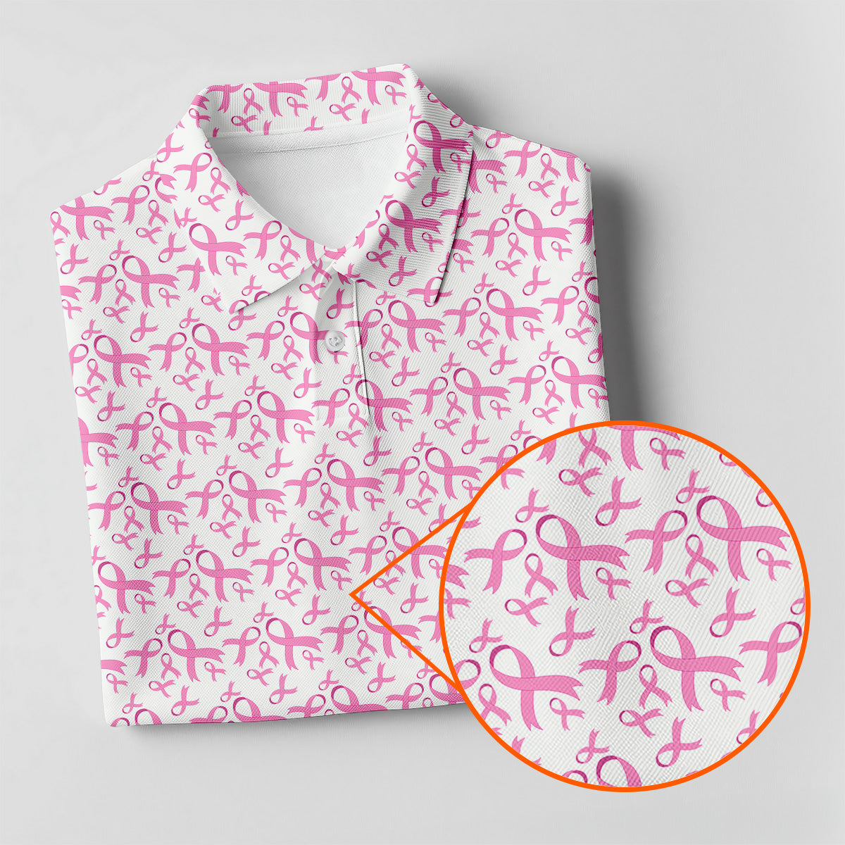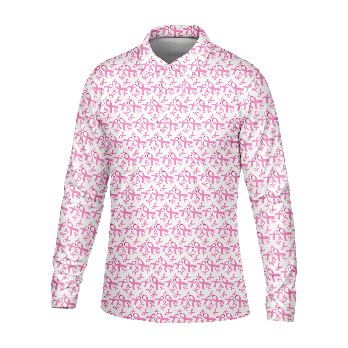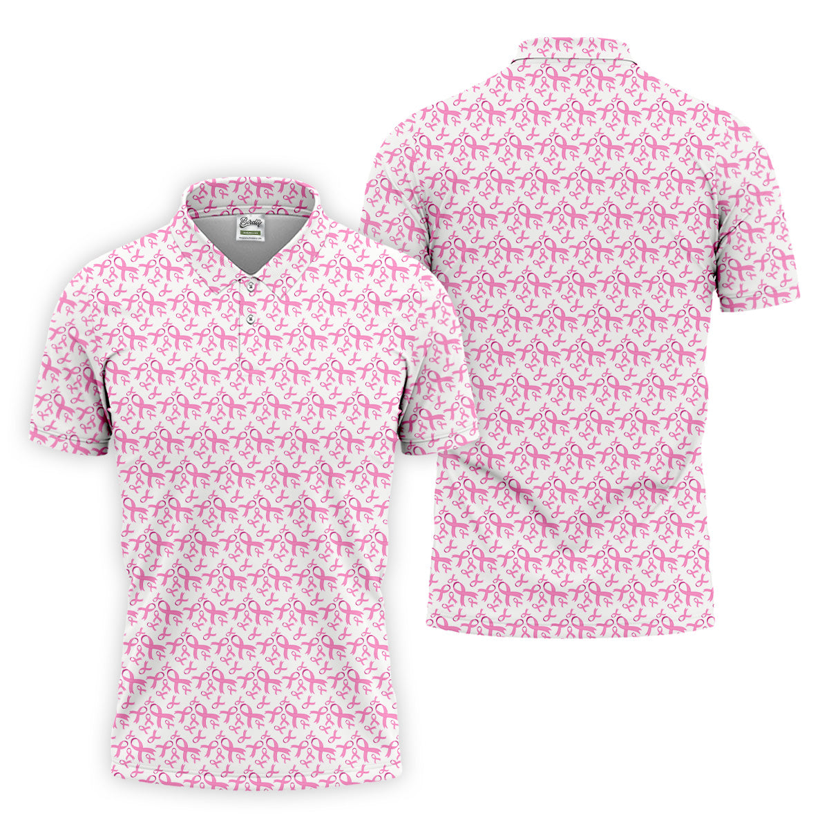 Pink Ribbon Breast Cancer Men Golf Shirt, Breast Cancer Awareness Shirt, Golf Gifts For Men