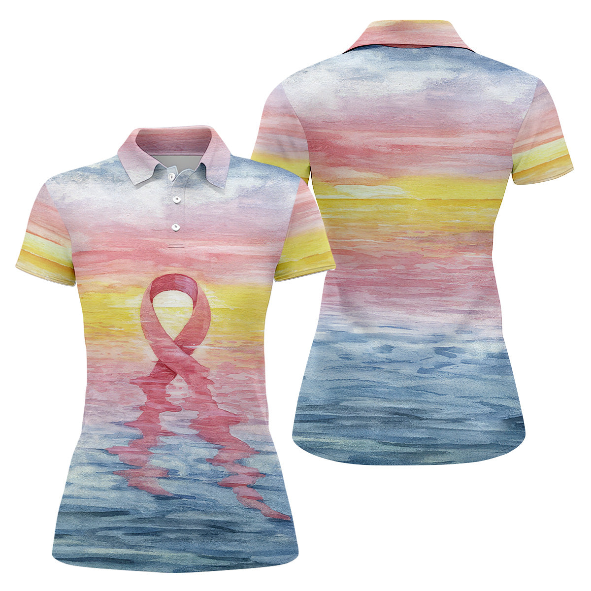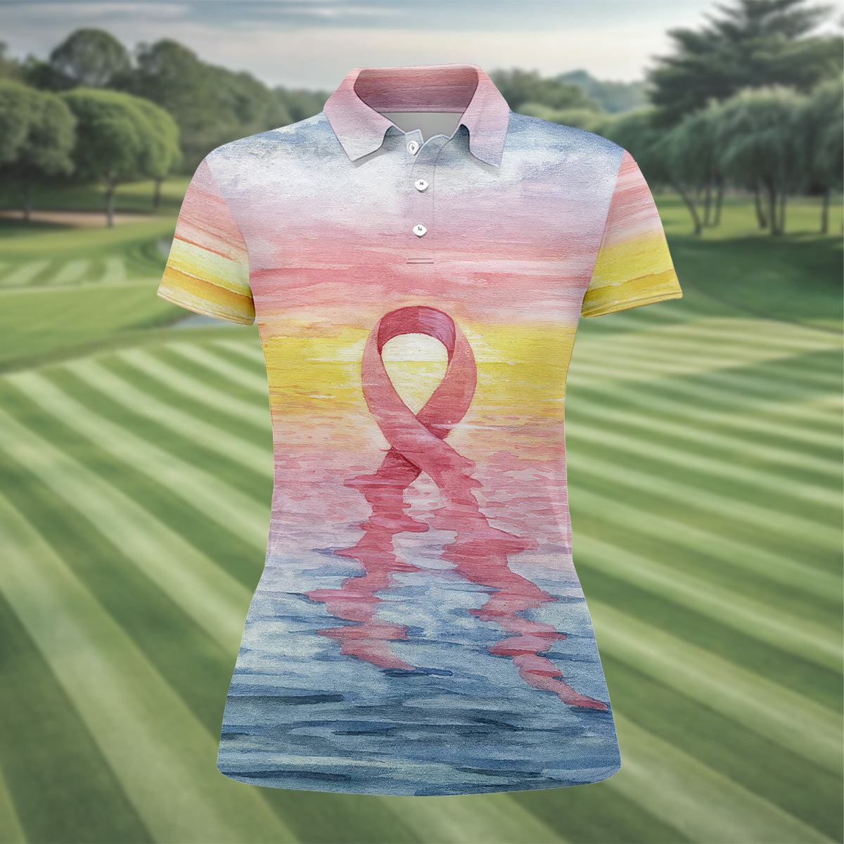 Pink Ribbon Breast Cancer Women Golf Shirt, Breast Cancer Awareness Shirt, Ladies Golf Shirt, Women Golf Gift