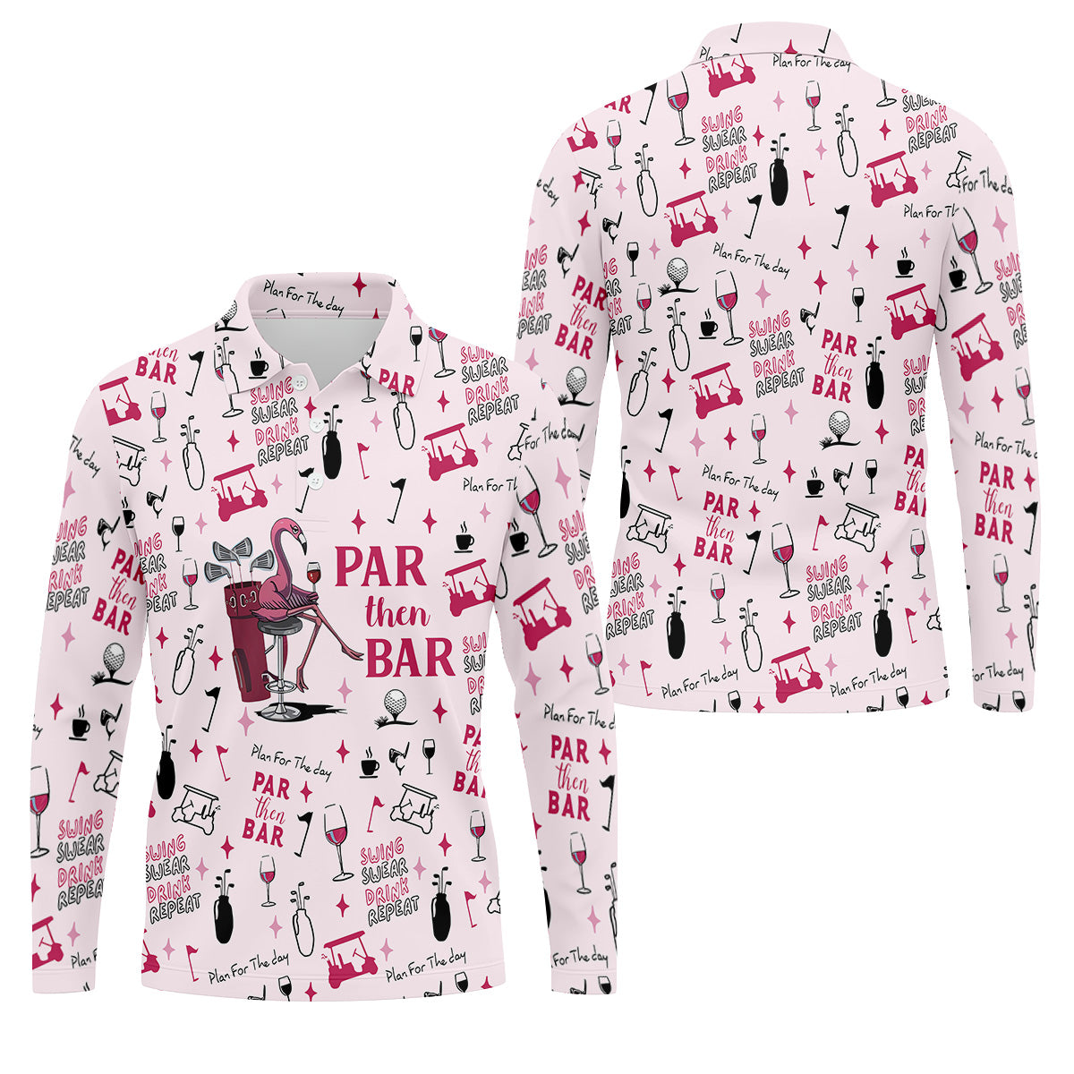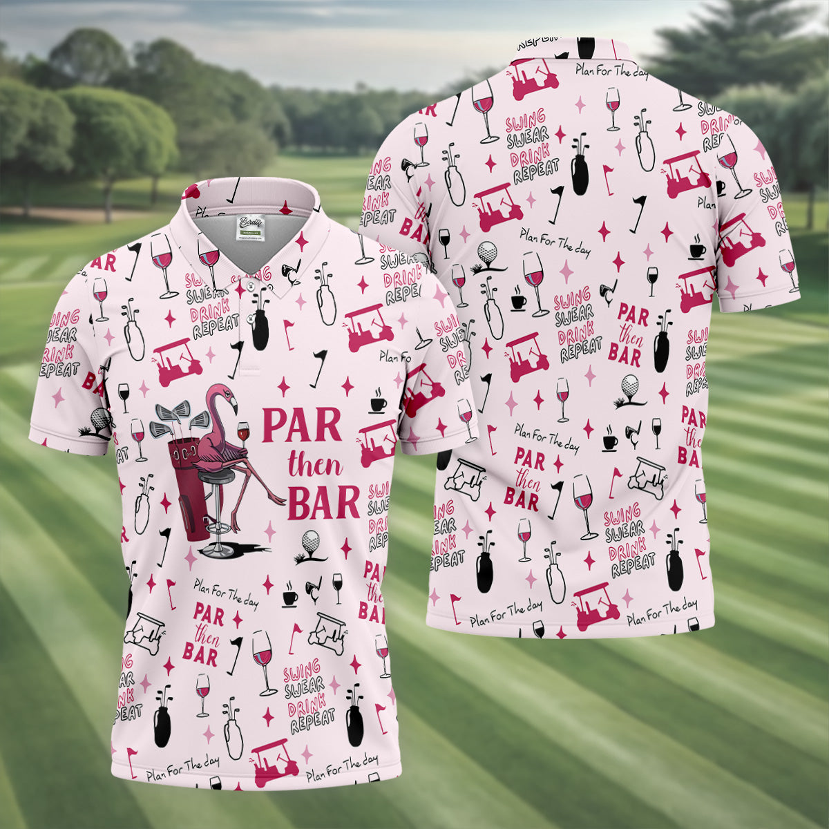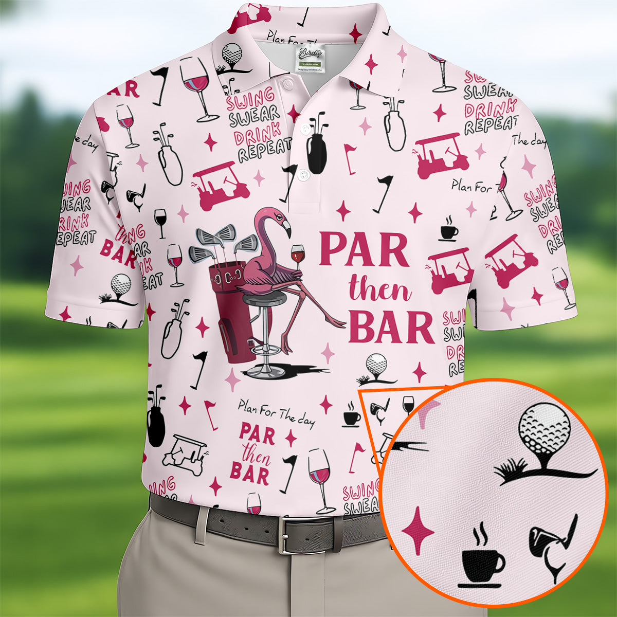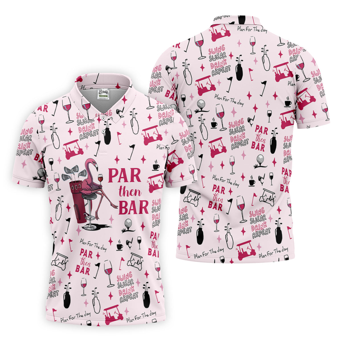 Pink Swing Swear Drink Repeat Par Then Bar Flamingo Golf Shirt, Fun Golf Shirts For Men, Polo For Men