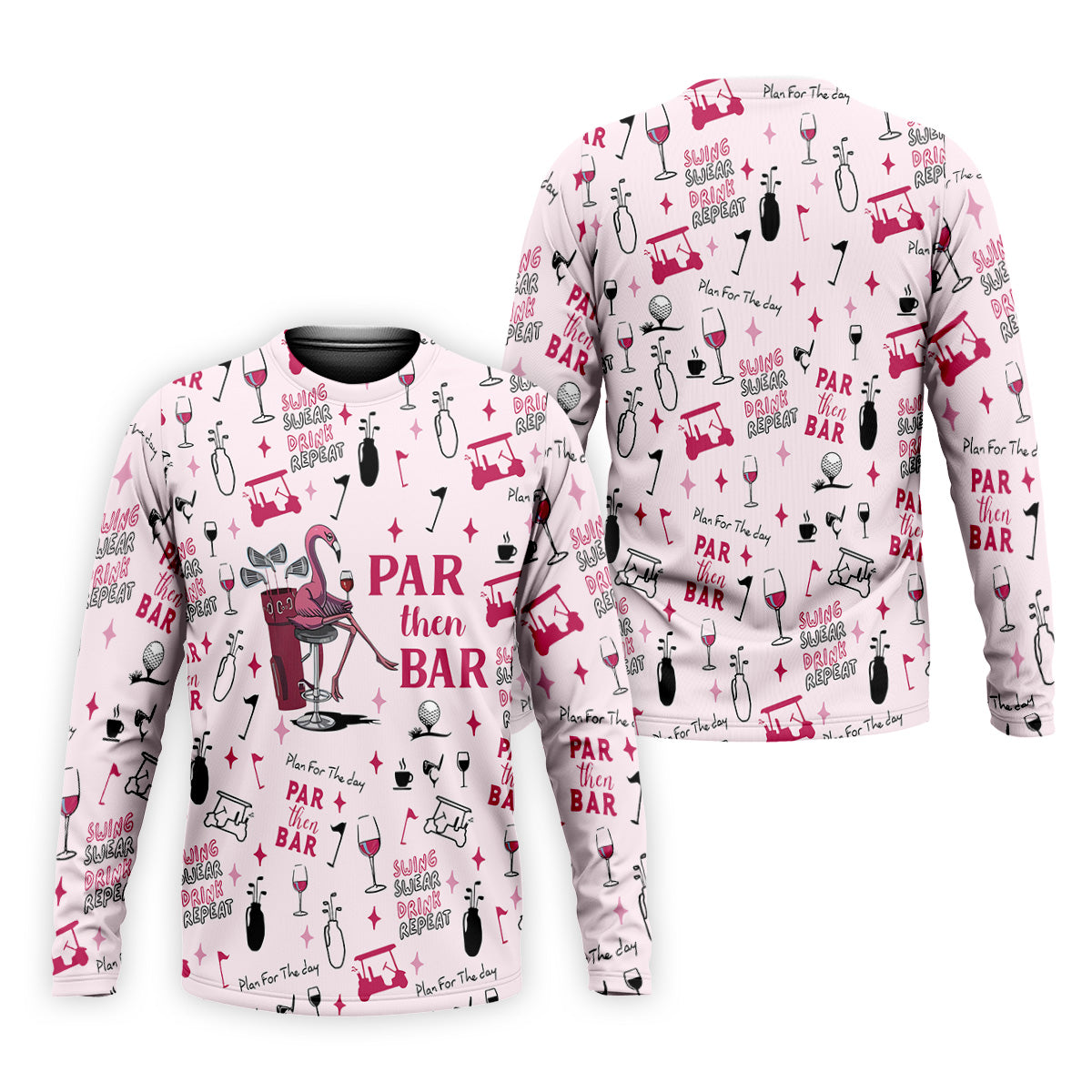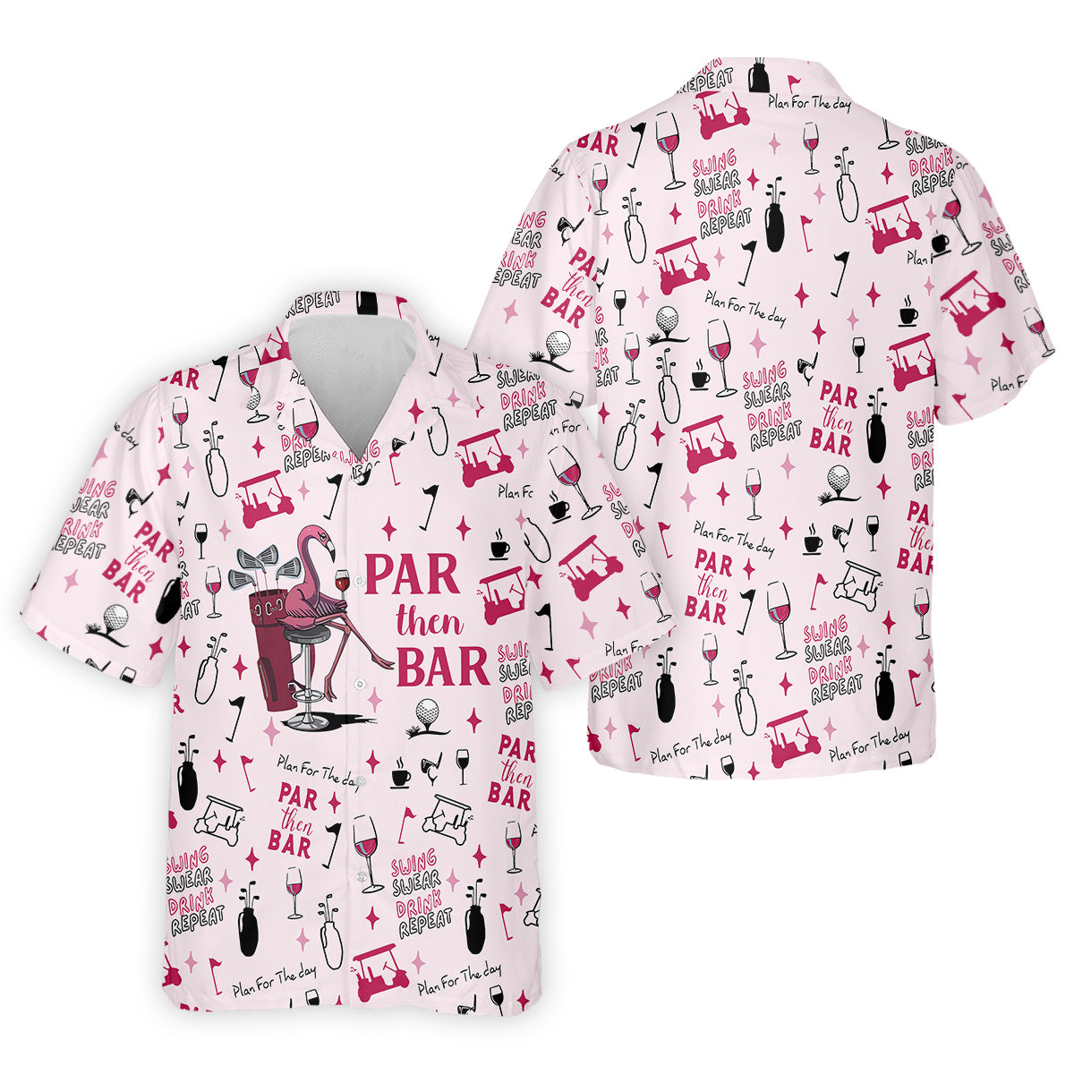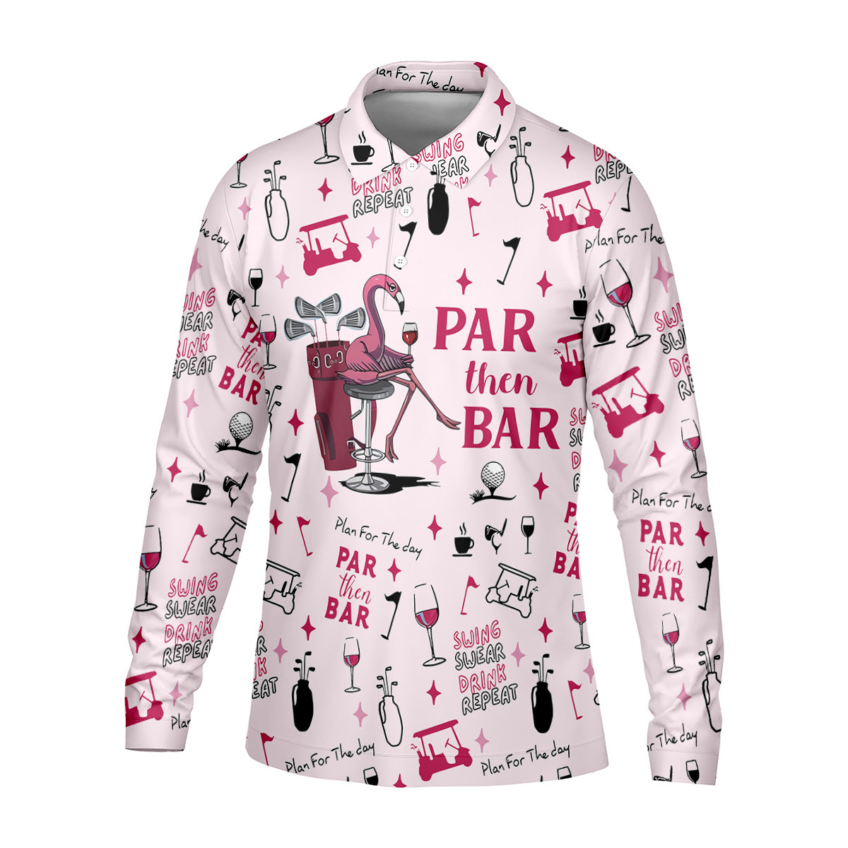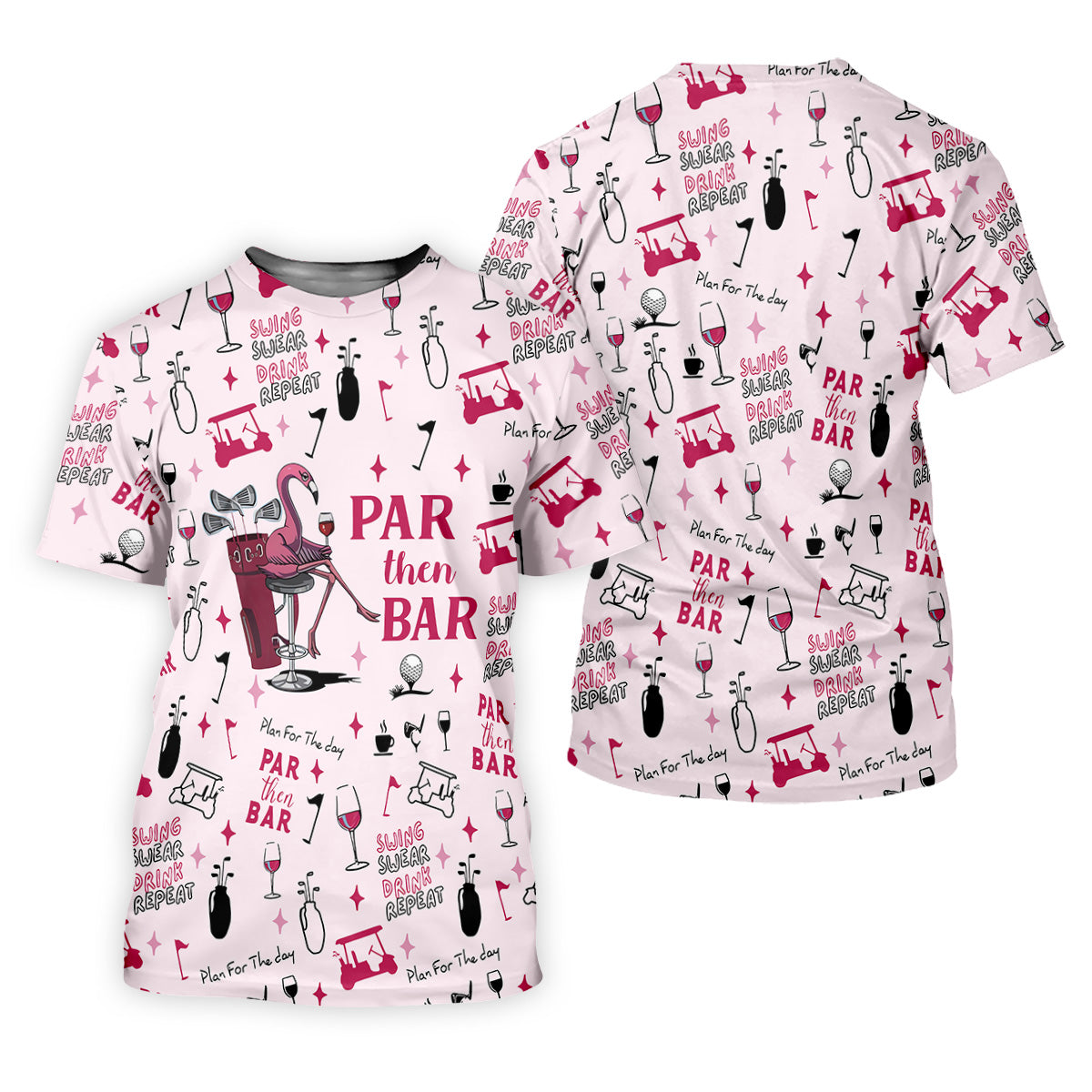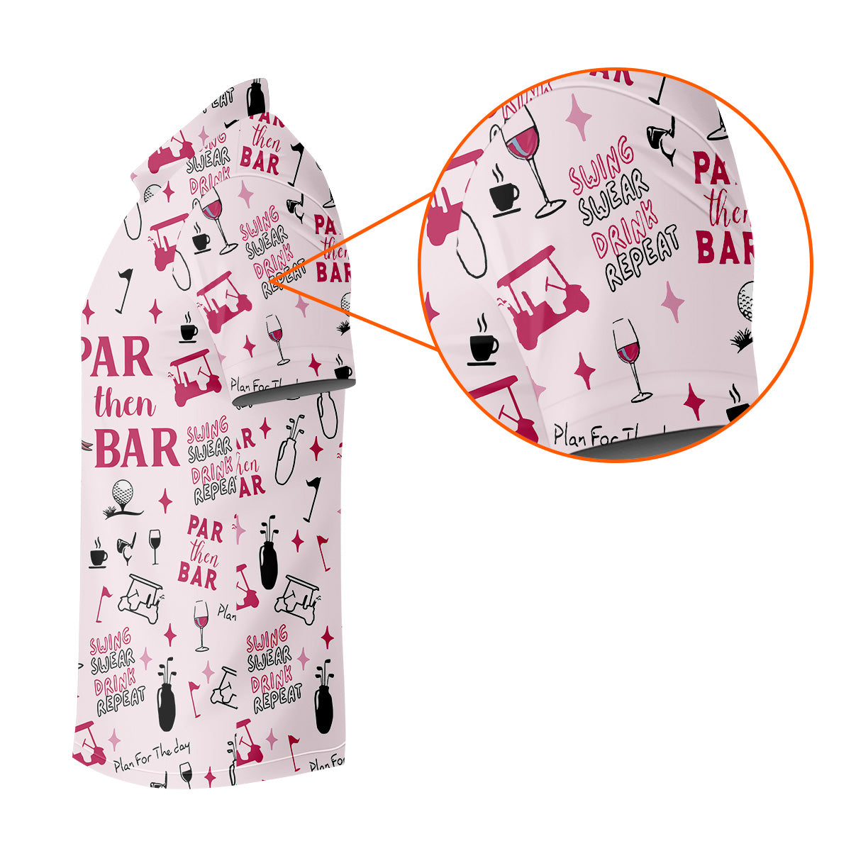 Pink Swing Swear Drink Repeat Par Then Bar Flamingo Golf Shirt, Fun Golf Shirts For Men, Polo For Men