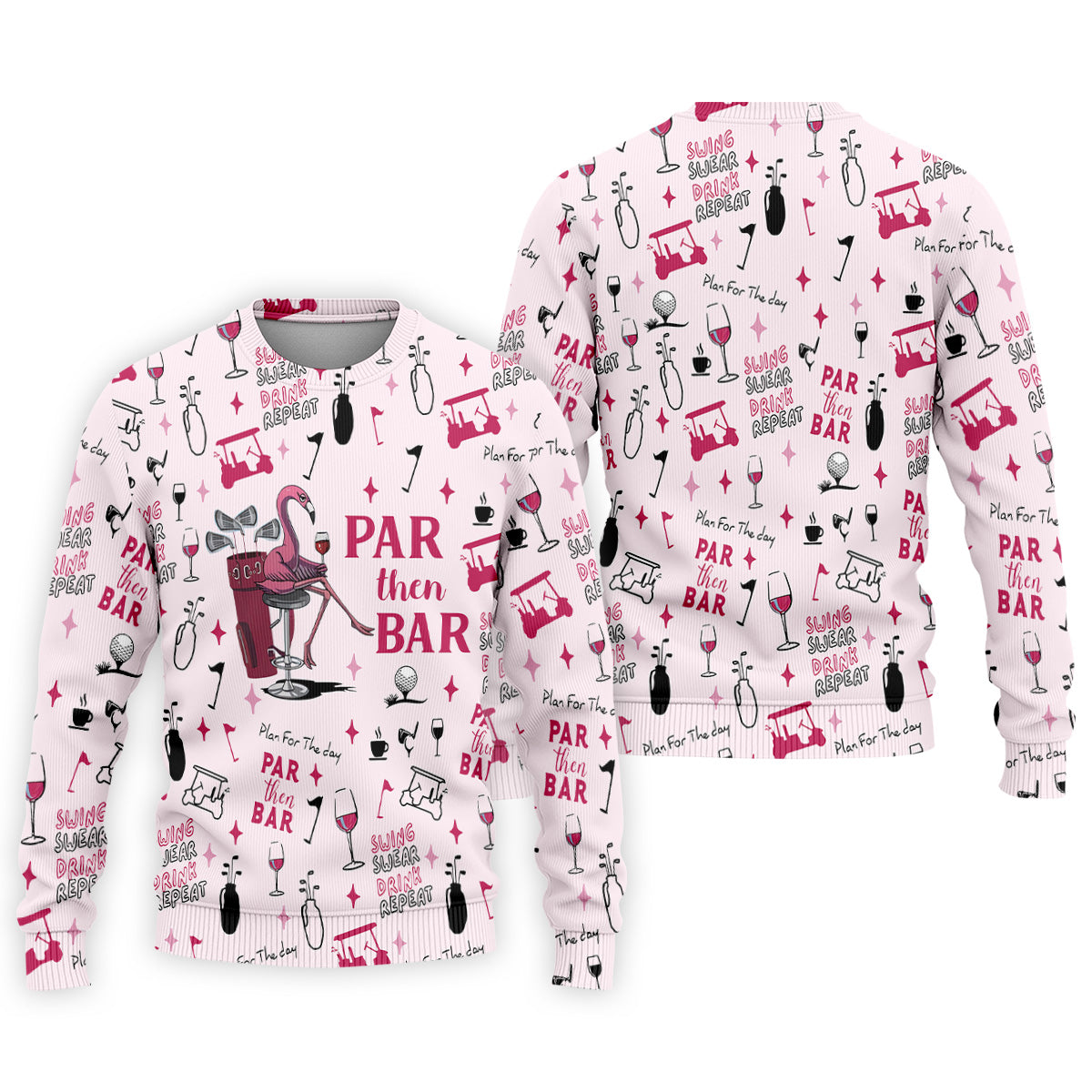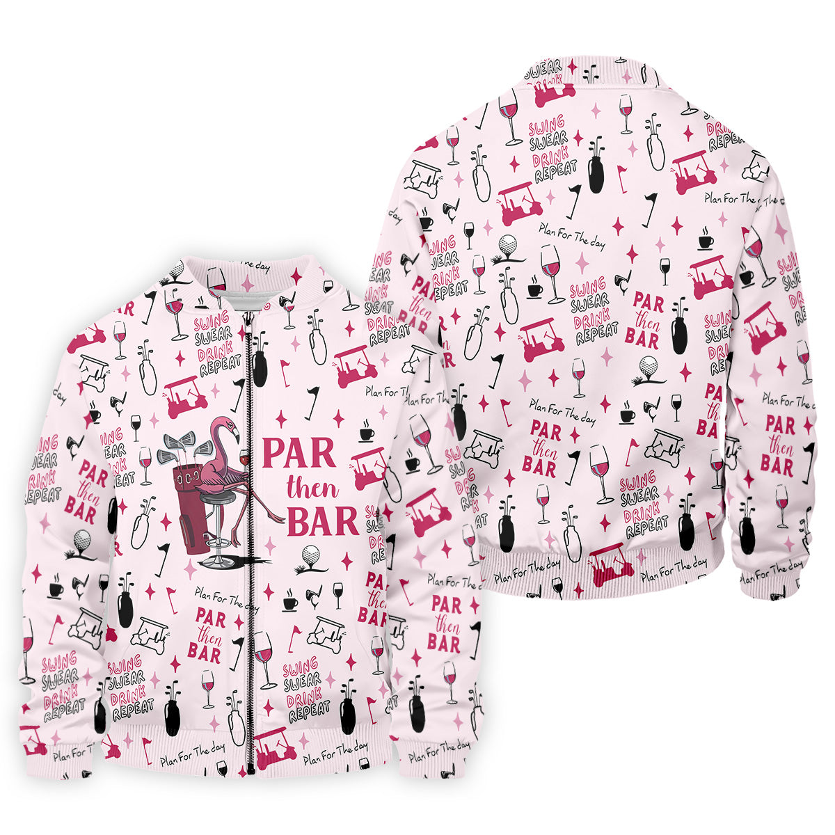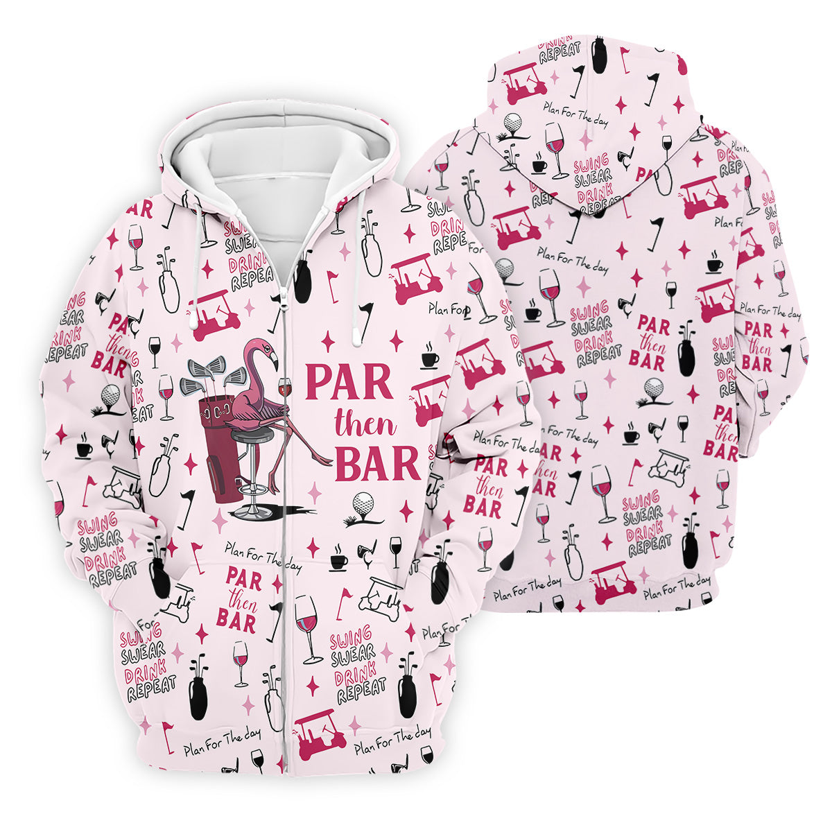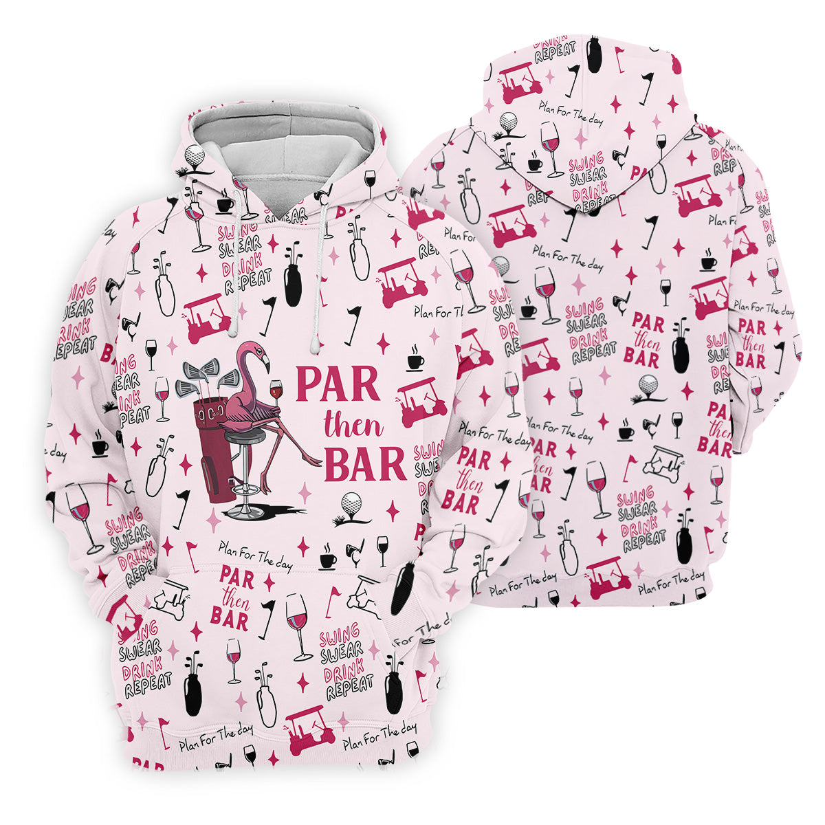 Pink Swing Swear Drink Repeat Par Then Bar Flamingo Golf Shirt, Fun Golf Shirts For Men, Polo For Men