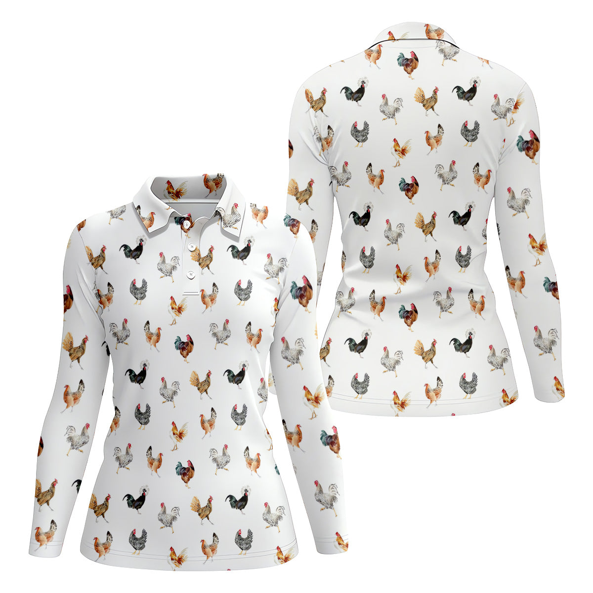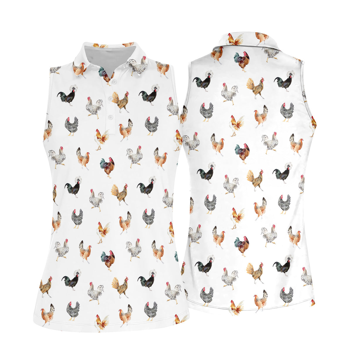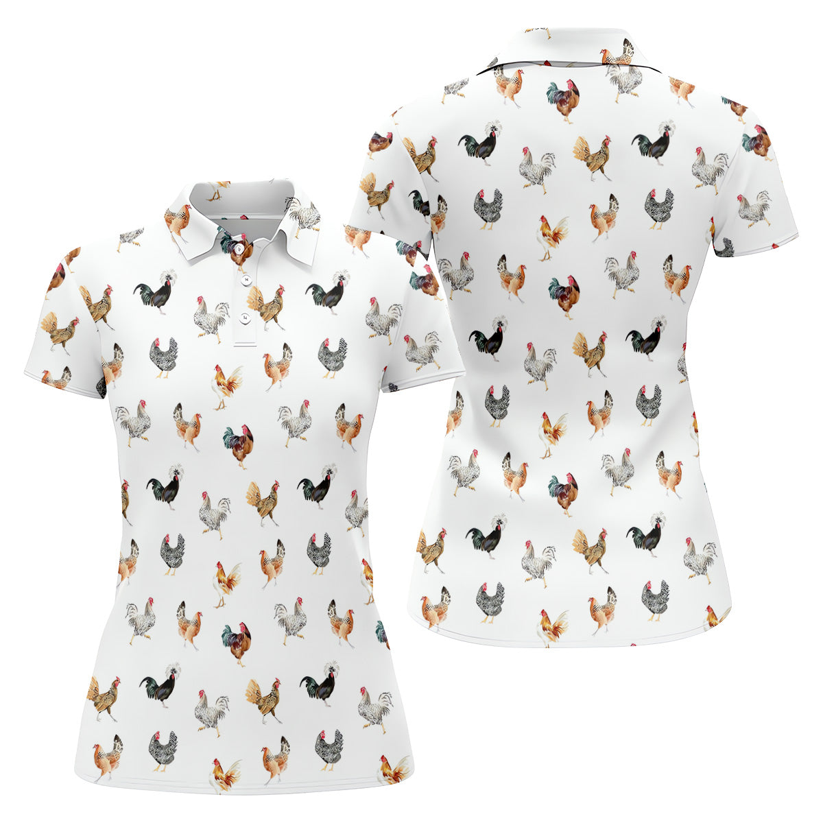 Prancing Chickens Women's White Golf Shirt, Gift For Chicken Lover, Ladies Golf Shirts, Golfing Apparel