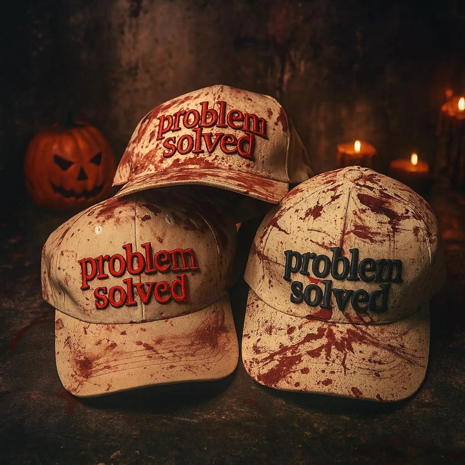 Problem Solved Hat Halloween Creepy Horror Cap Funny Halloween Hat Funny Gore Hat Blood Splatter Hat Halloween Gift Horror Gift