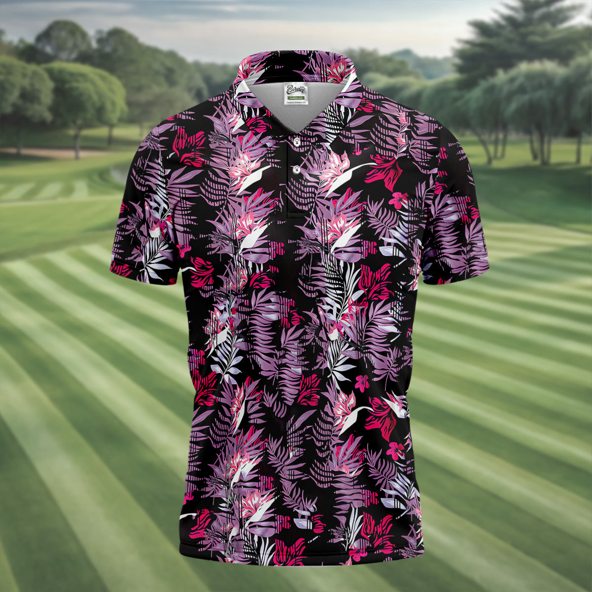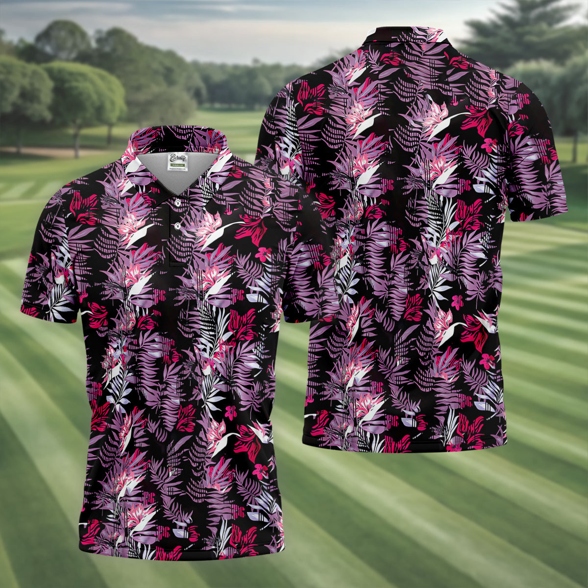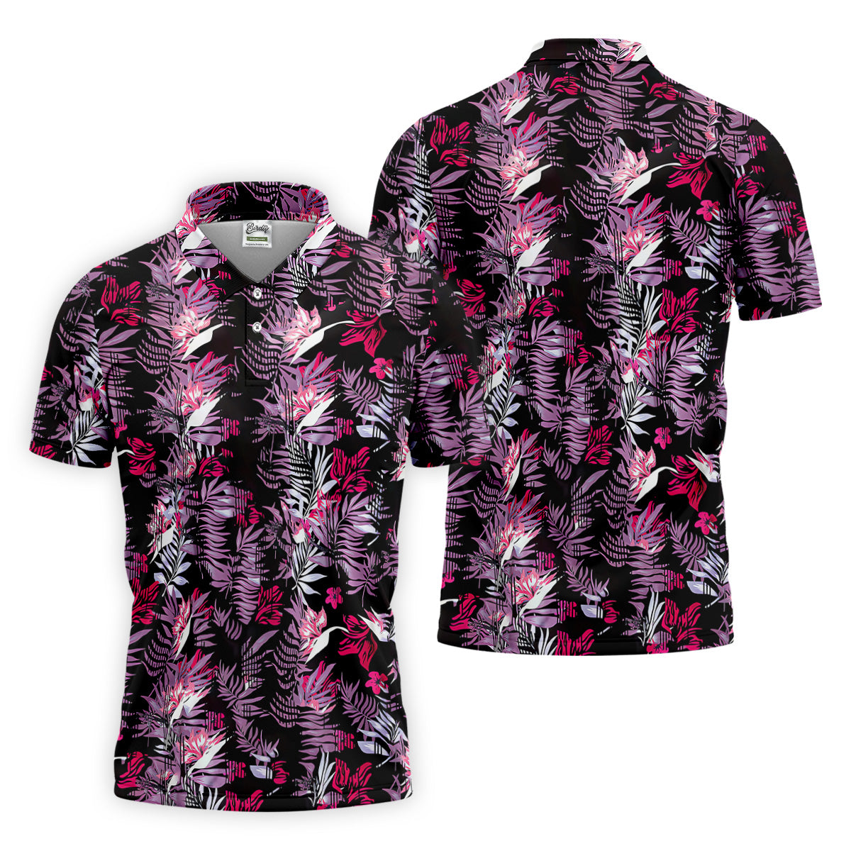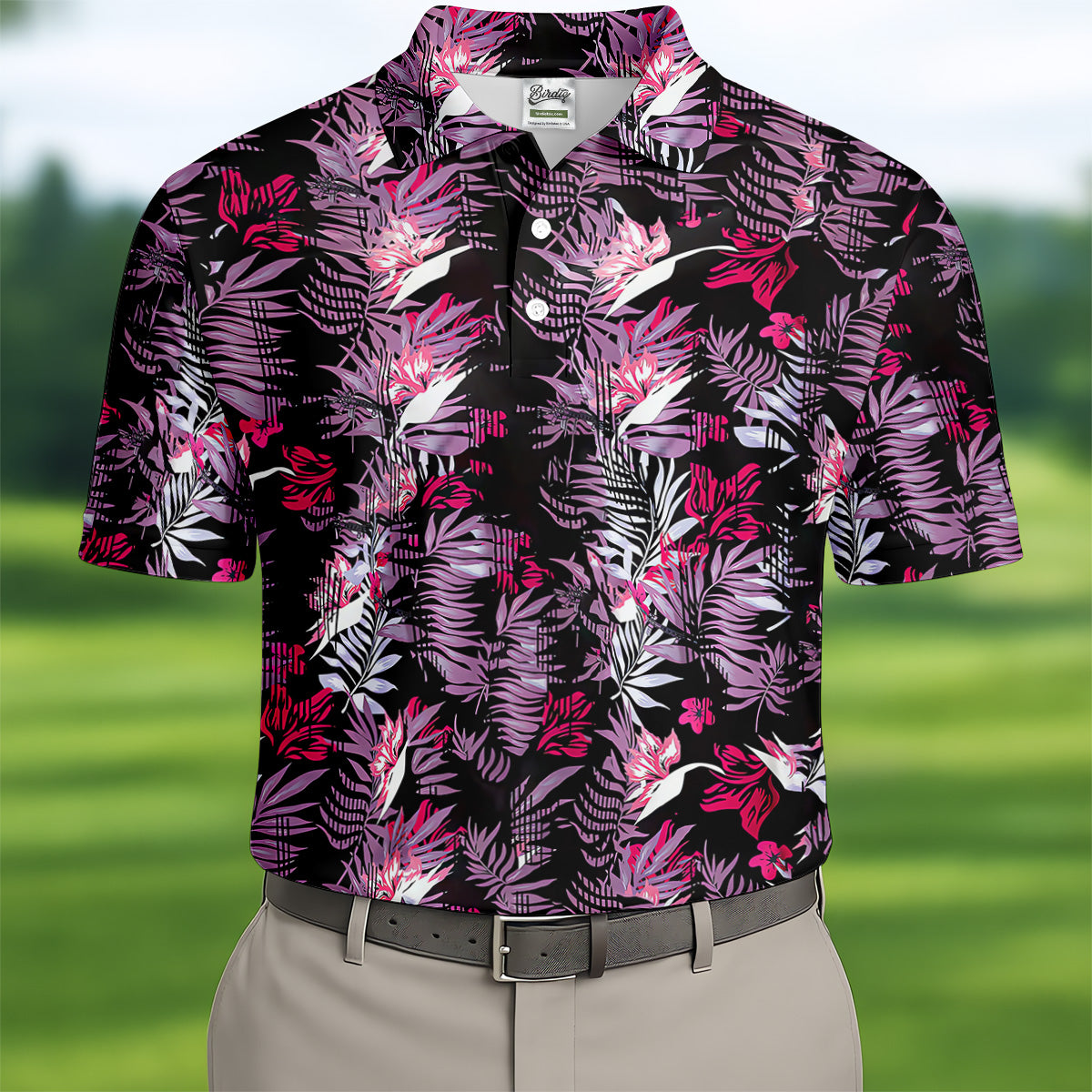 Purple And Black Tropical Golf Shirts, Golf Tops For Men, Polo Shirts For Men, Golfing Apparel