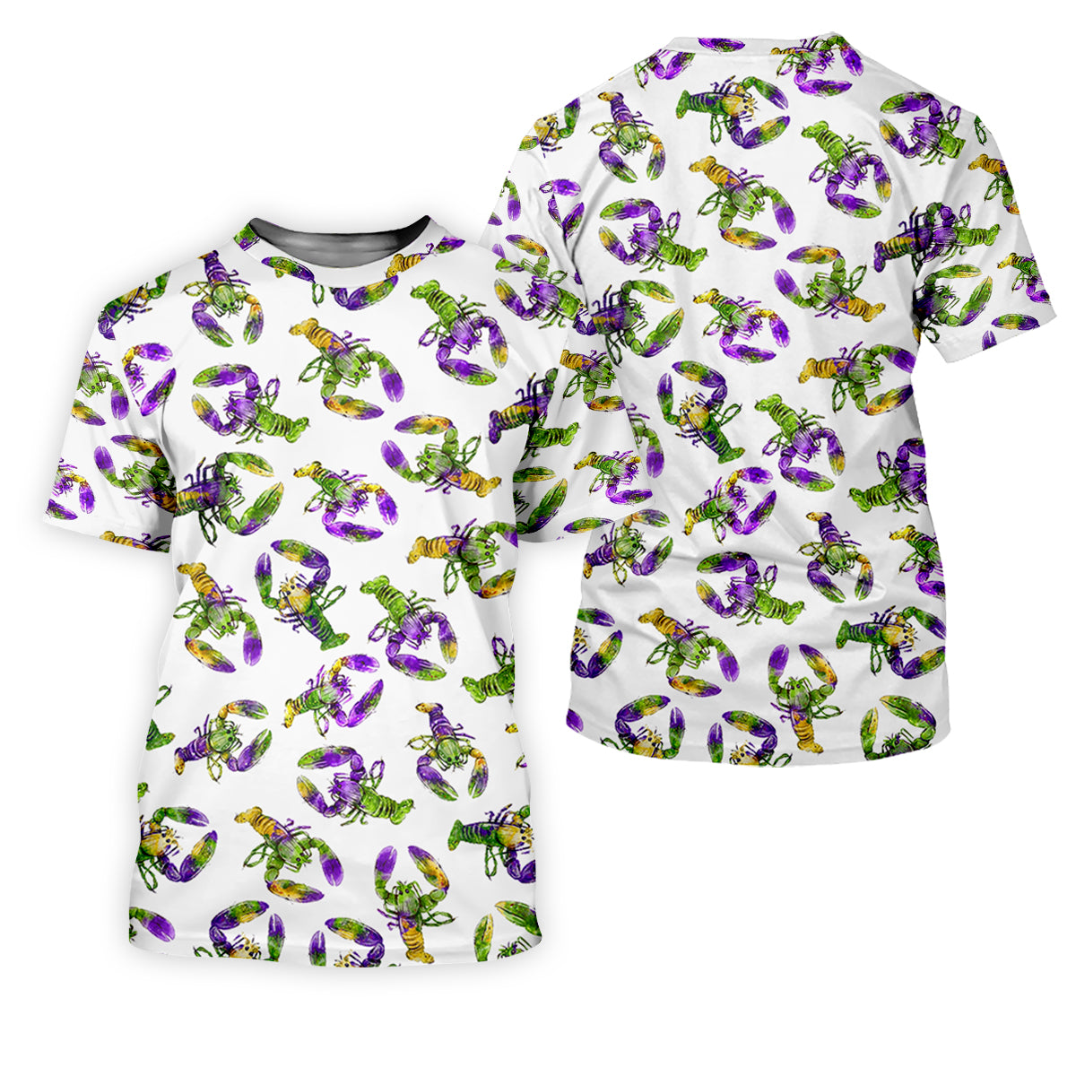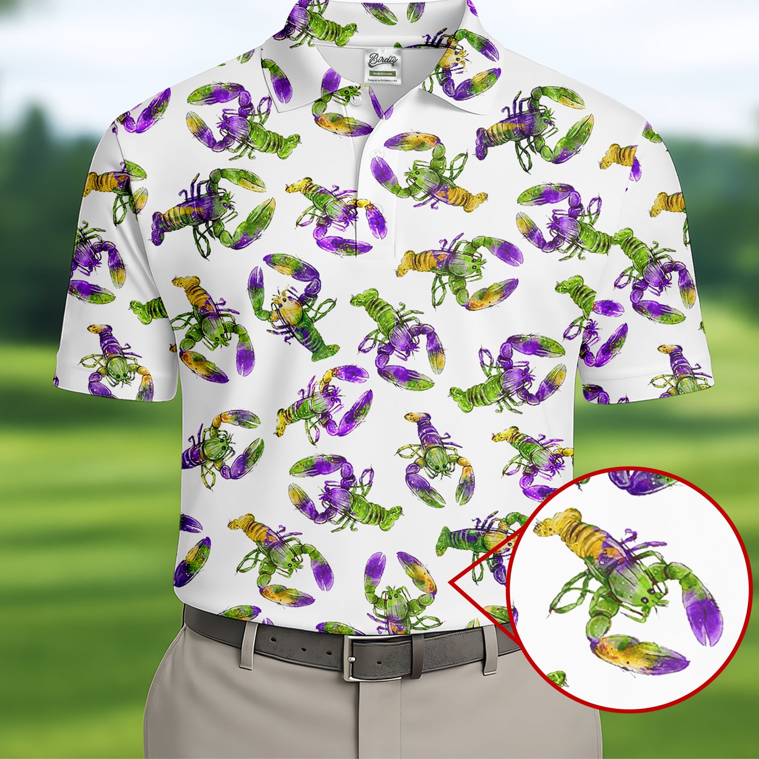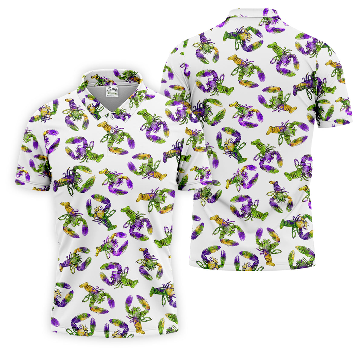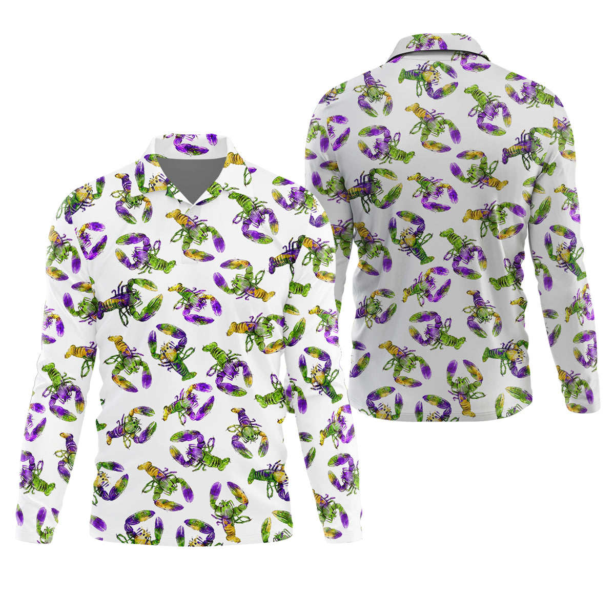 Purple Green Gold Crawfish Pattern Mardi Gras Golf Shirt, Polo Shirts For Men, Golf Shirts For Men