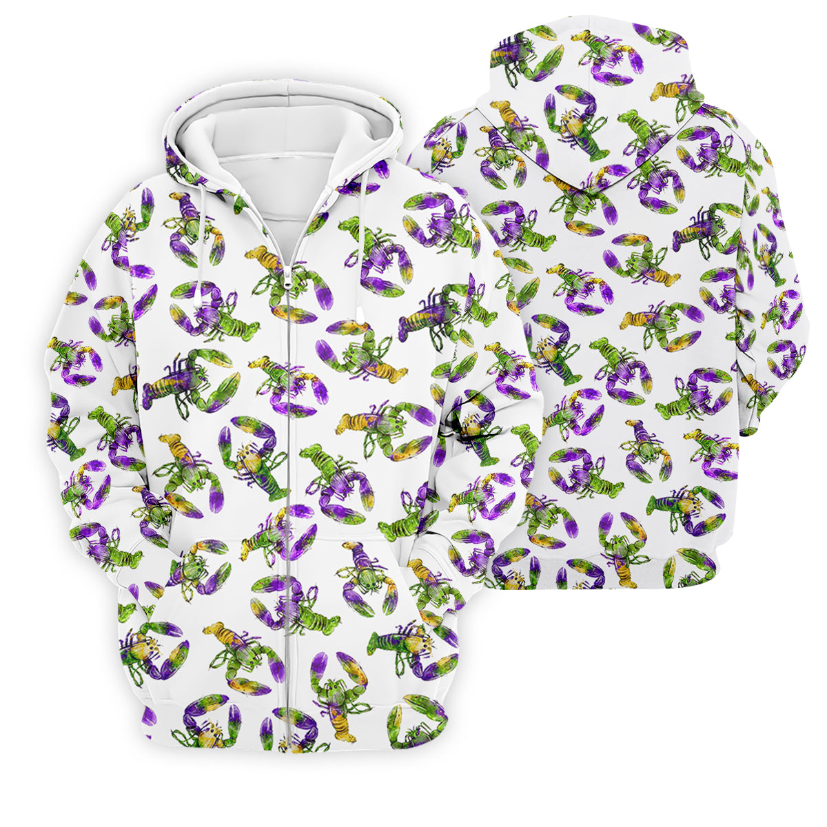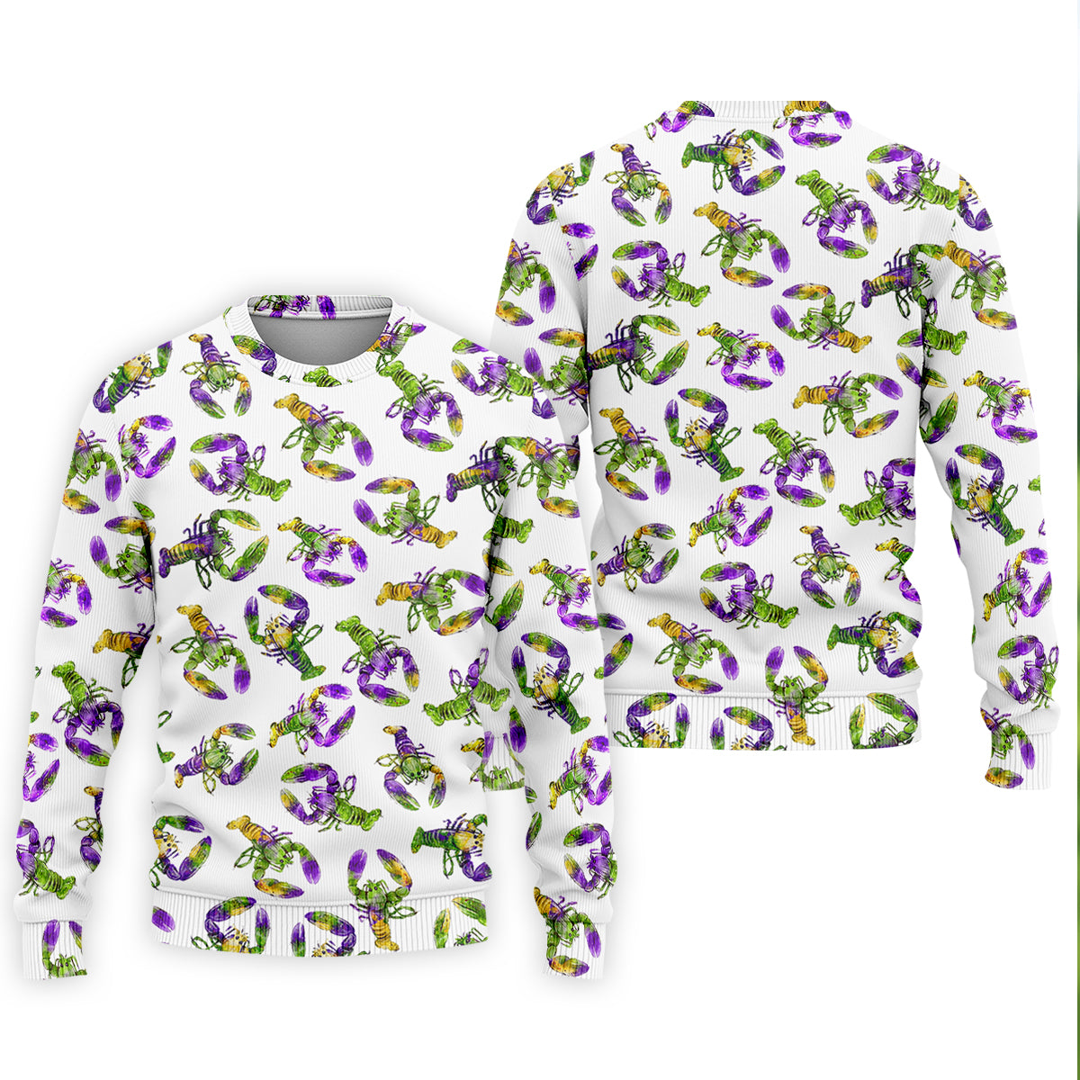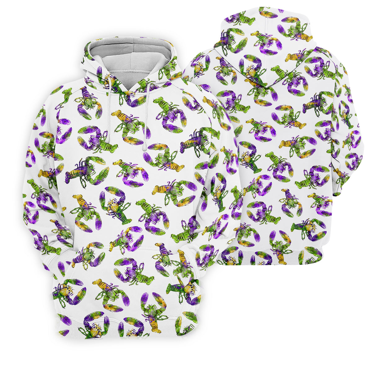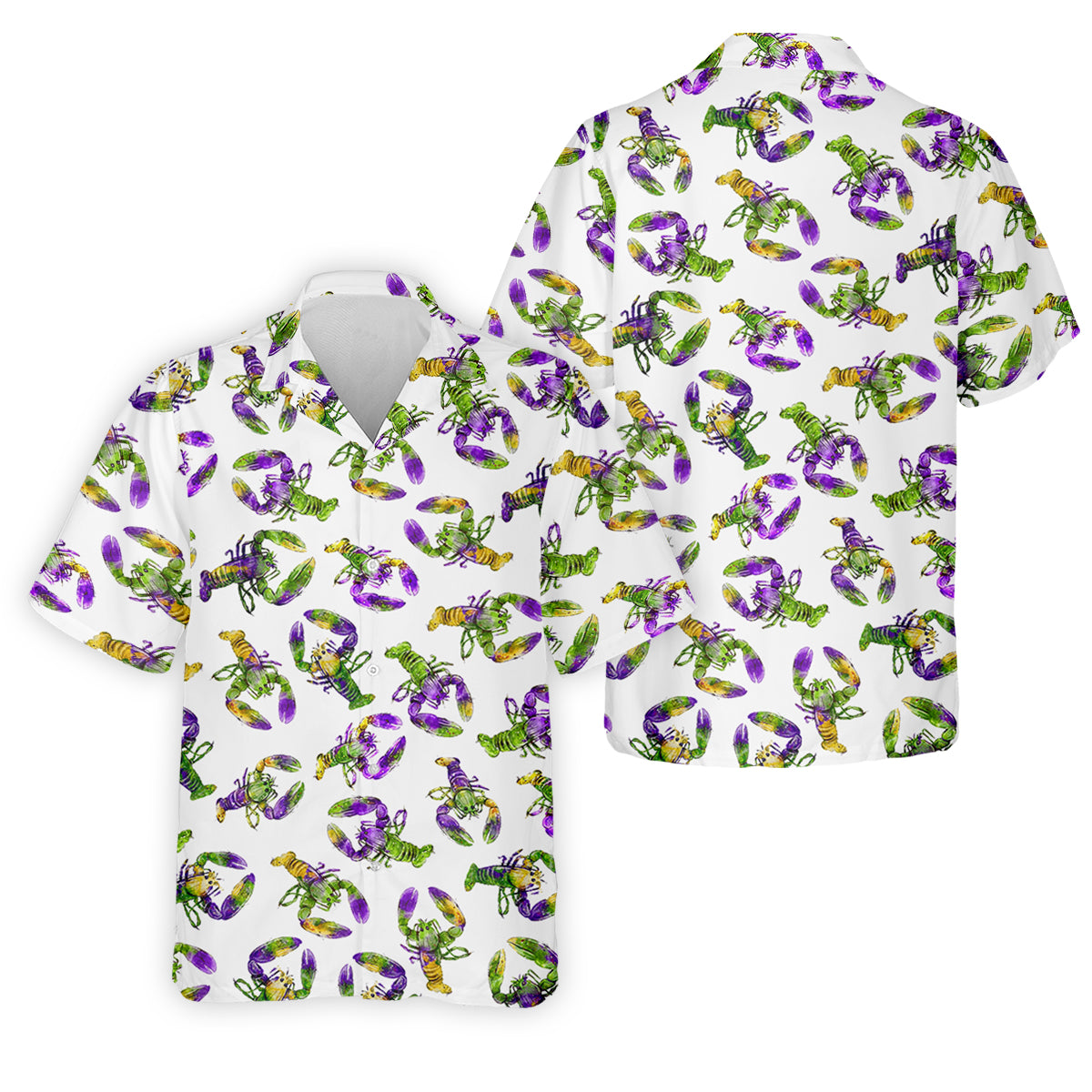 Purple Green Gold Crawfish Pattern Mardi Gras Golf Shirt, Polo Shirts For Men, Golf Shirts For Men