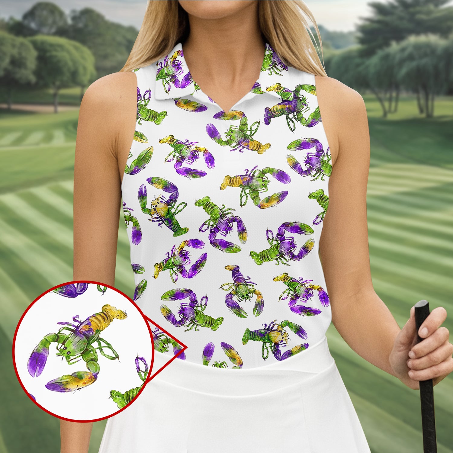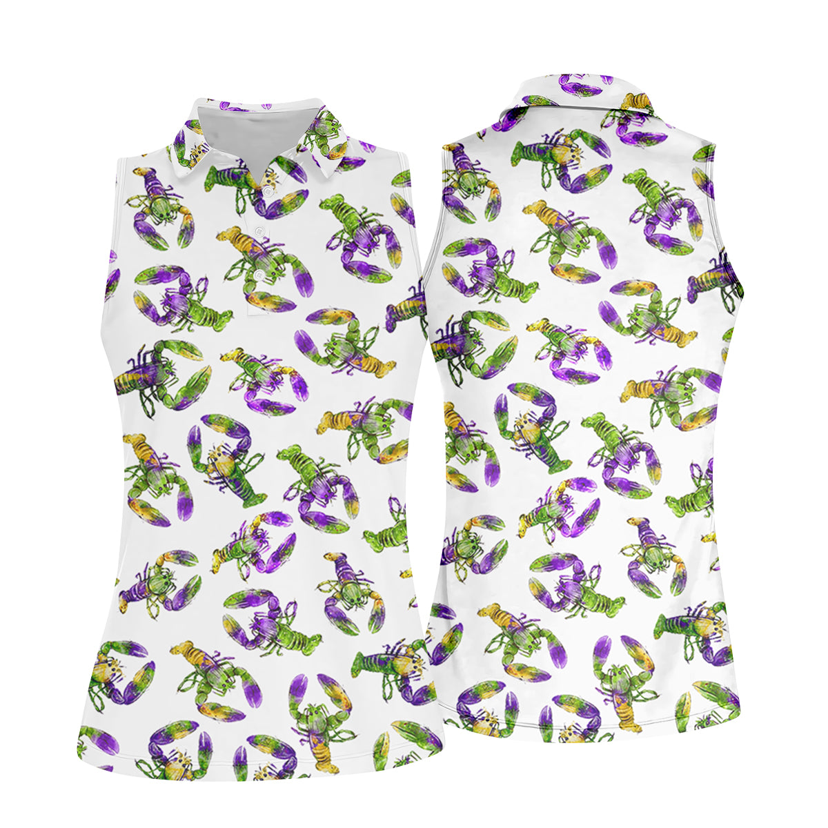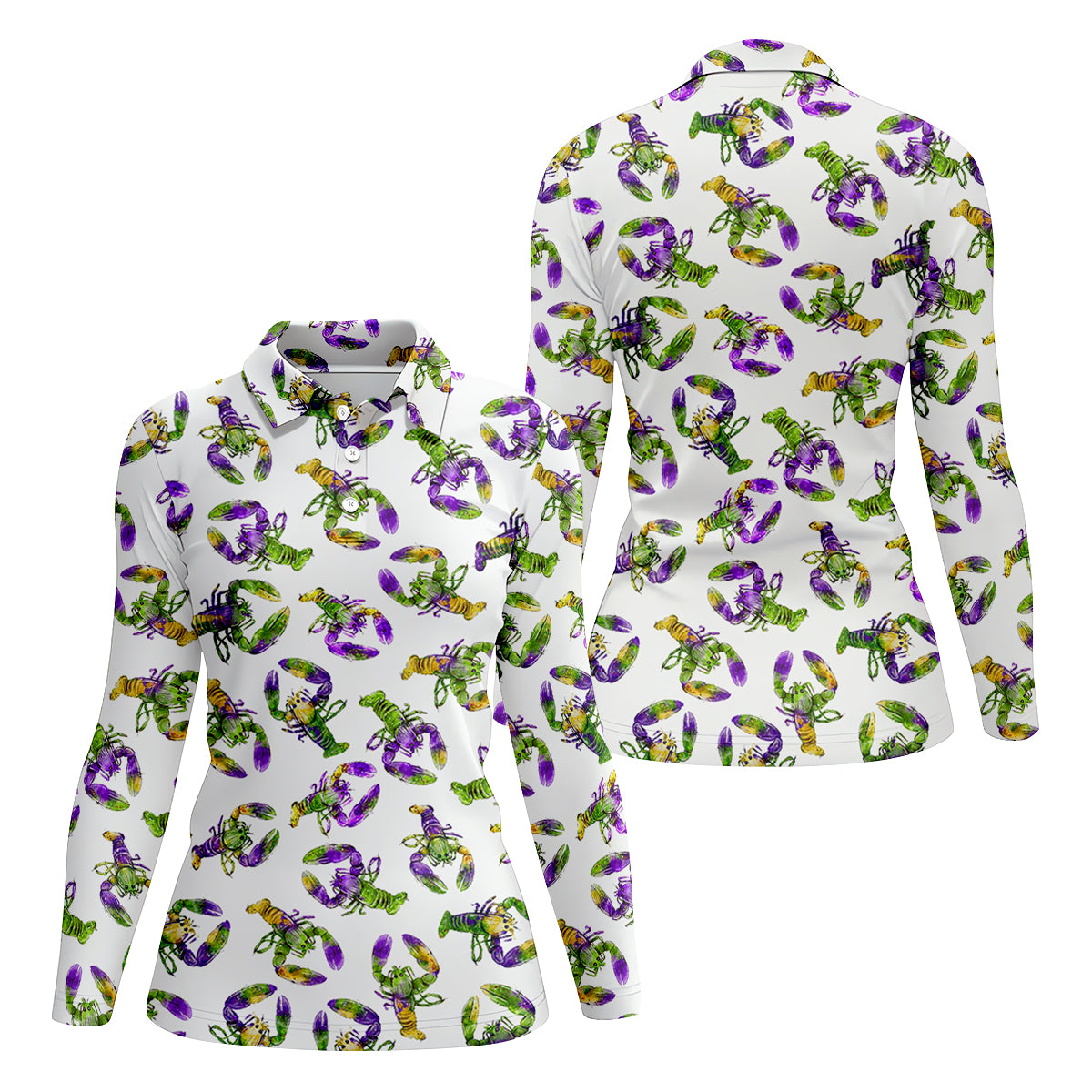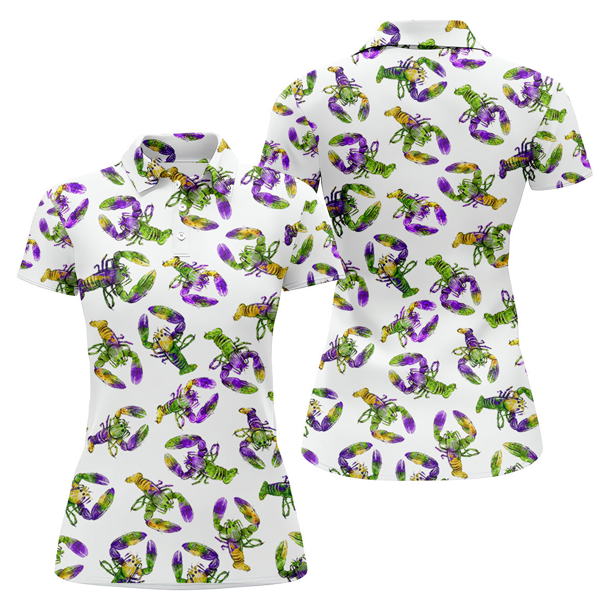 Purple Green Gold Crawfish Pattern Mardi Gras Golf Shirt, Women's Golf Tops, Ladies Golf Polos