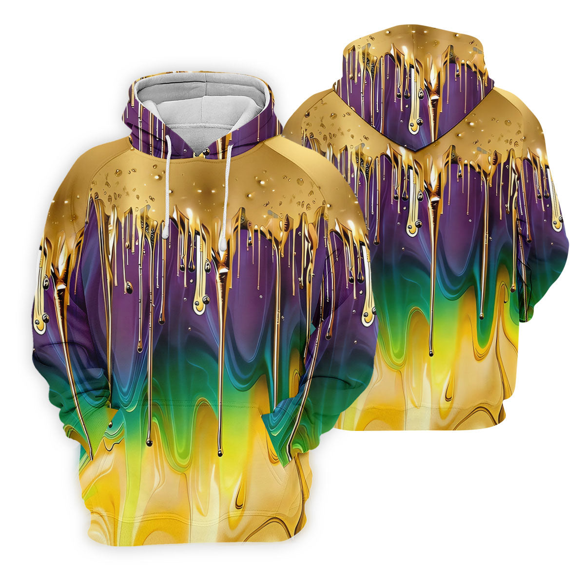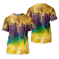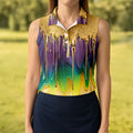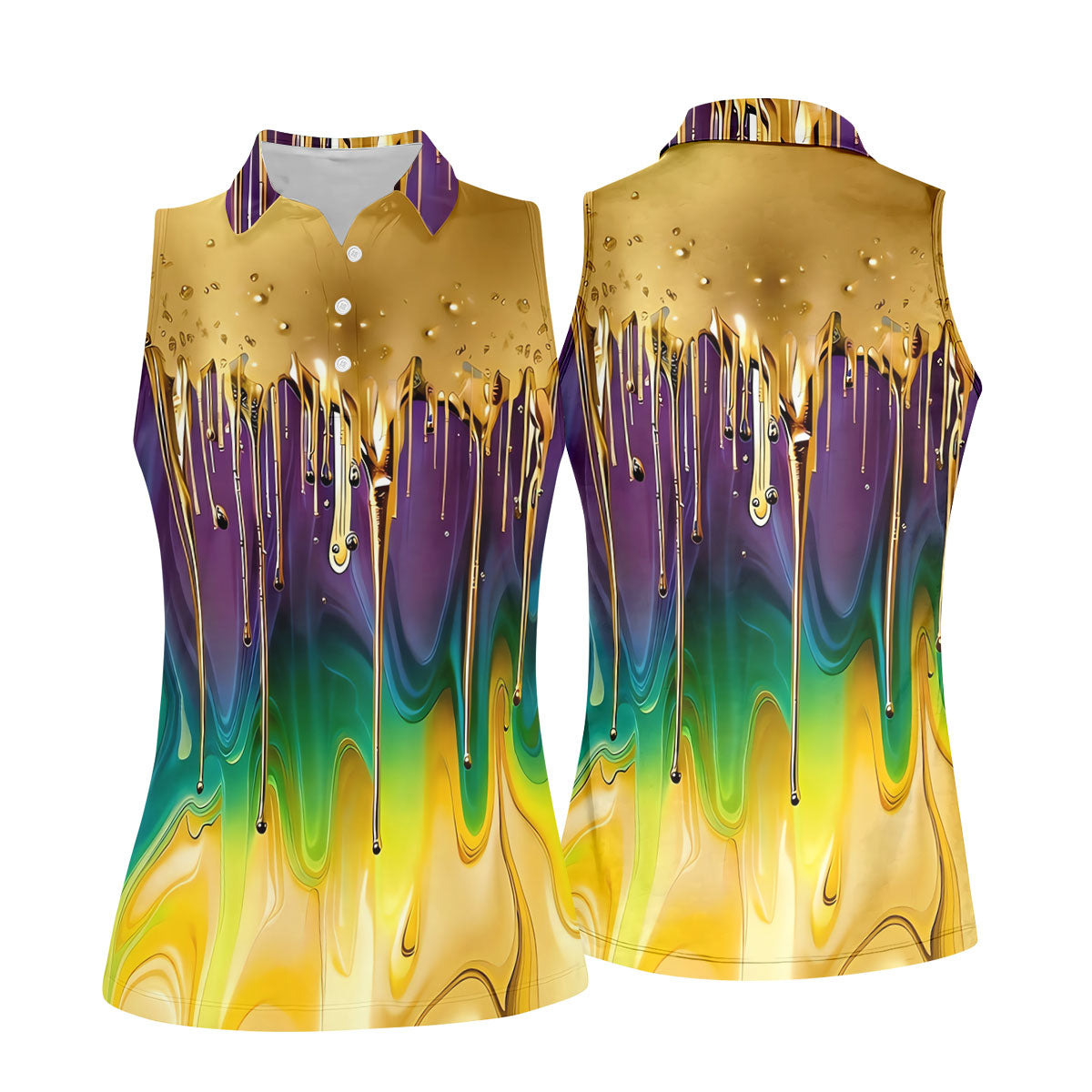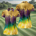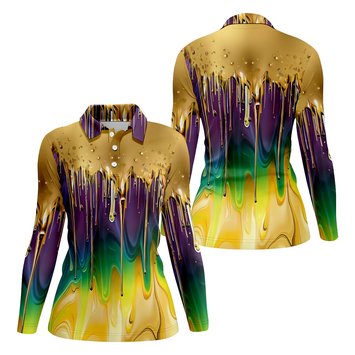 Purple Green Gold Dripping Effect Mardi Gras Golf Shirt, Women's Golf Shirts, Ladies Golf Polos