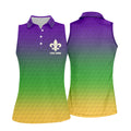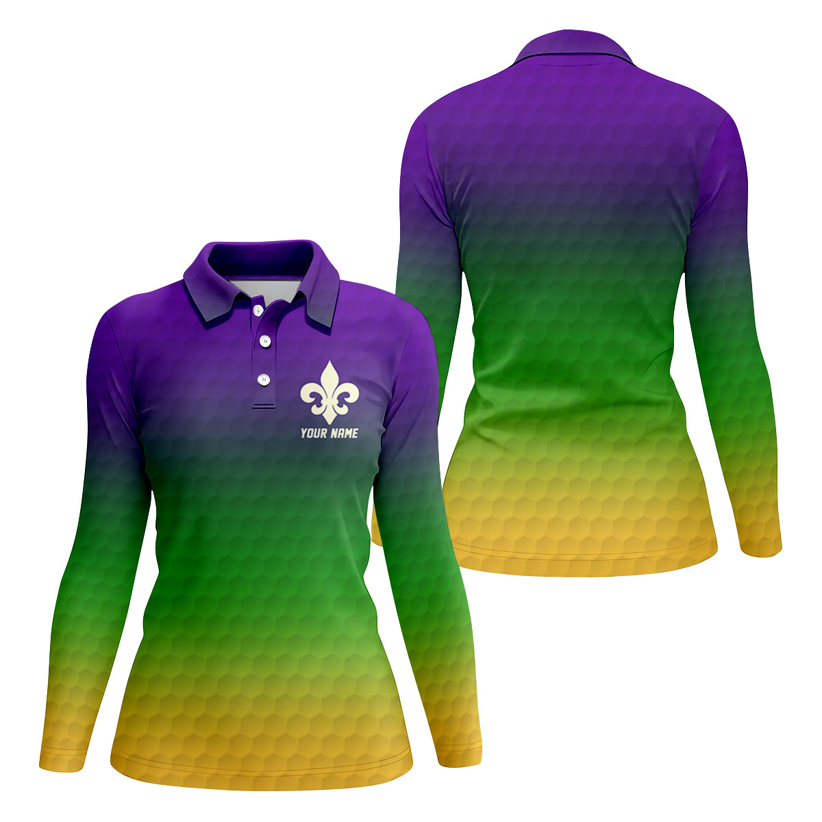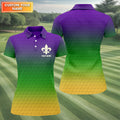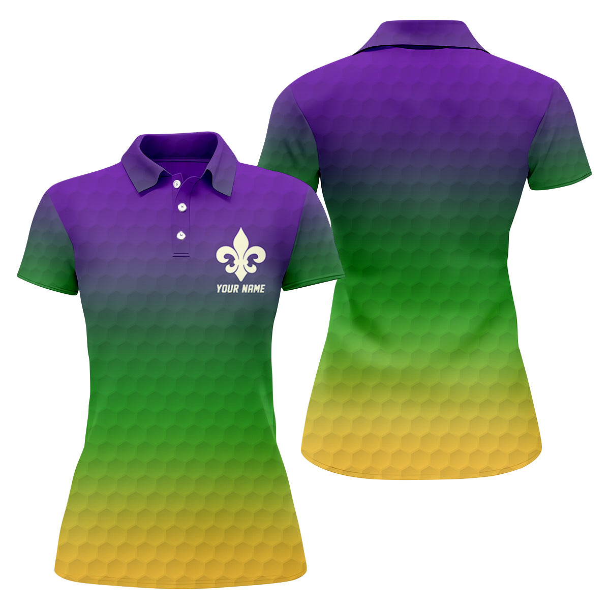 Purple Green Gold Golf Ball Pattern Mardi Gras Golf Shirt, Ladies Golf Polos, Golf Shirt For Women