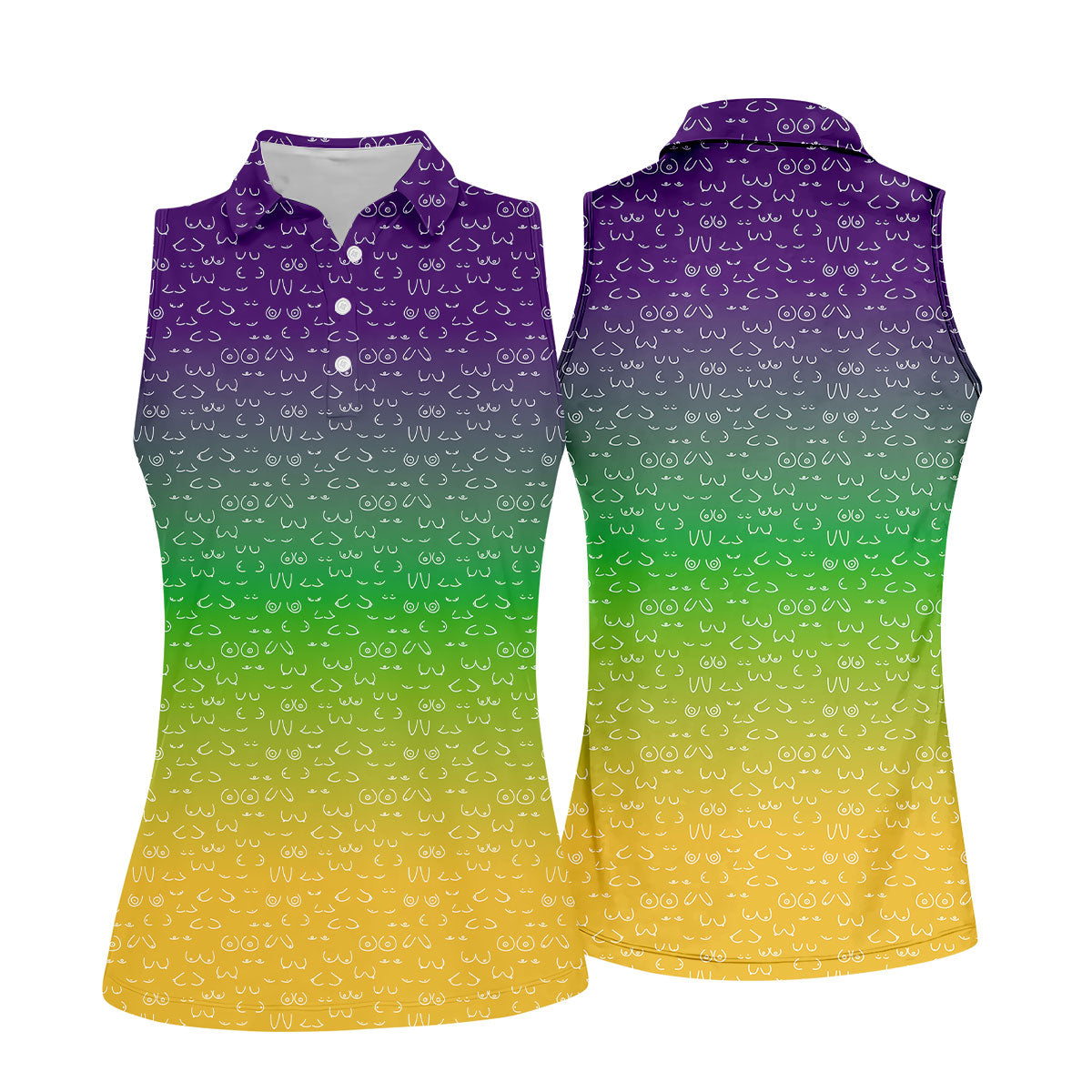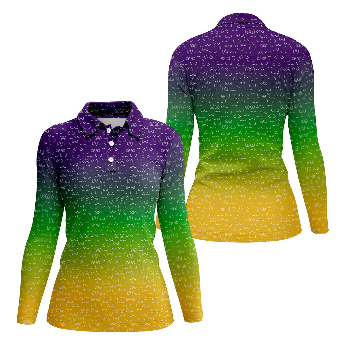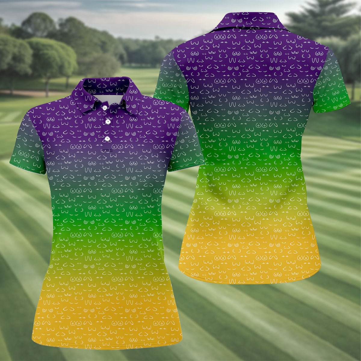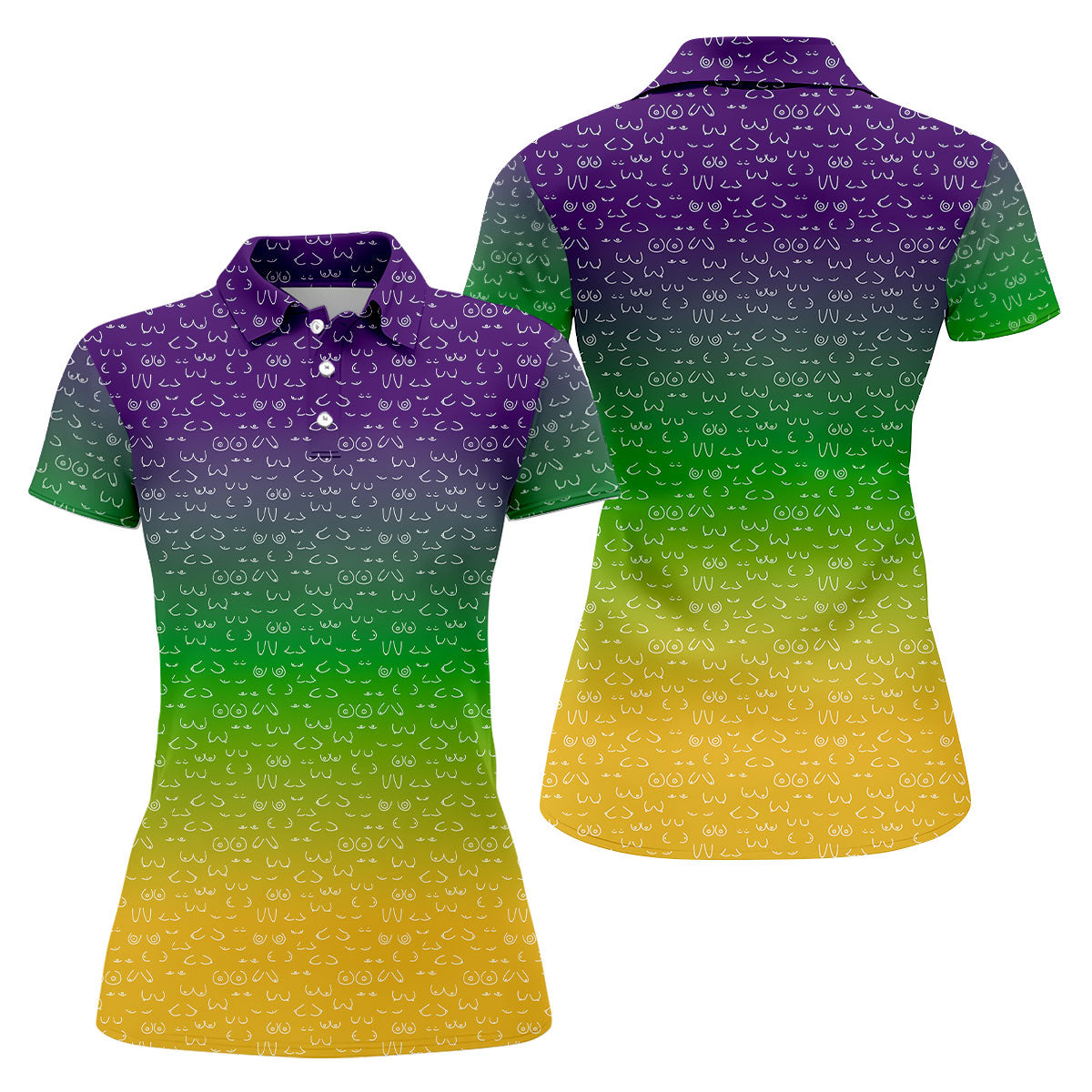 Purple Green Gold Ombre Color Mardi Gras Golf Shirt, Women's Golf Tops, Golf Gifts For Women, Ladies Golf Shirts