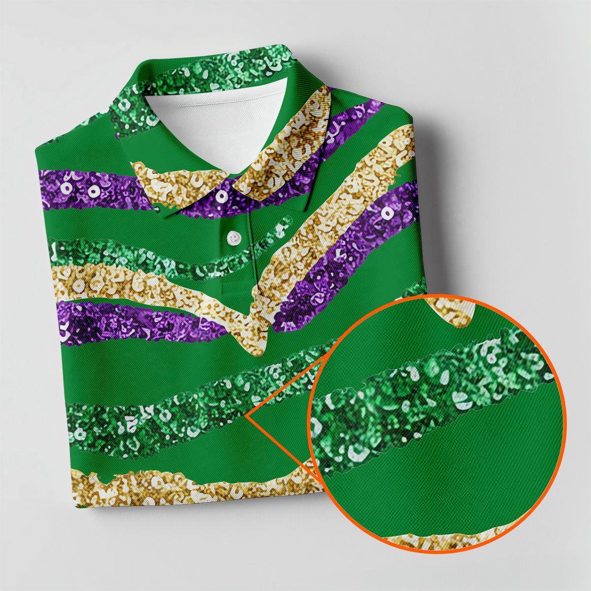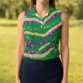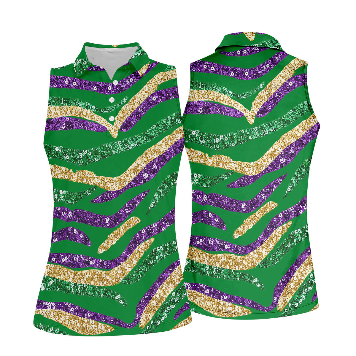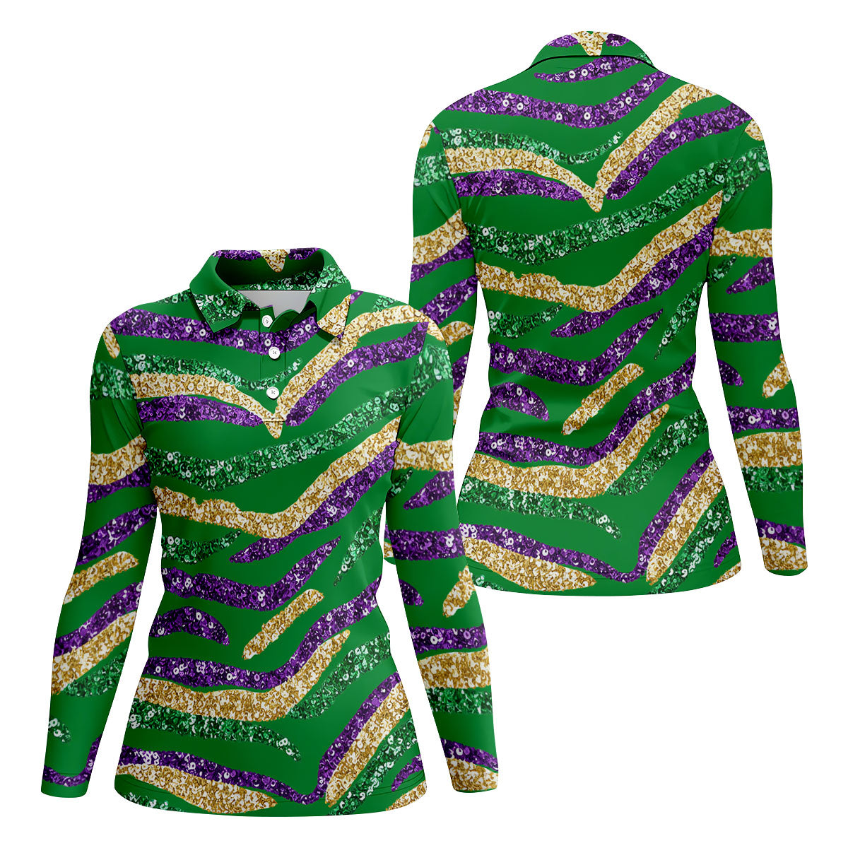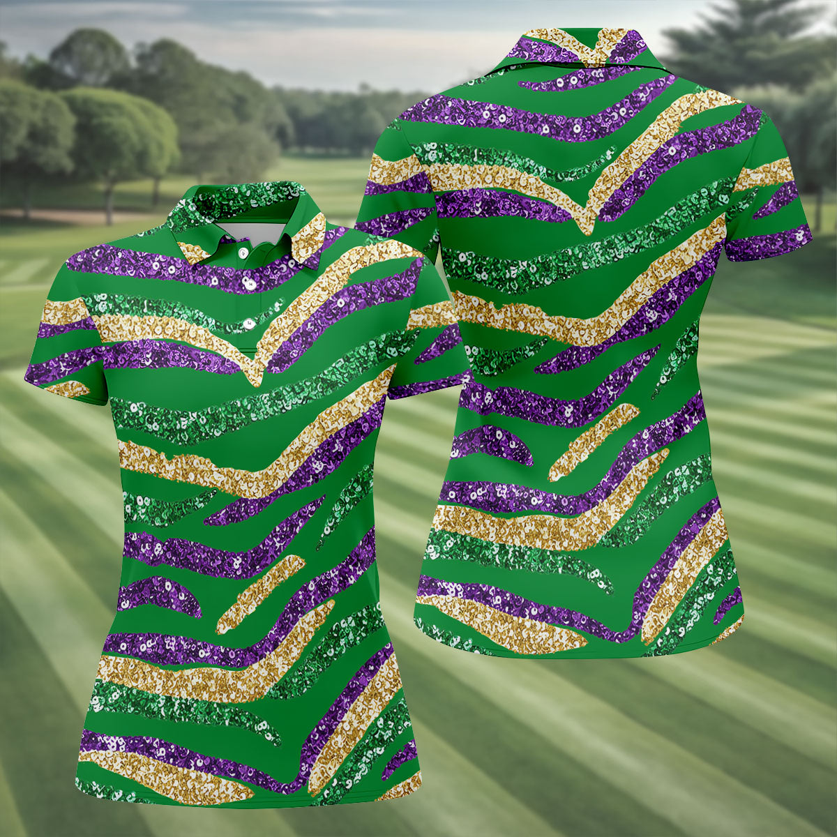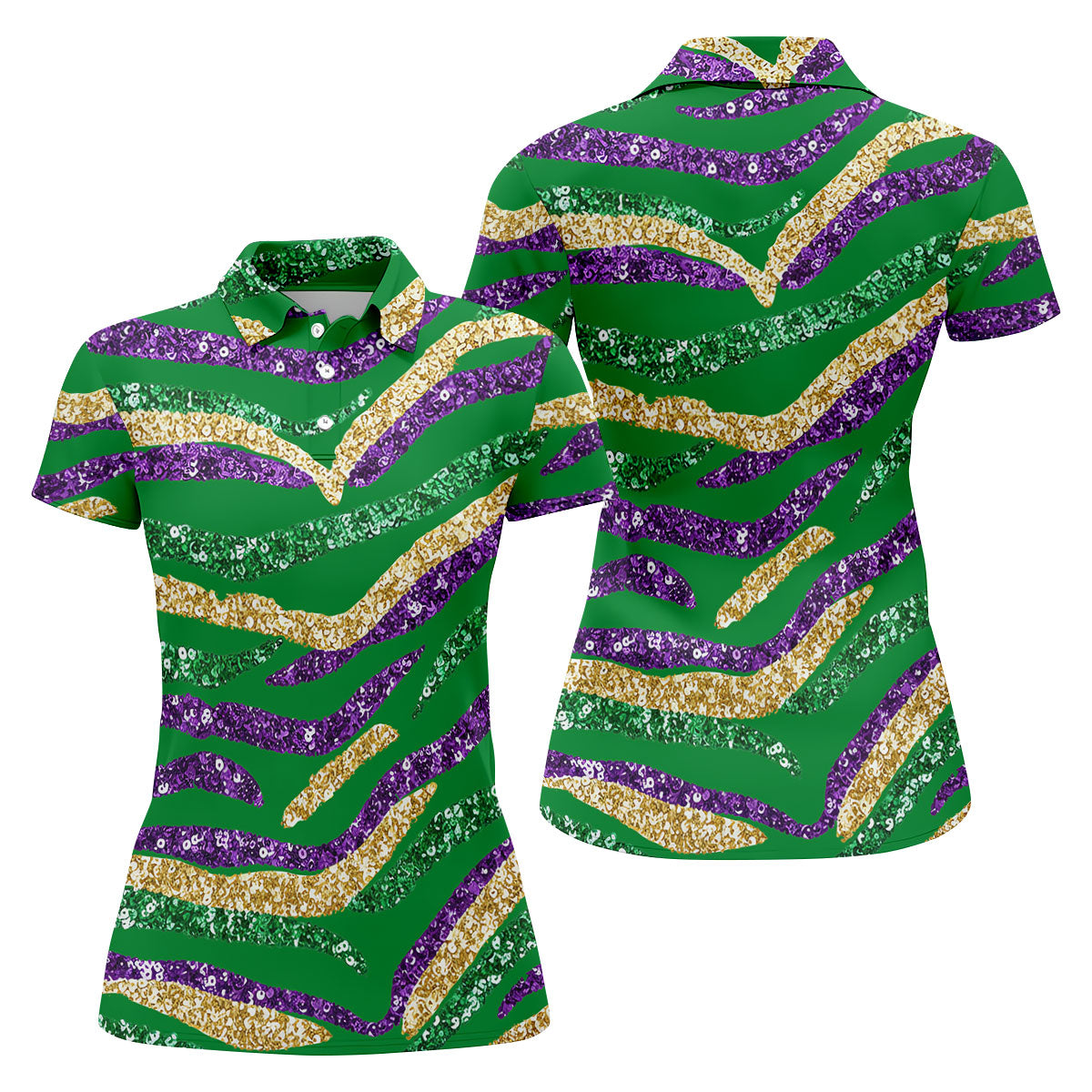 Purple Green Gold Sequin Pattern Green Golf Shirt, Mardi Gras Golf Shirt, Women's Golf Tops, Ladies Golf Shirts