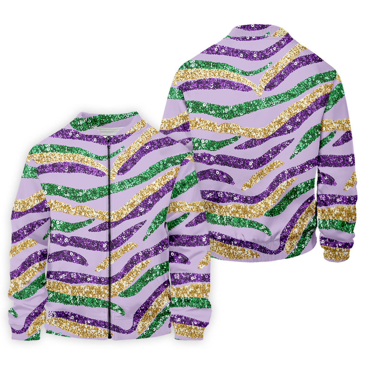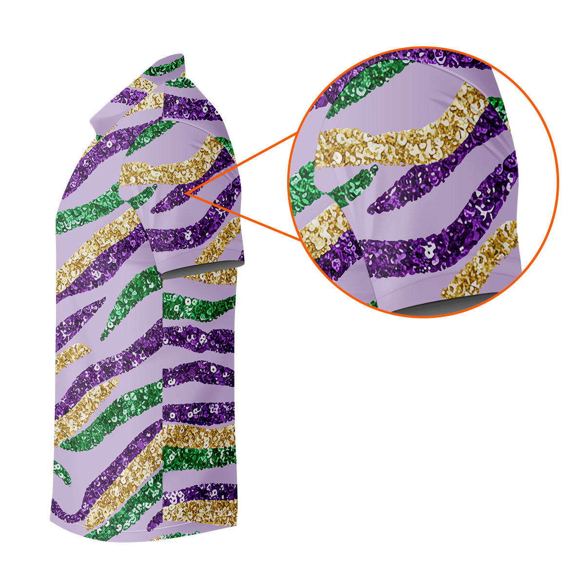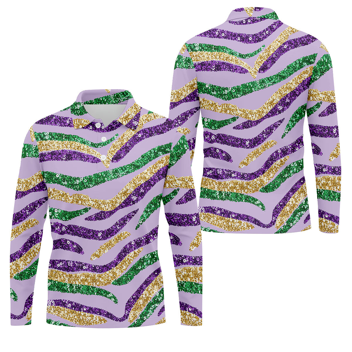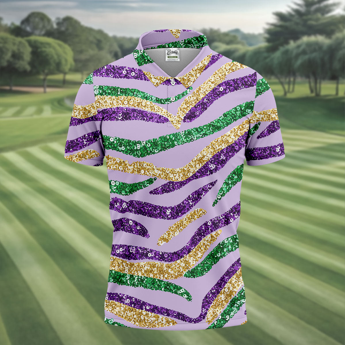 Purple Green Gold Sequin Pattern Light Purple Mardi Gras Golf Shirt, Polo Shirts For Men, Golf Shirts For Men
