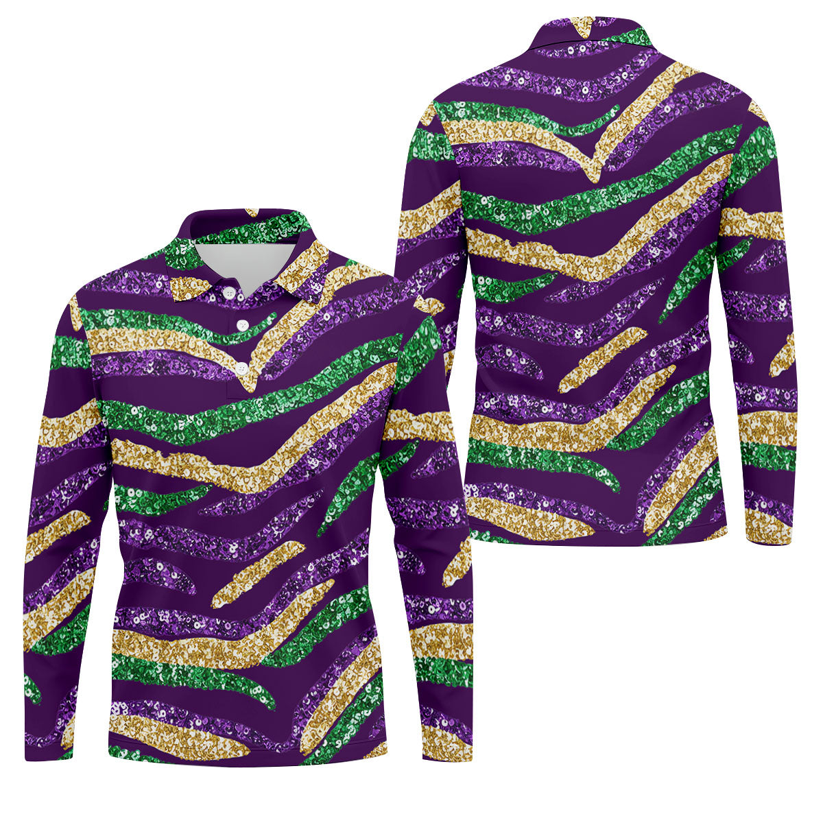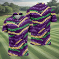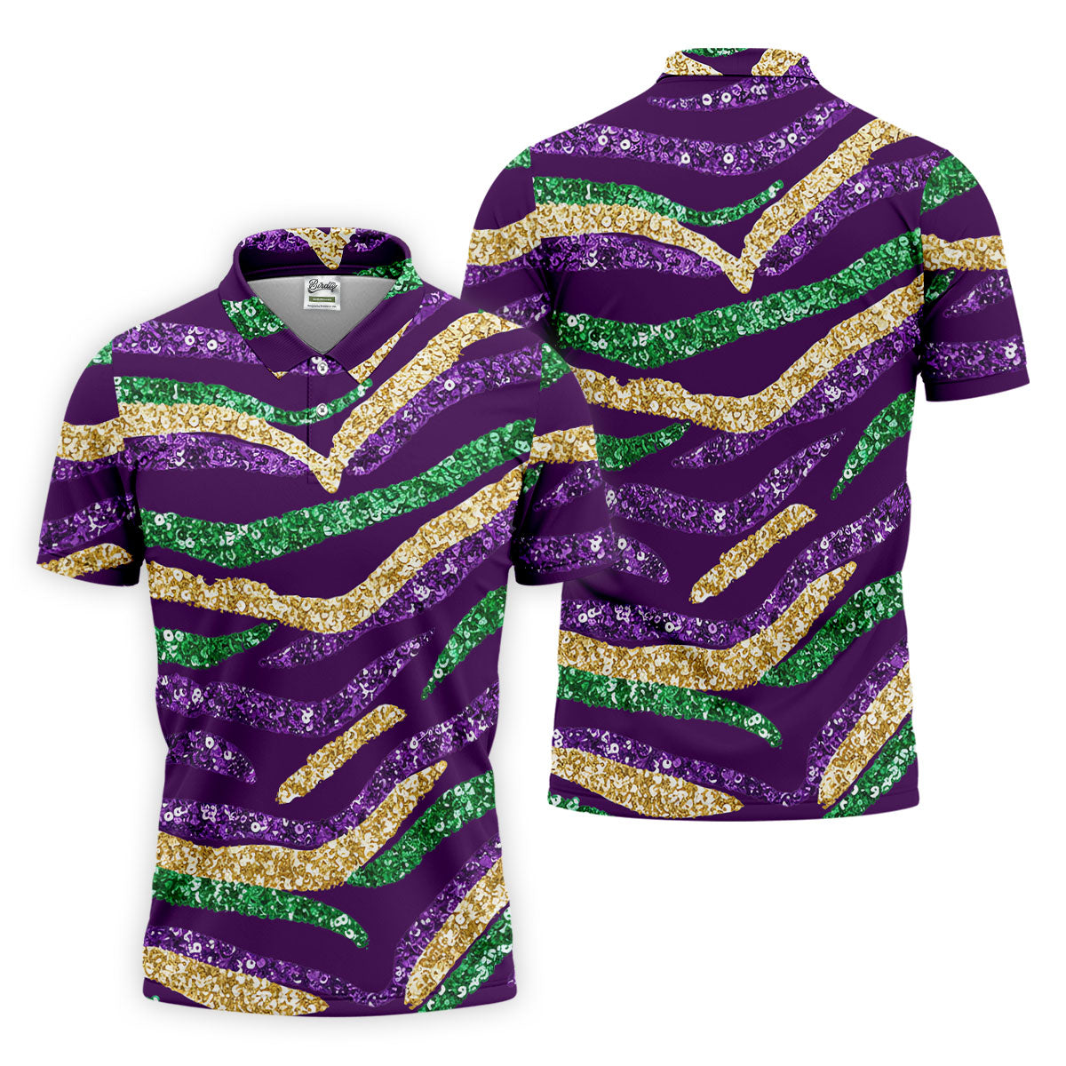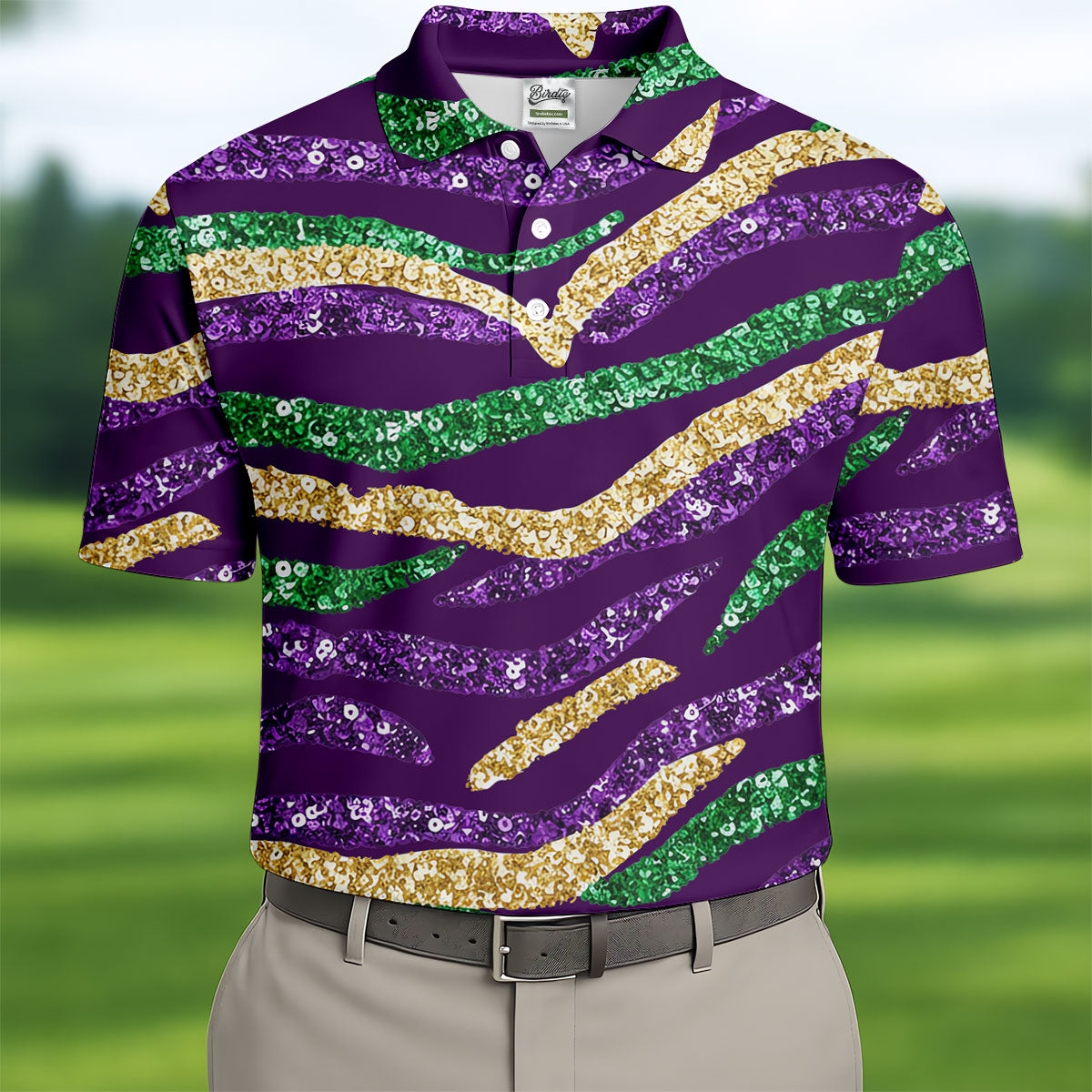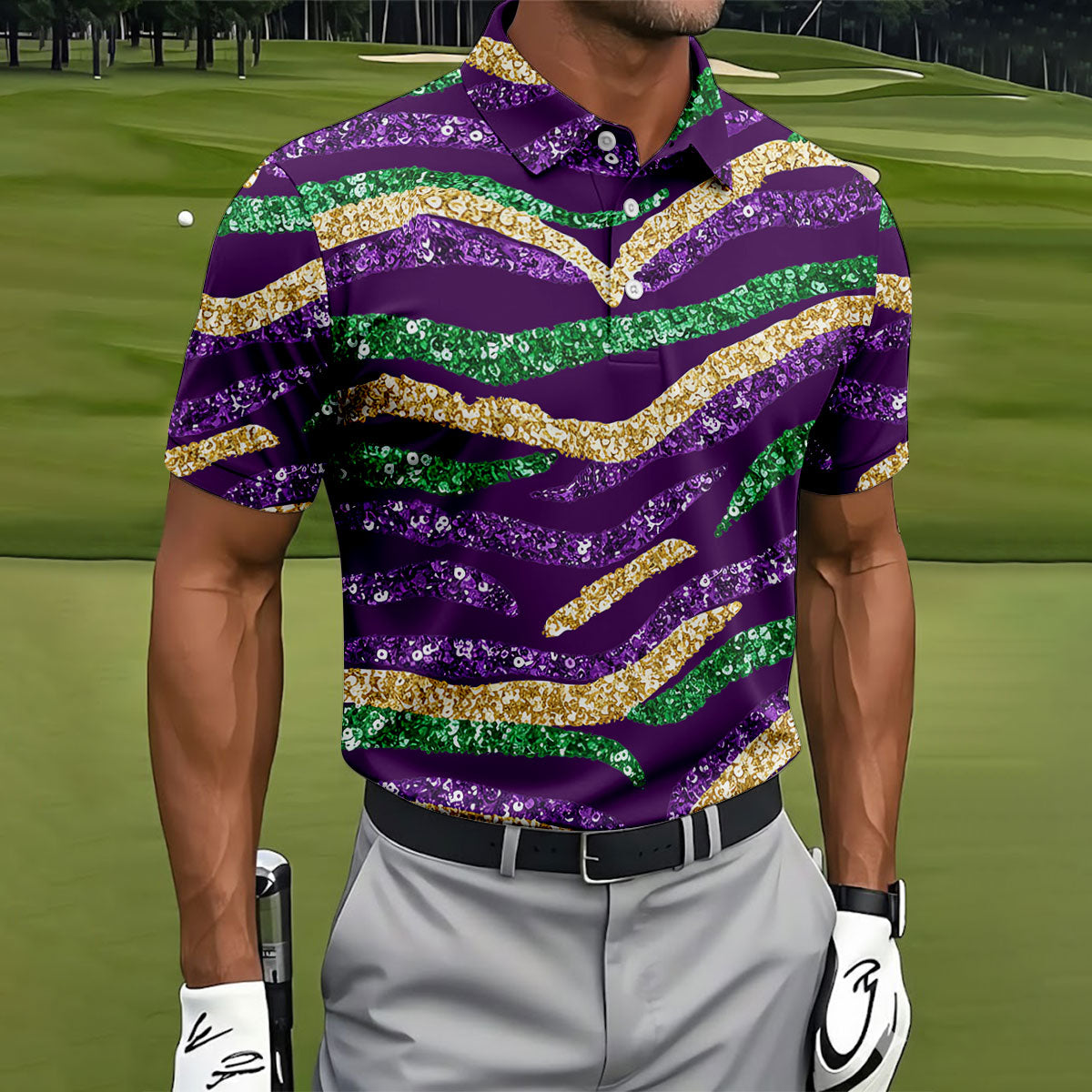 Purple Green Gold Sequin Pattern Purple Golf Shirt, Mardi Gras Golf Shirt, Polo Shirts For Men