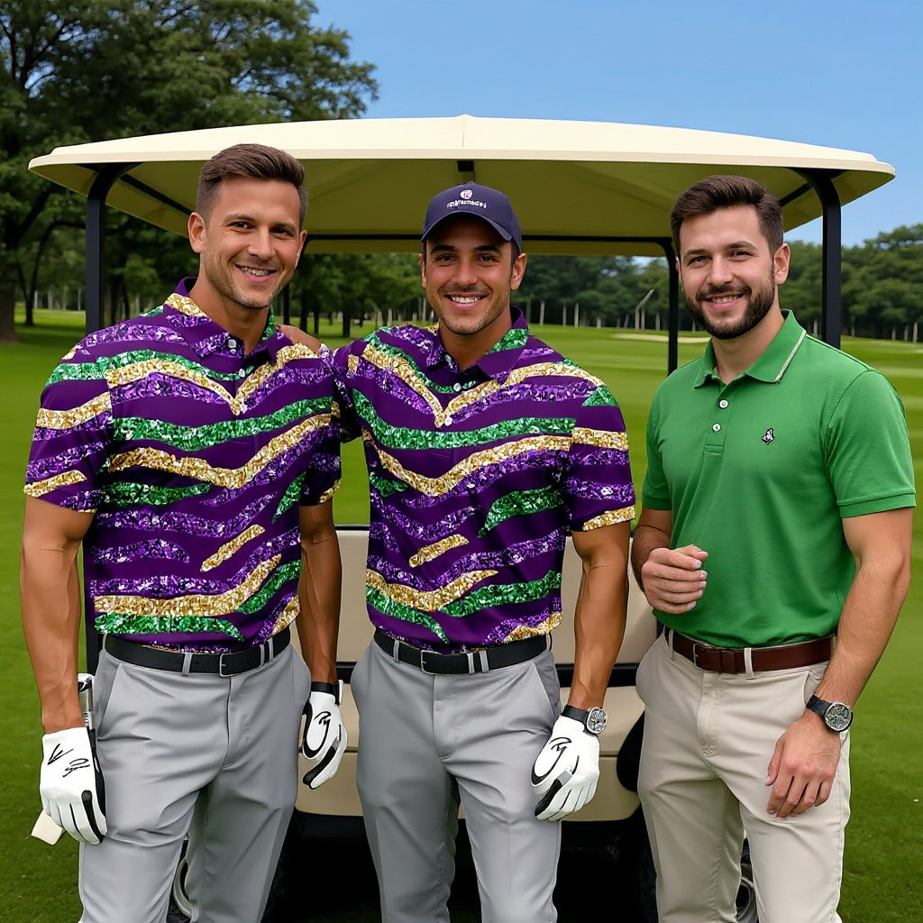 Our Mardi Gras golf shirts are made for players who’d rather turn heads than blend in. Designed for confidence, comfort, and a healthy dose of humor, each polo is your ticket to brighter fairways, louder laughs, and just enough distraction to keep your buddies guessing.