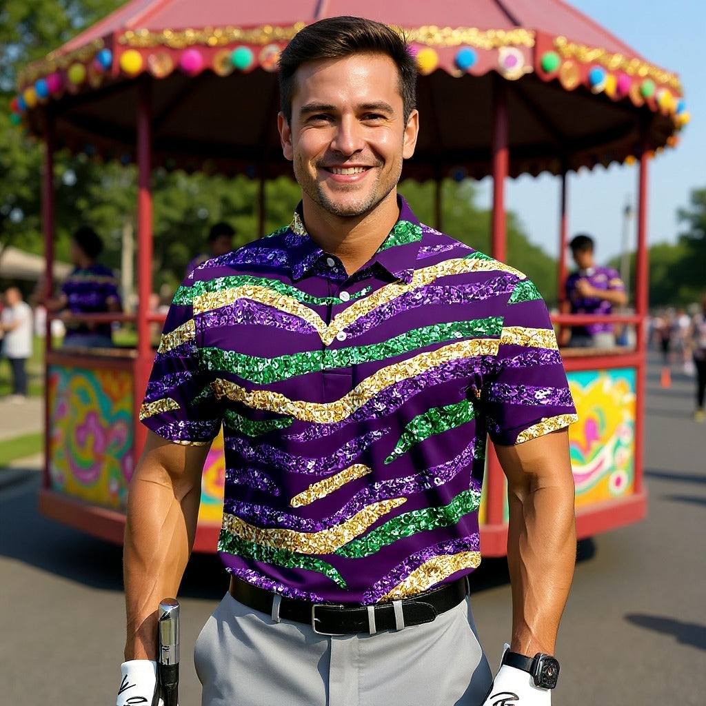 Whether you’re teeing off during Mardi Gras week, playing a themed tournament, or just looking for an excuse to bring festival vibes to the course — this shirt shows up ready to celebrate.
