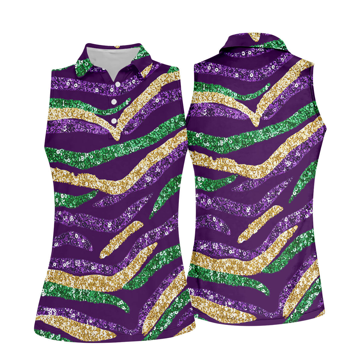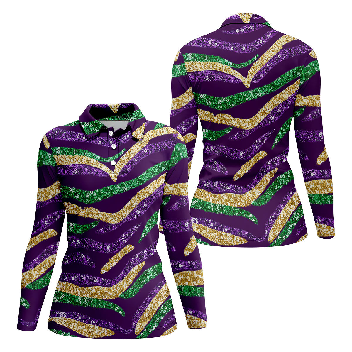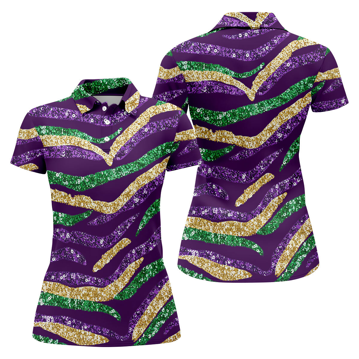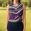 Purple Green Gold Sequin Pattern Purple Golf Shirt, Mardi Gras Golf Shirt, Women's Golf Tops, Ladies Golf Shirts