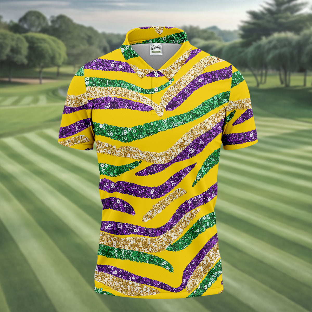 Whether you’re teeing off during Mardi Gras week, playing a themed tournament, or just looking for an excuse to bring festival vibes to the course — this shirt shows up ready to celebrate.