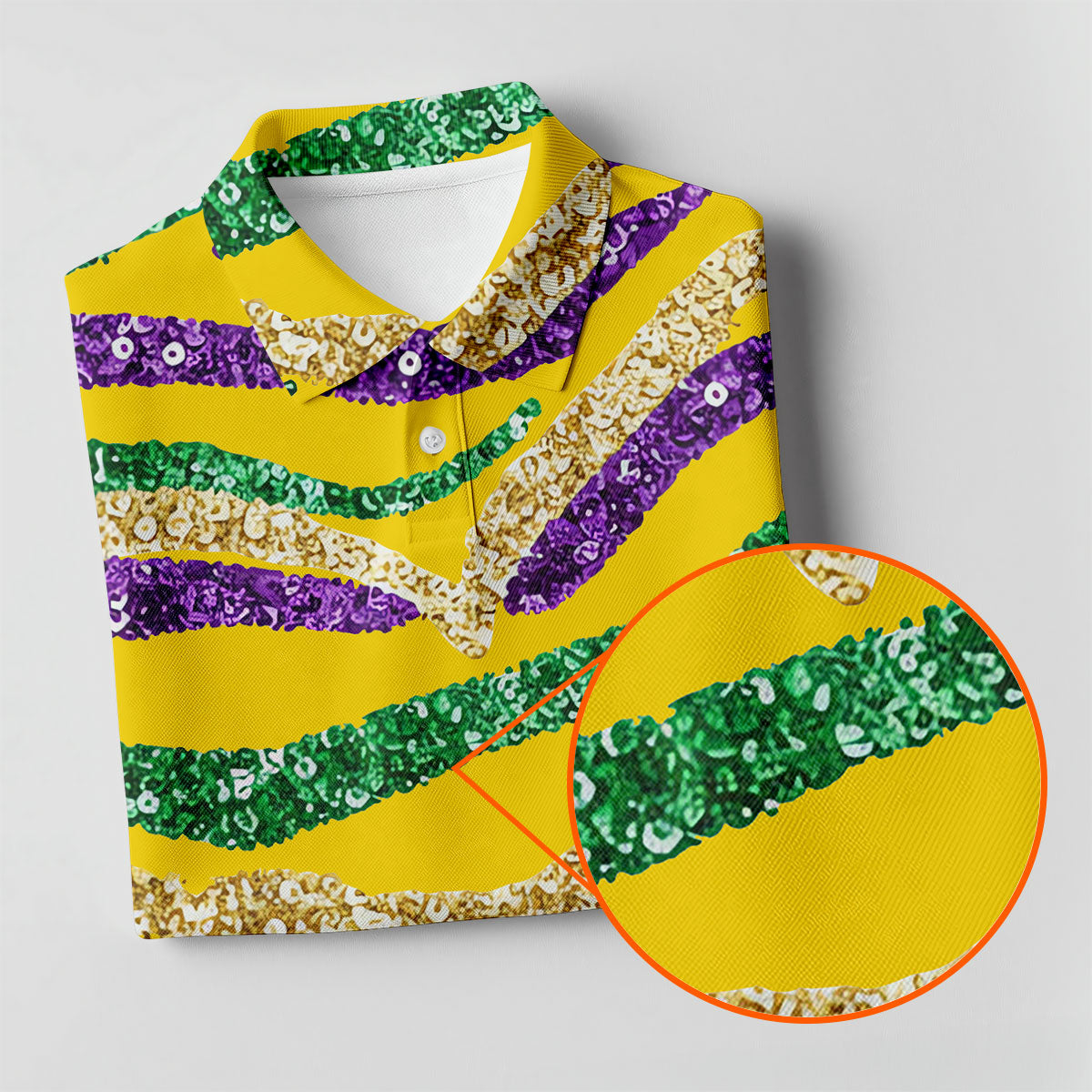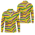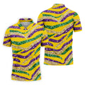 Purple Green Gold Sequin Pattern Yellow Golf Shirt, Mardi Gras Golf Shirt, Polo Shirts For Men