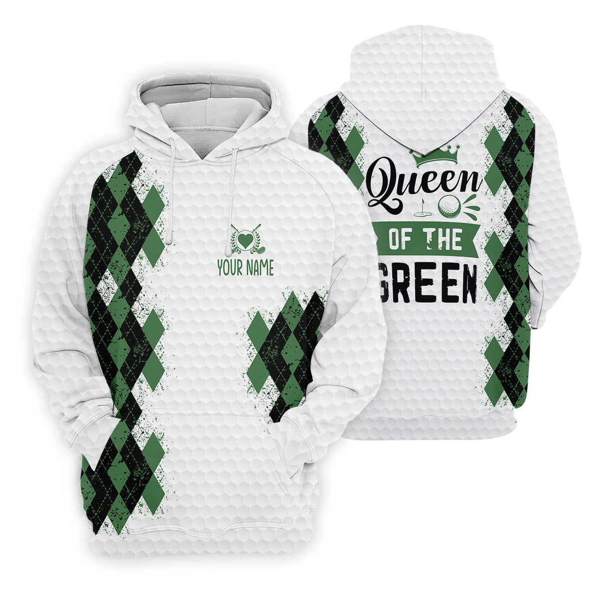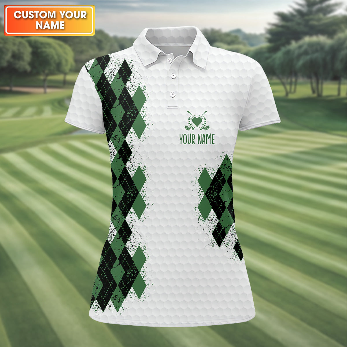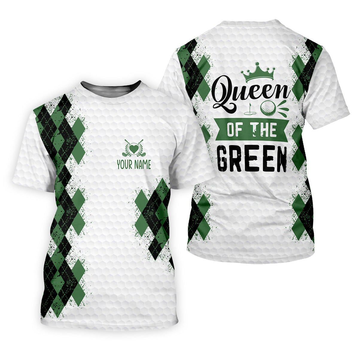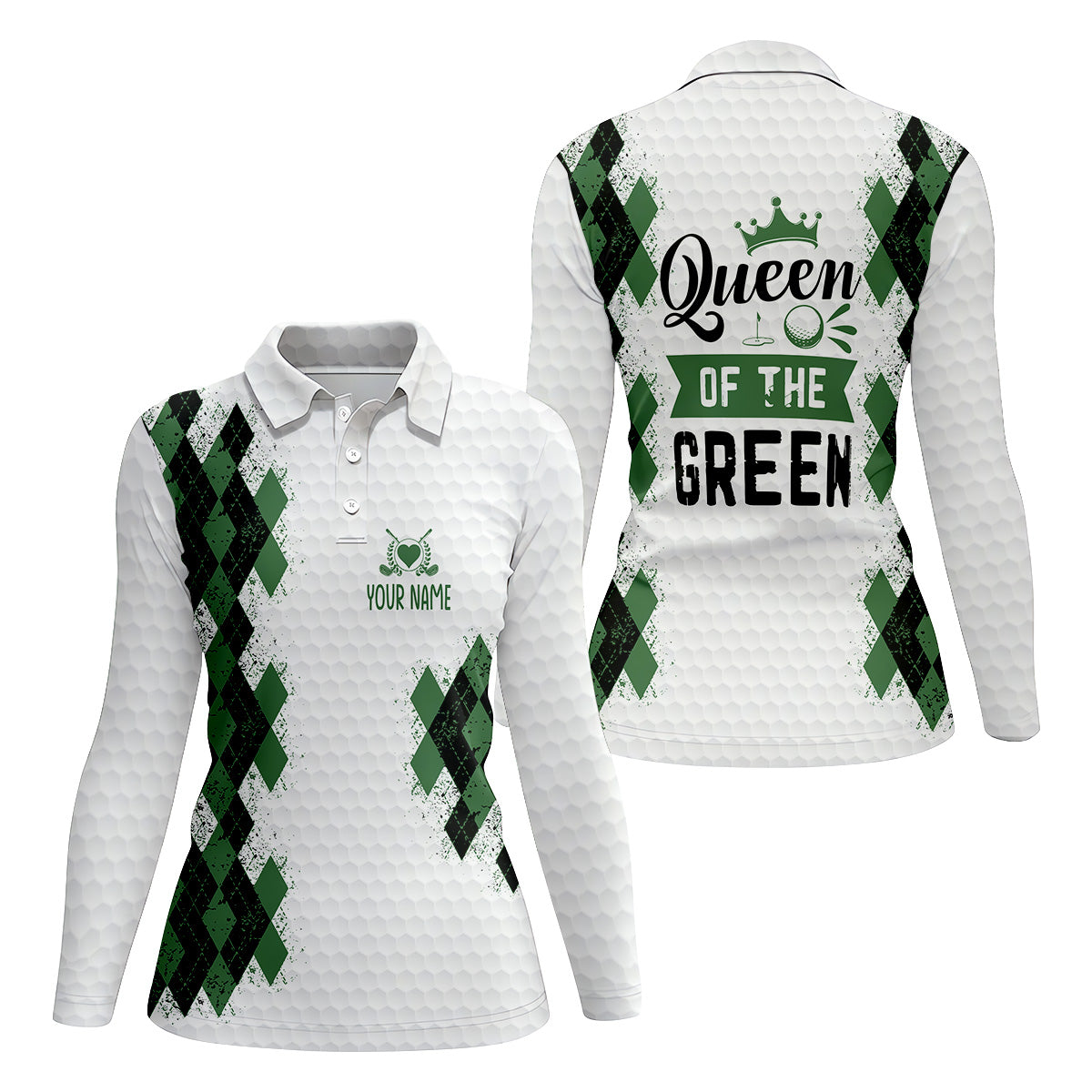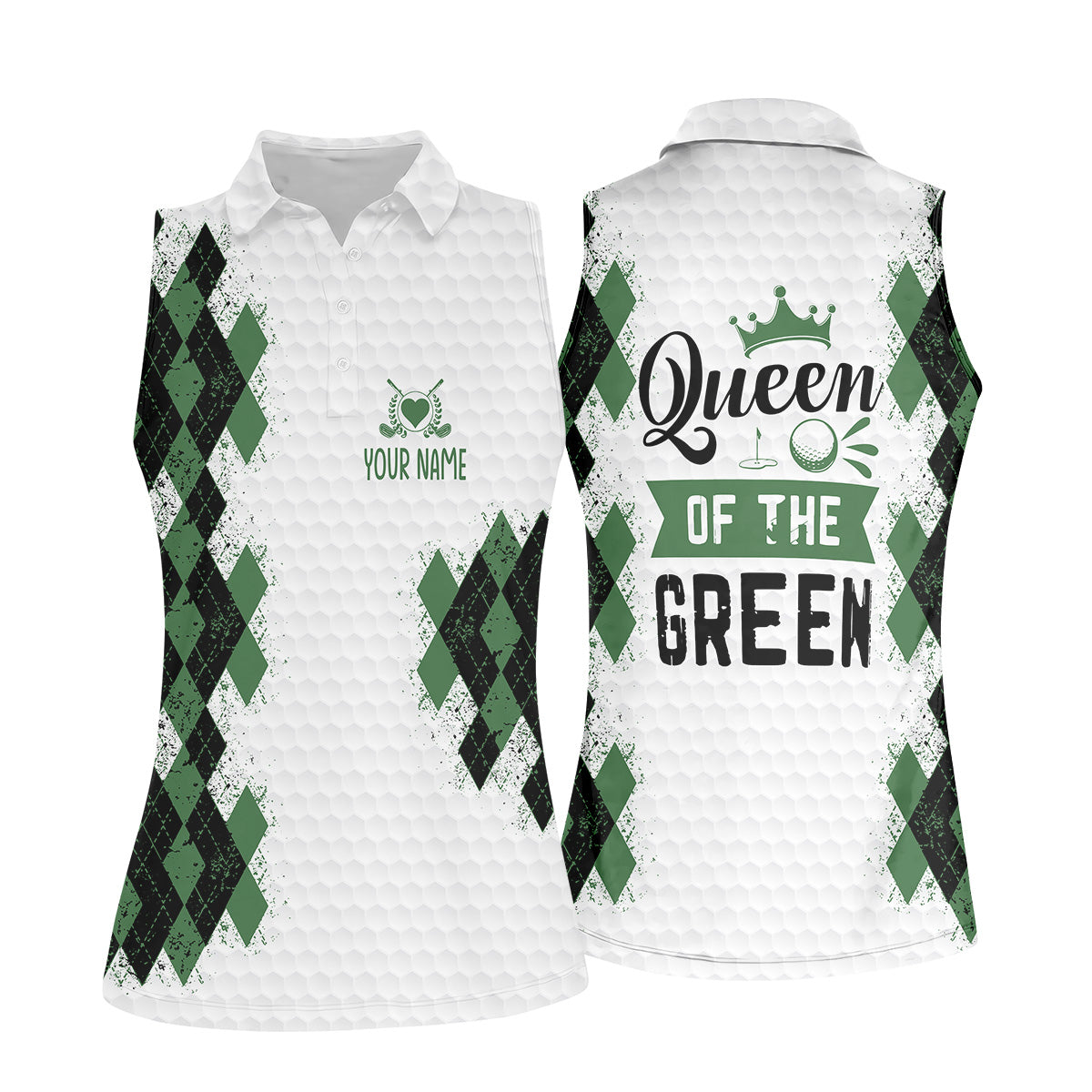 Meet the Queen Of The Green Argyle Golf Shirt, White Polo Women, Ladies Sleeveless Polo, Ladies Golf Shirts – a shirt so bold it makes argyle cry in the corner. Designed for golfers who'd rather make a fashion statement than follow dress codes, this polo is your ticket to turning heads, raising eyebrows, and maybe distracting your buddies just enough to win a few holes. (We’re not saying it’s cheating... we’re saying it’s strategy.)