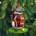 Red Golf Bag Acrylic Ornament, Custom Name Golf Ornament, Christmas Golf Gift, Custom Golf Gift