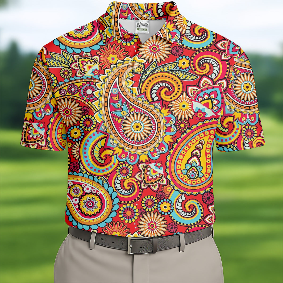 Meet the Red Paisley Seamless Pattern Golf Tops For Men, Hawaiian Golf Shirts, Long Sleeve Polo – a shirt so bold it makes argyle cry in the corner. Designed for golfers who'd rather make a fashion statement than follow dress codes, this polo is your ticket to turning heads, raising eyebrows, and maybe distracting your buddies just enough to win a few holes. (We’re not saying it’s cheating... we’re saying it’s strategy.)