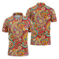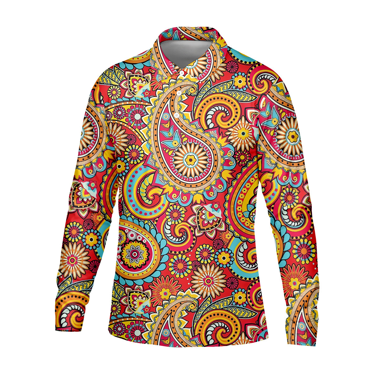 Red Paisley Seamless Pattern Golf Tops For Men, Hawaiian Golf Shirts, Long Sleeve Polo