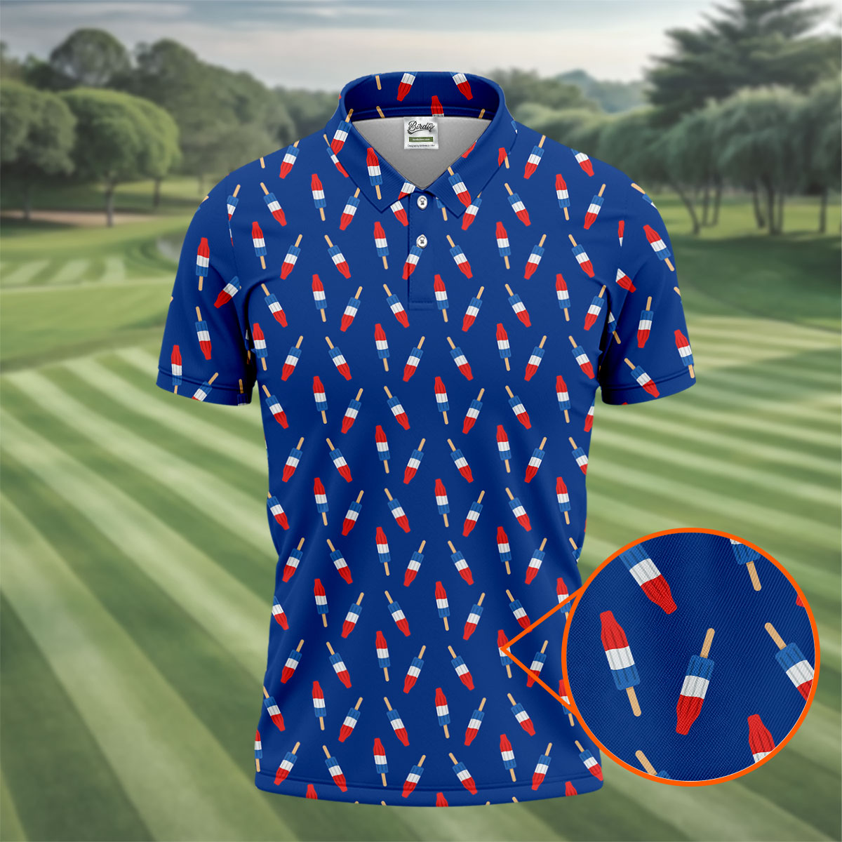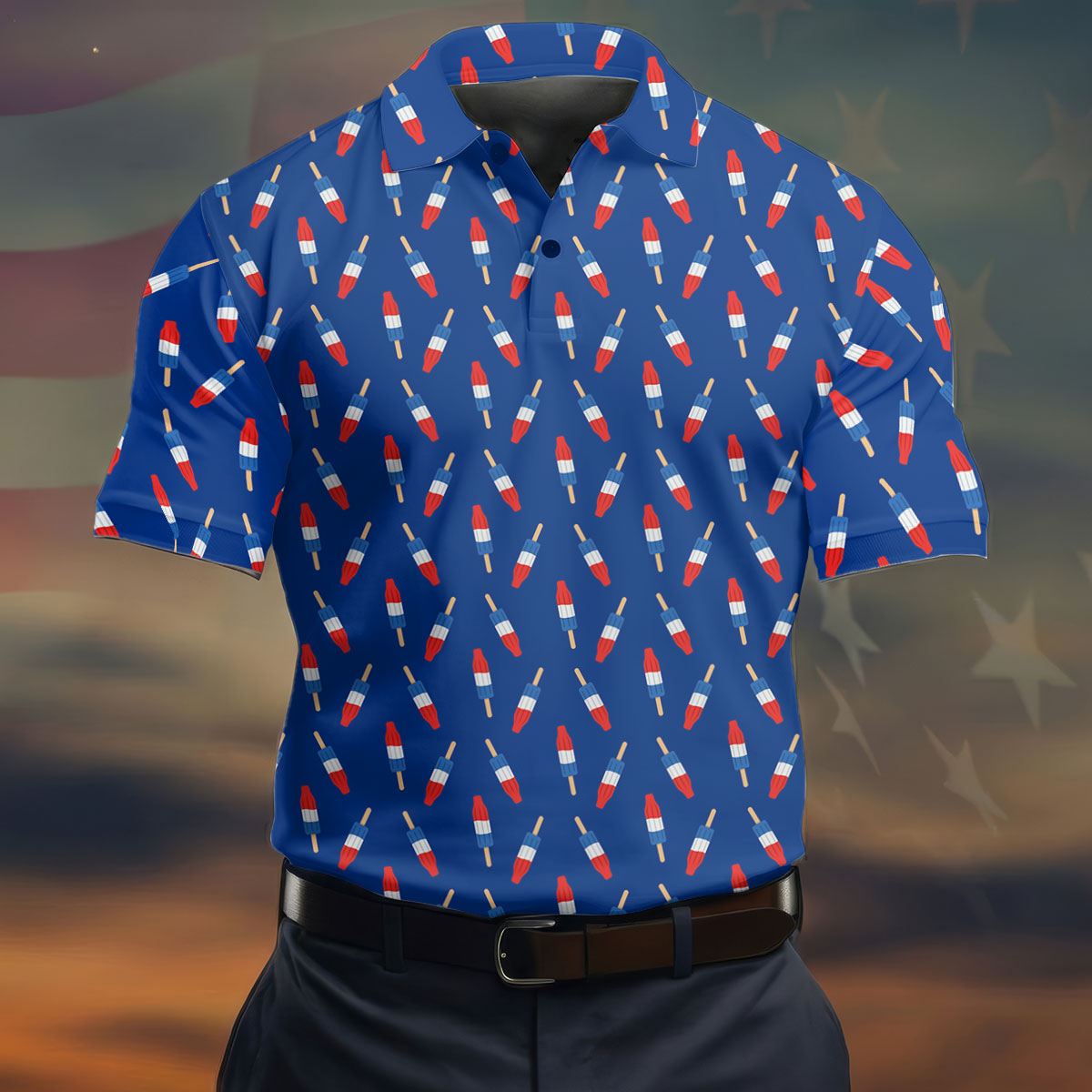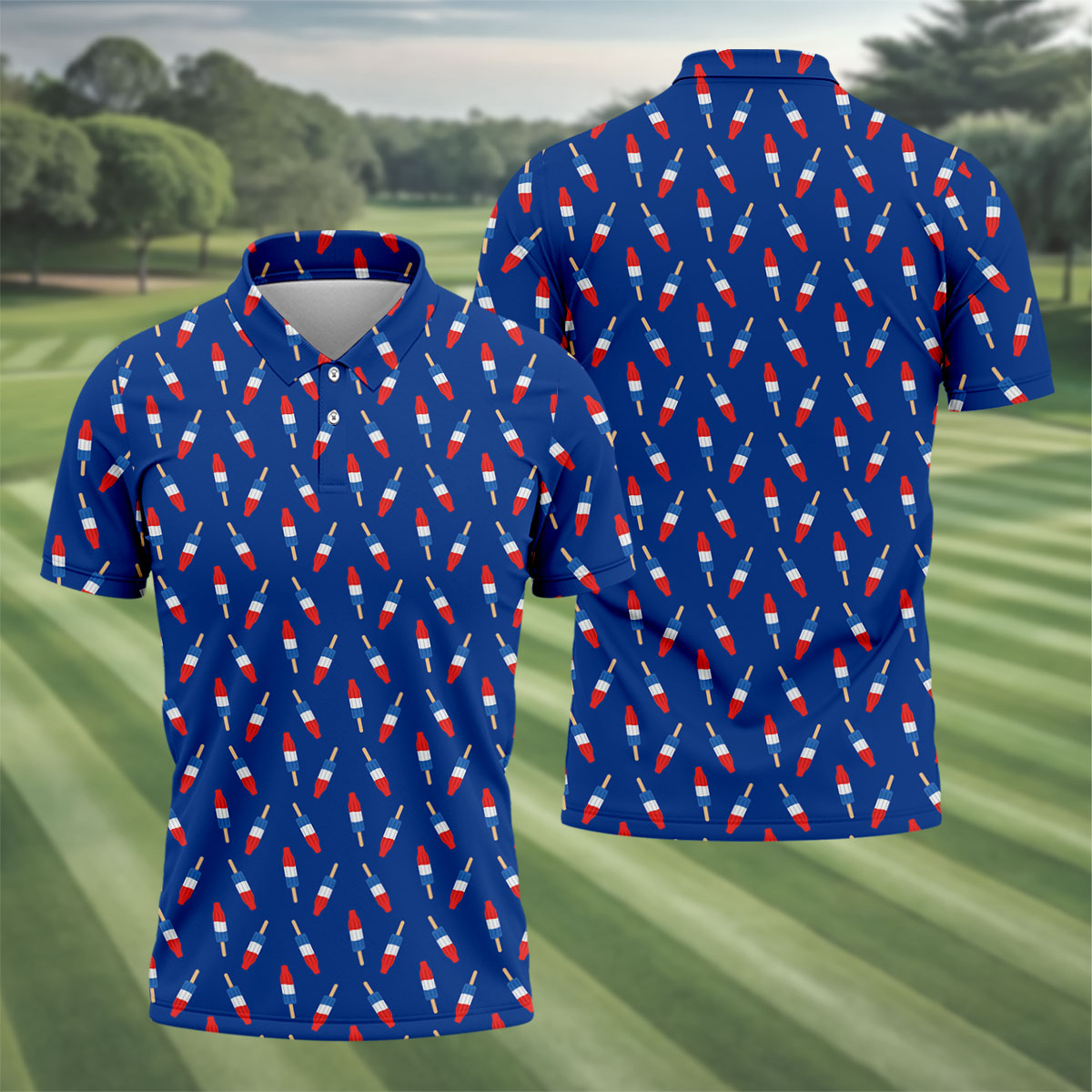 Red White Blue Patriotic Popsicles 4th Of July Golf Shirt, 250th Anniversary Golf Shirts For Men