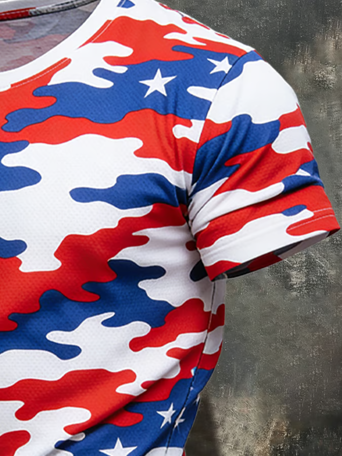 Red White Blue Retro Camo America 250 1776-2026 Patriotic Golf Shirt, 4th Of July Golf Shirt, Golf Shirts For Men