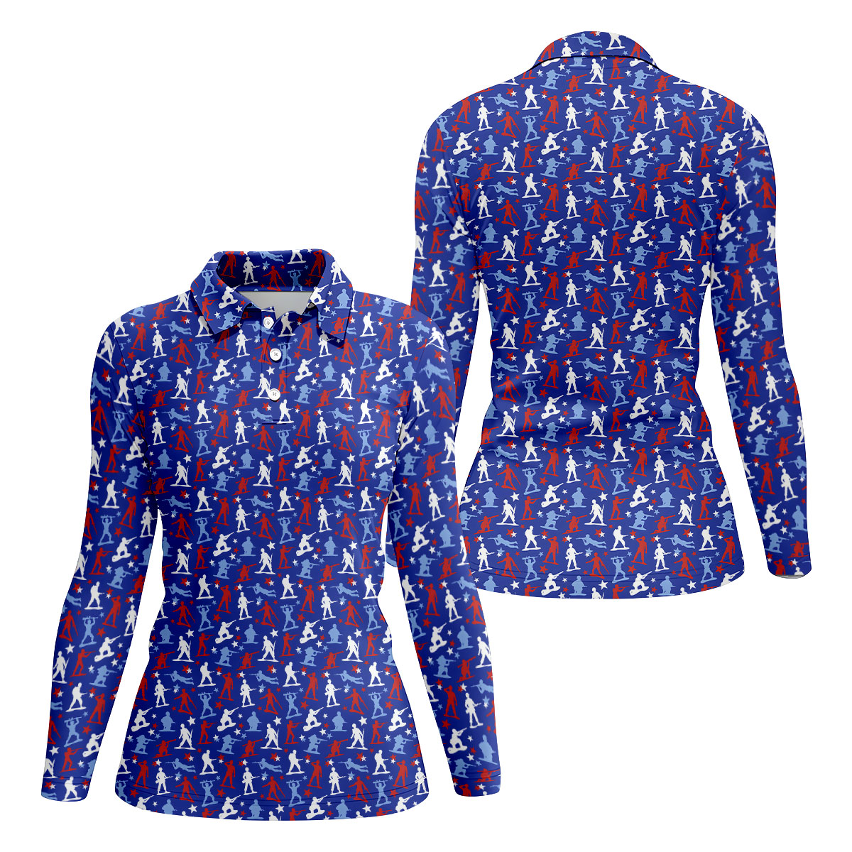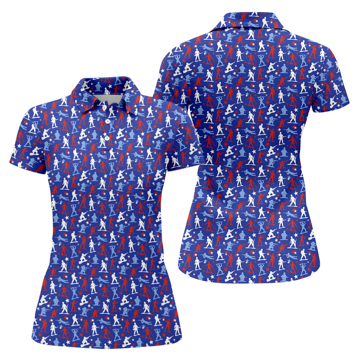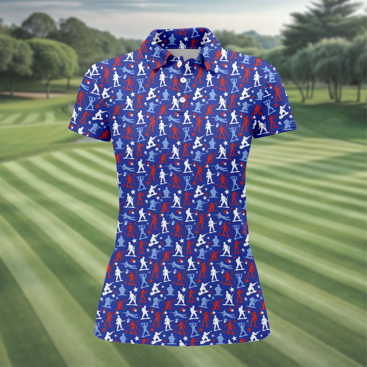 Red White Blue Soldier Pose Patriotic 4th Of July Golf Shirt, 250th Anniversary Golf Shirt For Women