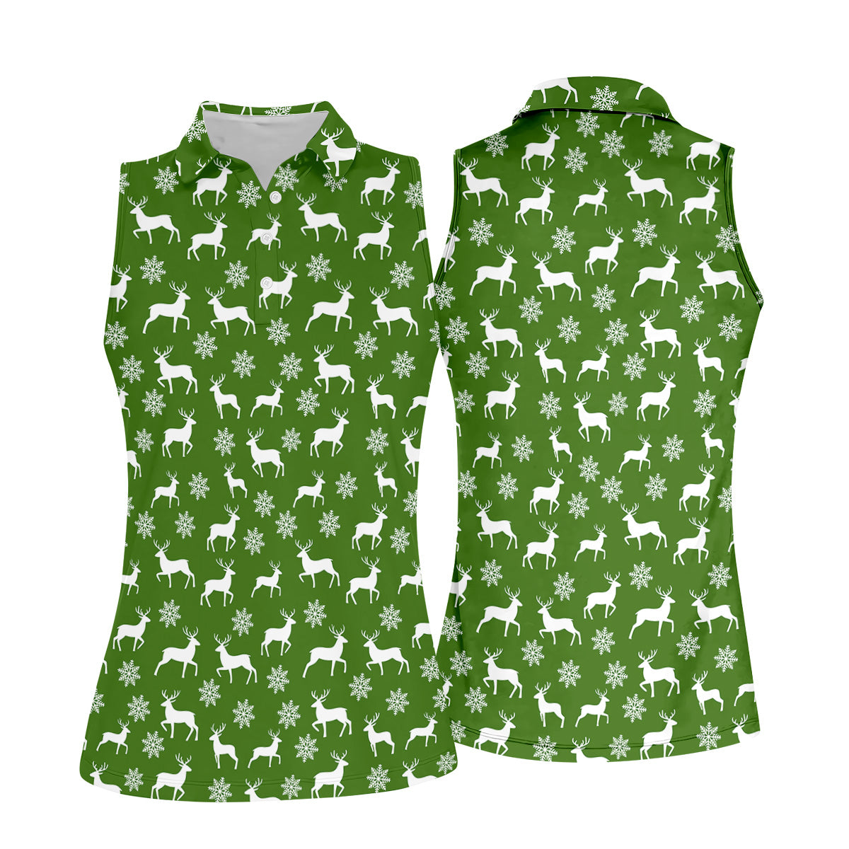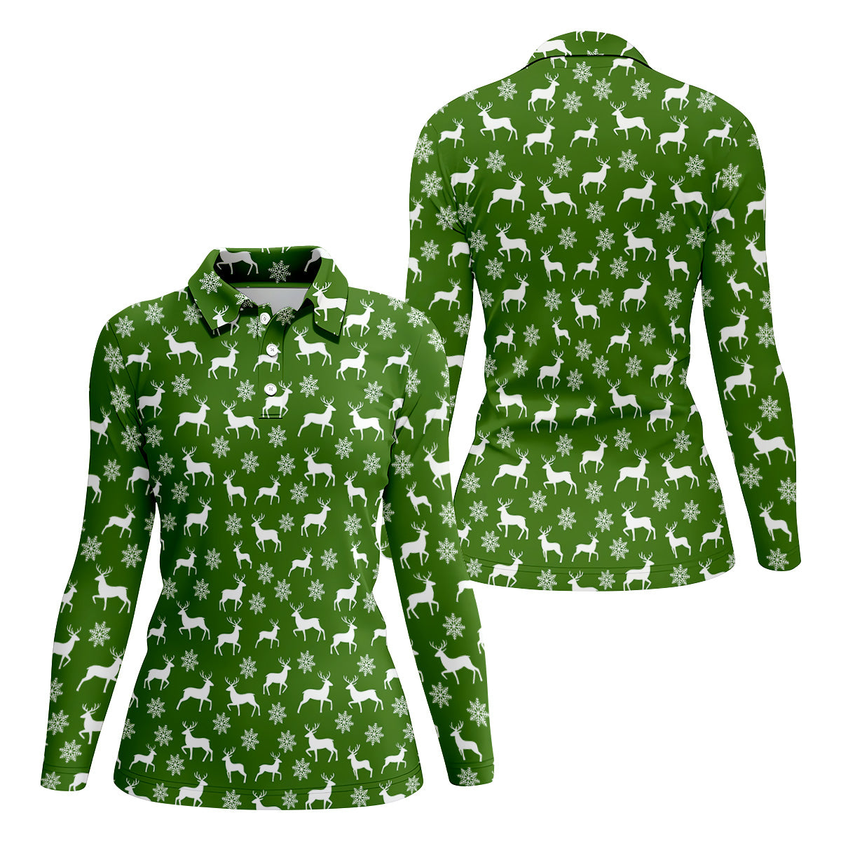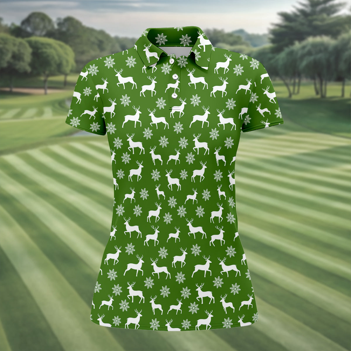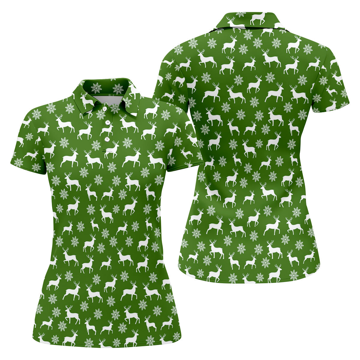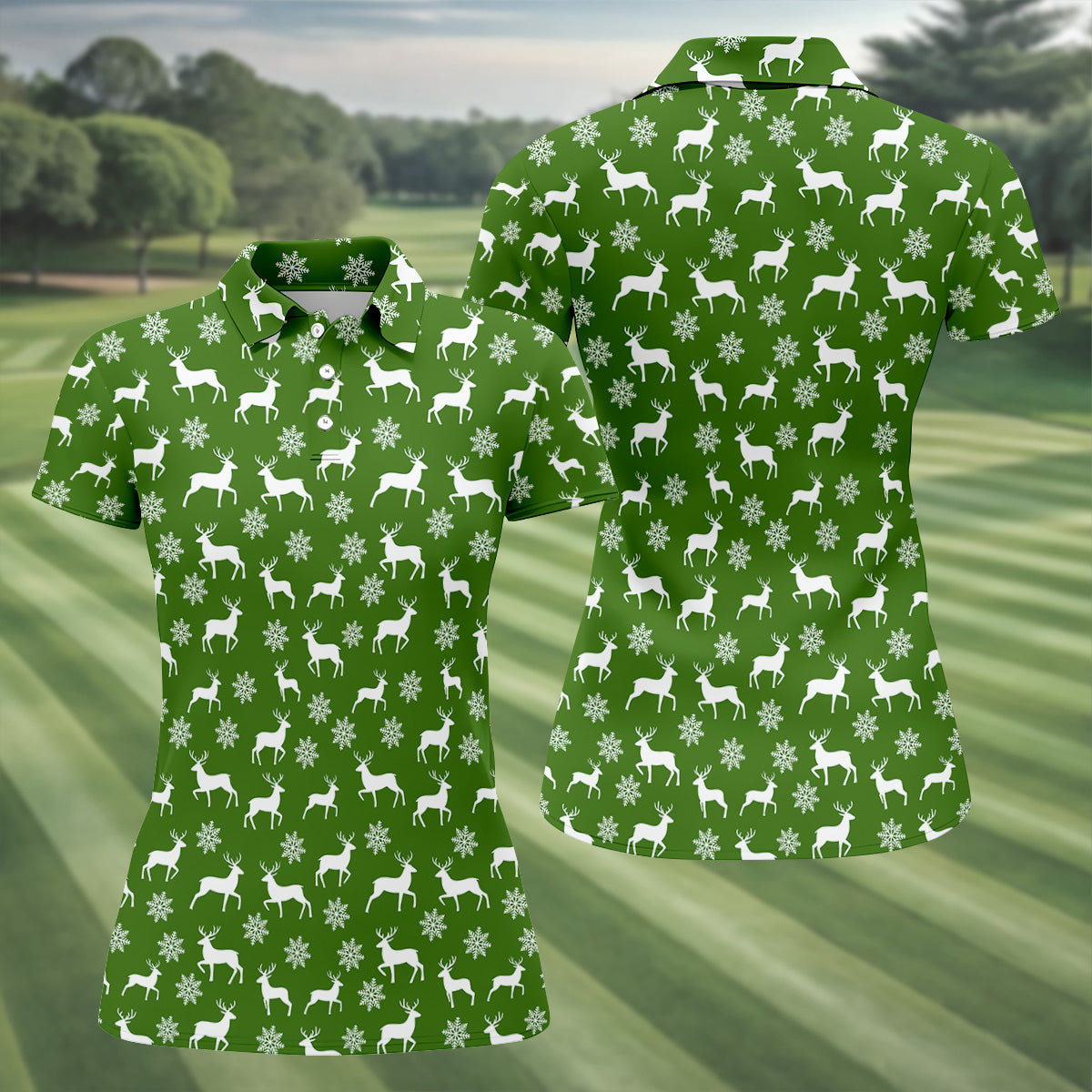 Reindeer Christmas Green Golf Shirt, Christmas Golf Shirt, Golf Shirt For Women, Ladies Golf Polos