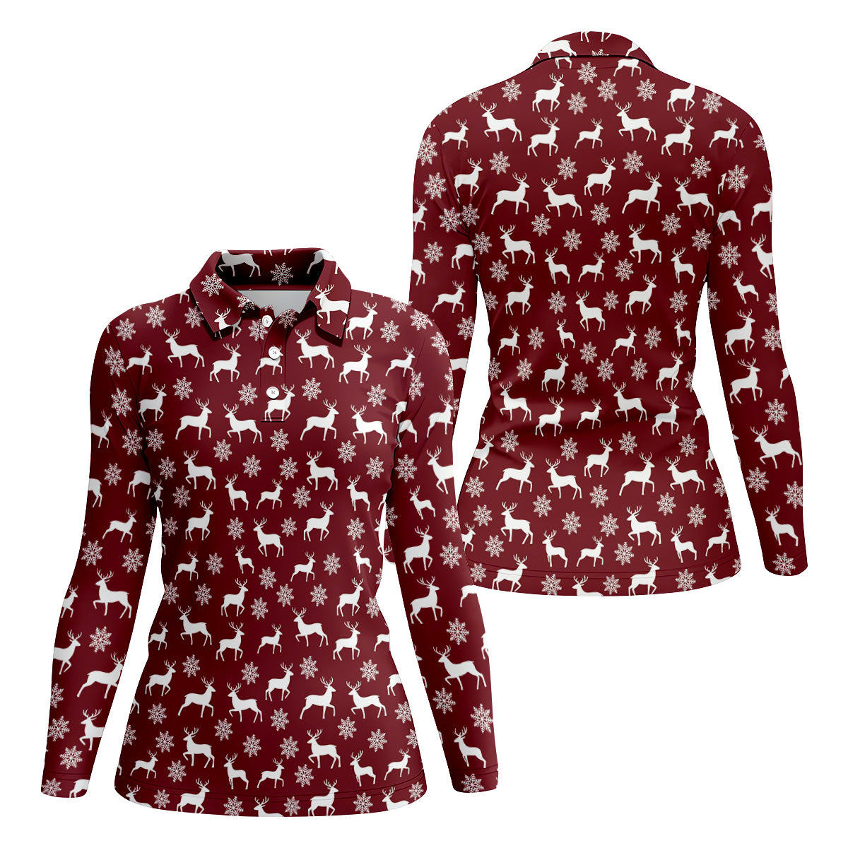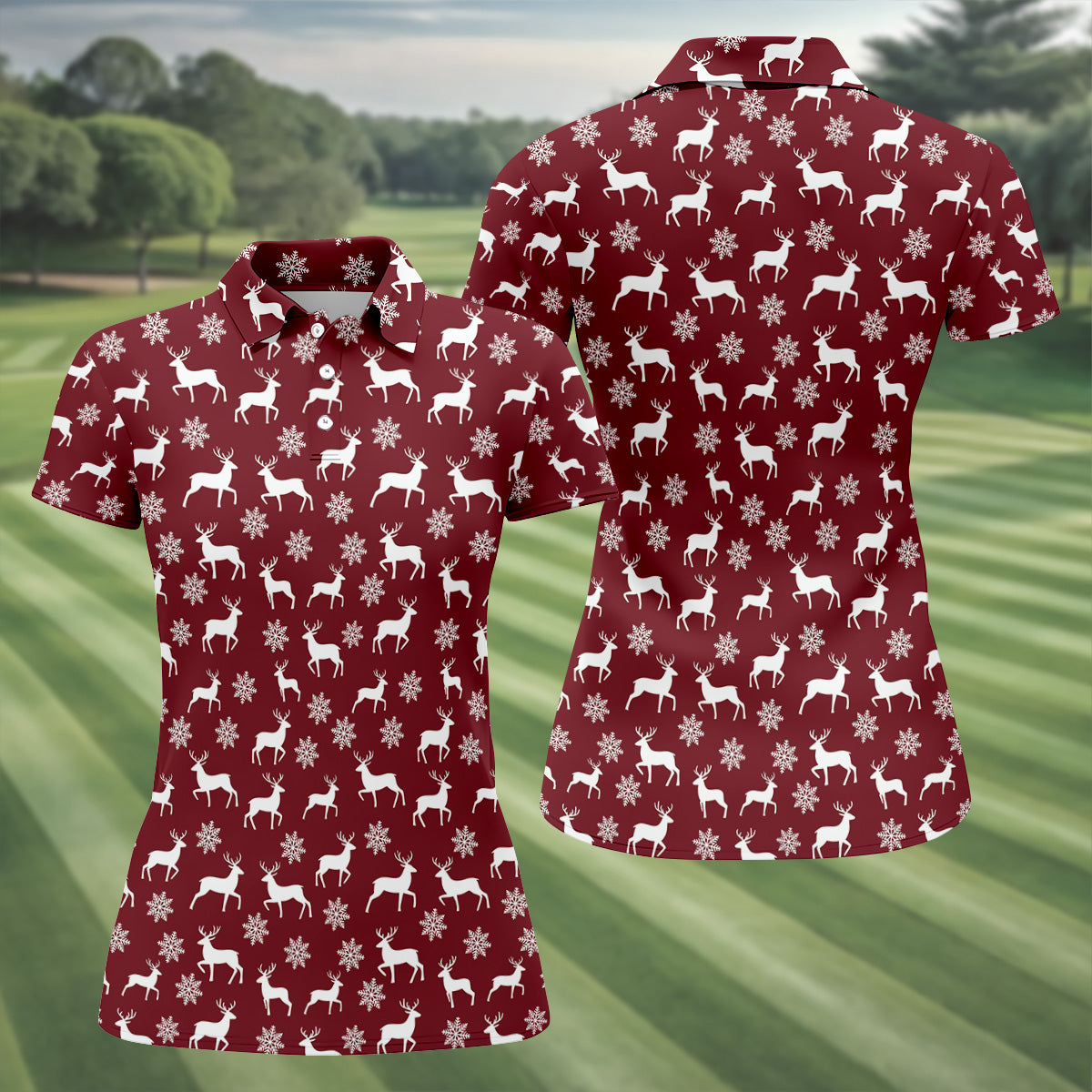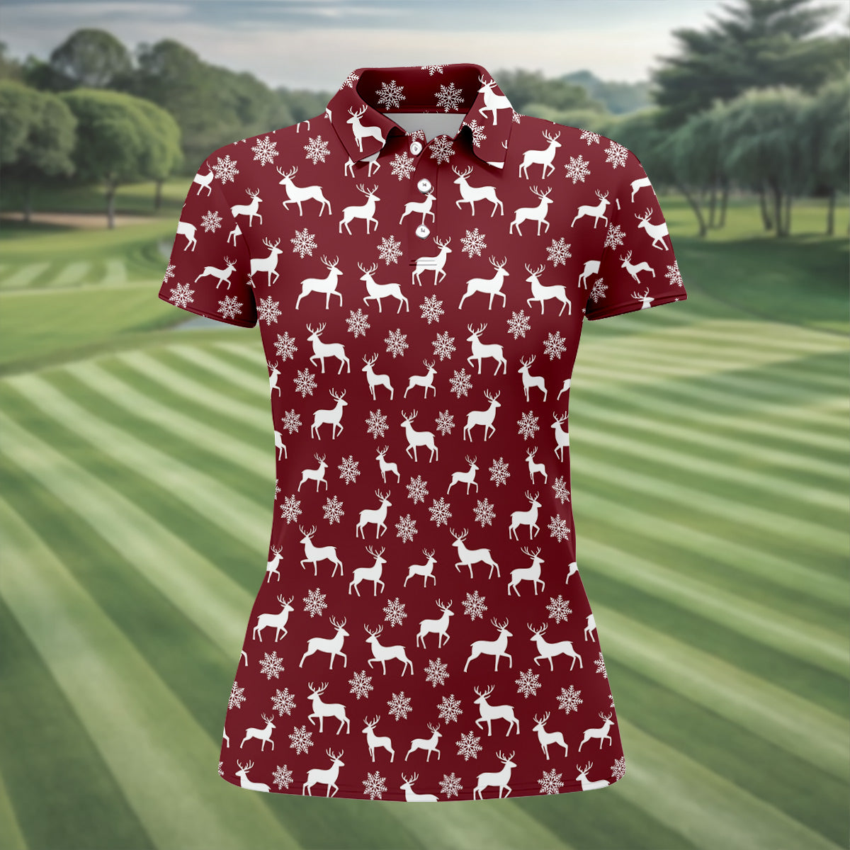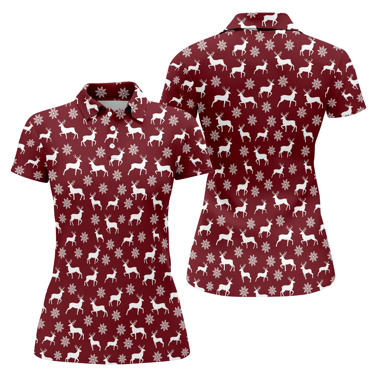 Reindeer Christmas Maroon Golf Shirt, Christmas Golf Shirt, Golf Shirt For Women, Ladies Golf Polos