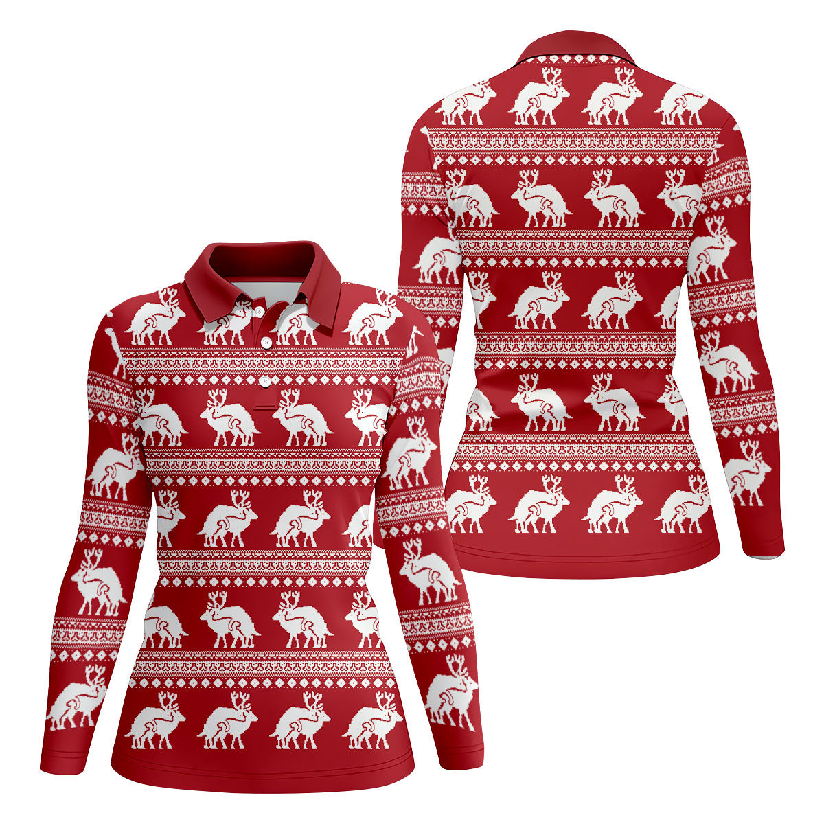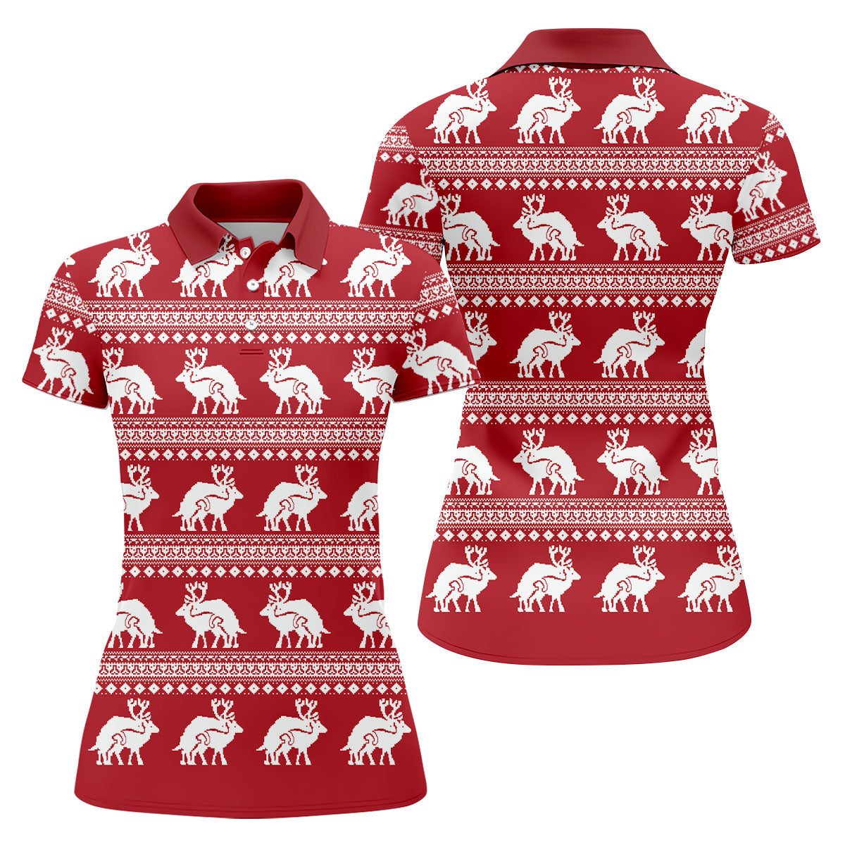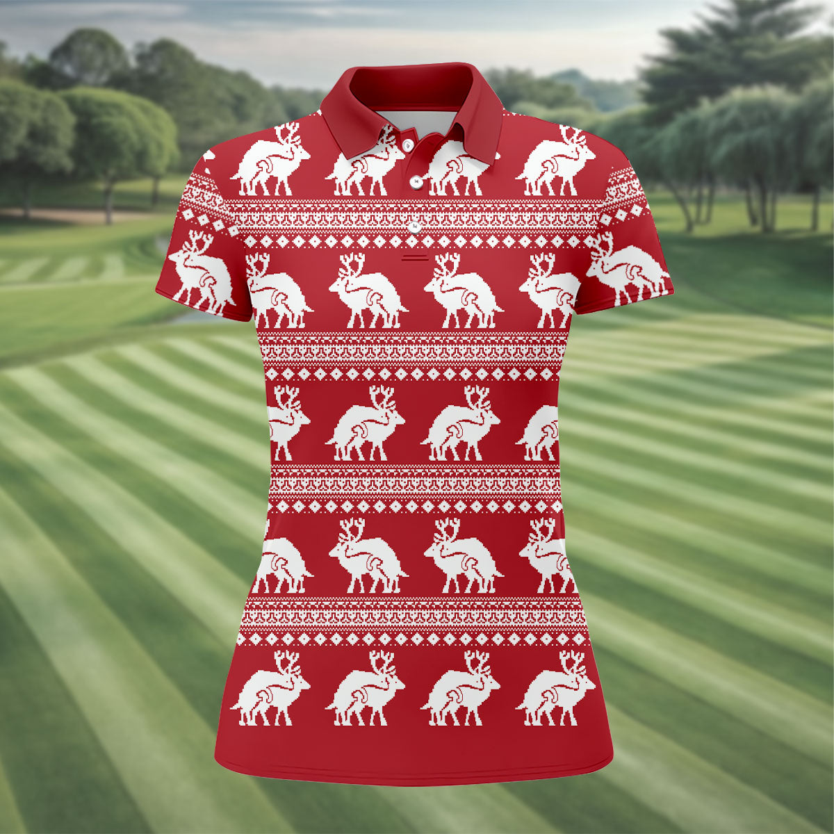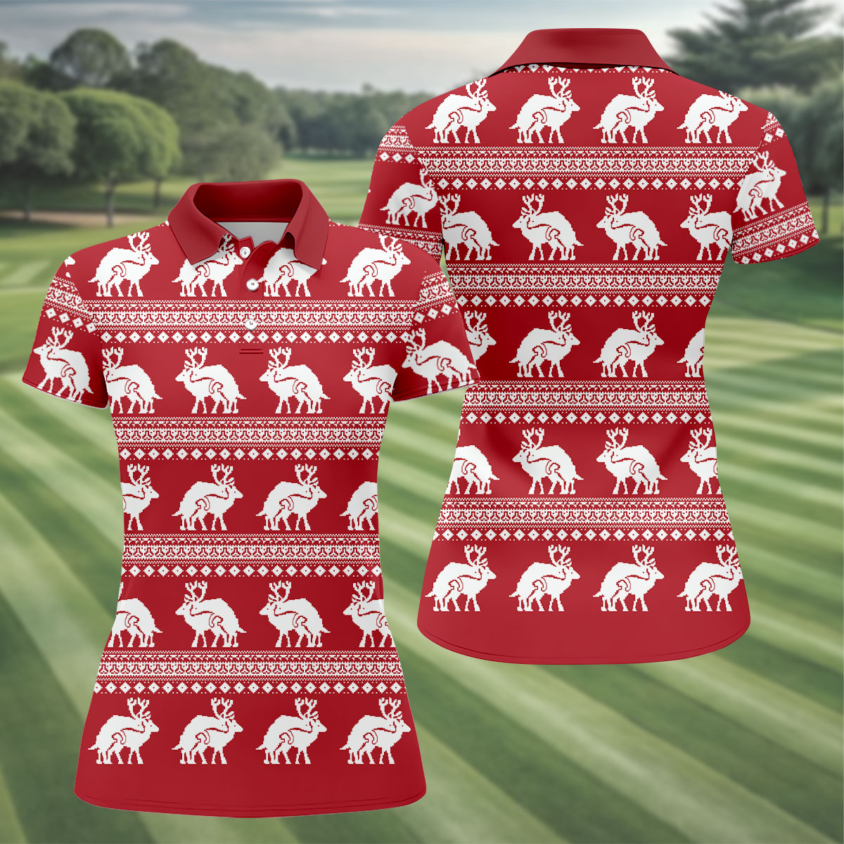 Reindeer Humping Seamless Pattern Golf Shirt, Christmas Golf Shirt, Golf Gifts For Women, Fun Golf Shirt