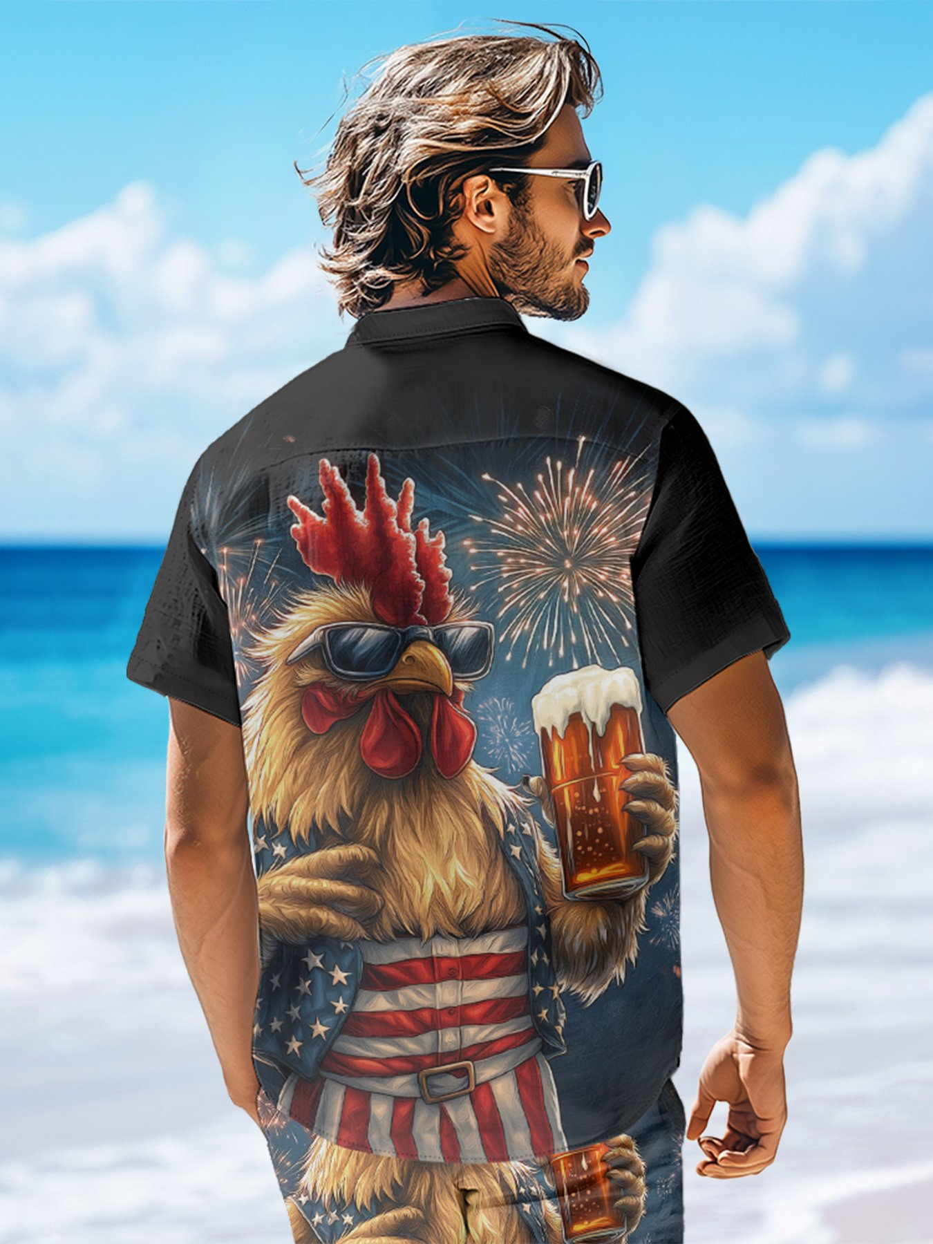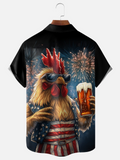 Rooster Beer USA Patriotic Hawaiian Golf Shirt, 250th Anniversary Tropical Vibe Men's Golf Shirt