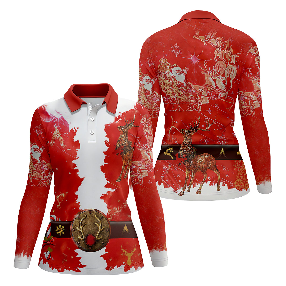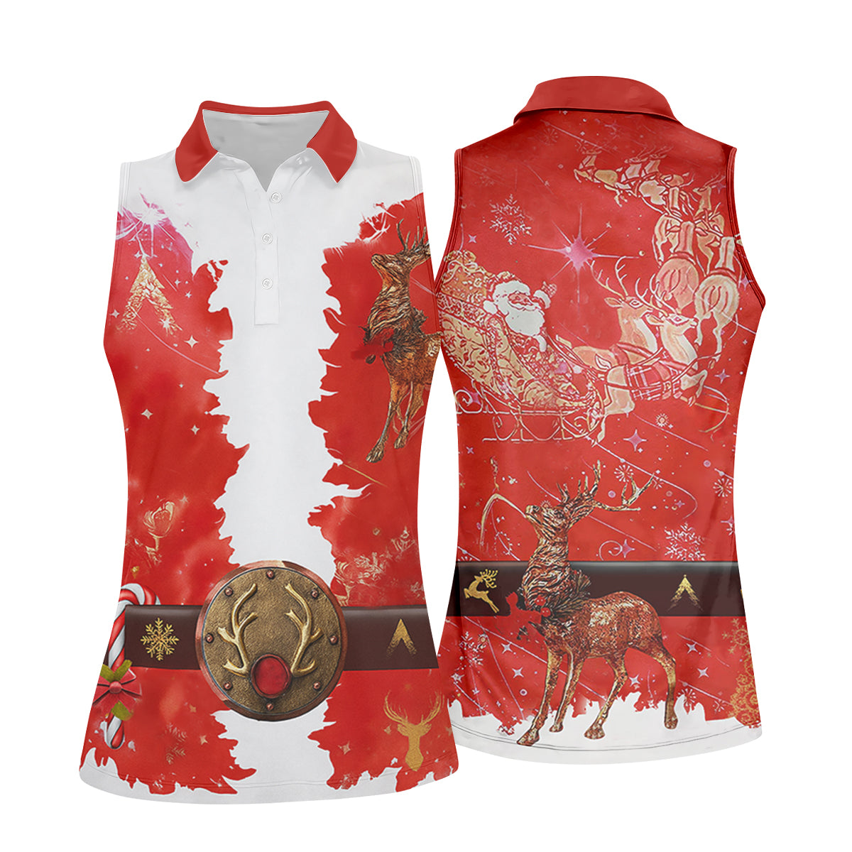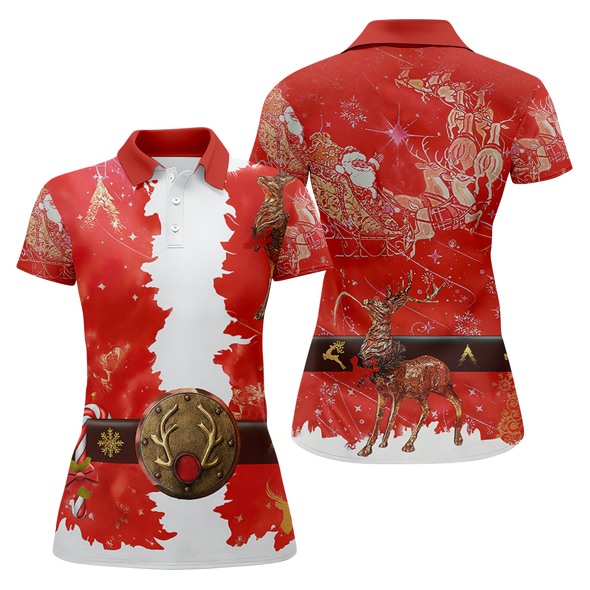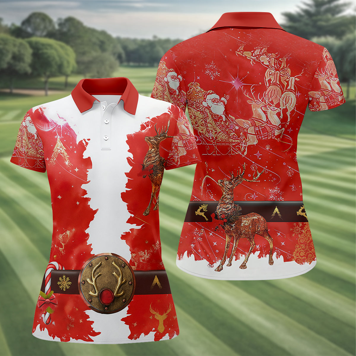 Santa Claus Christmas Print Fun Women's Golf Shirts, Cute Golf Outfit, Ladies Golf Shirts, Golfing Apparel