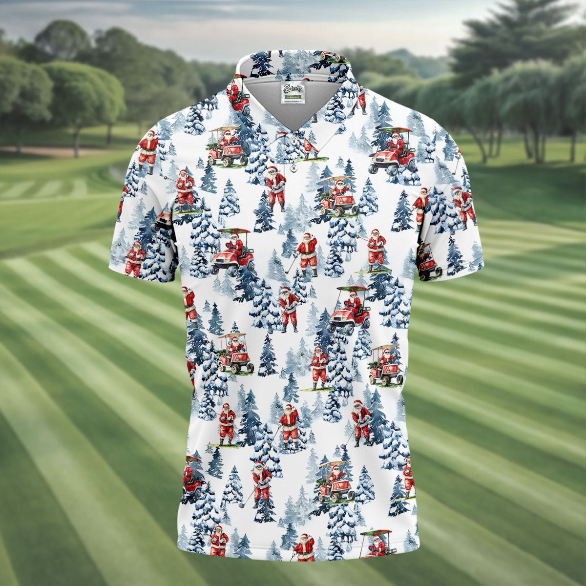 Santa Golfing Polo Shirt Mens, Fun Golf Shirts For Men, Christmas Golf Shirt, Golf Lover Xmas Gift