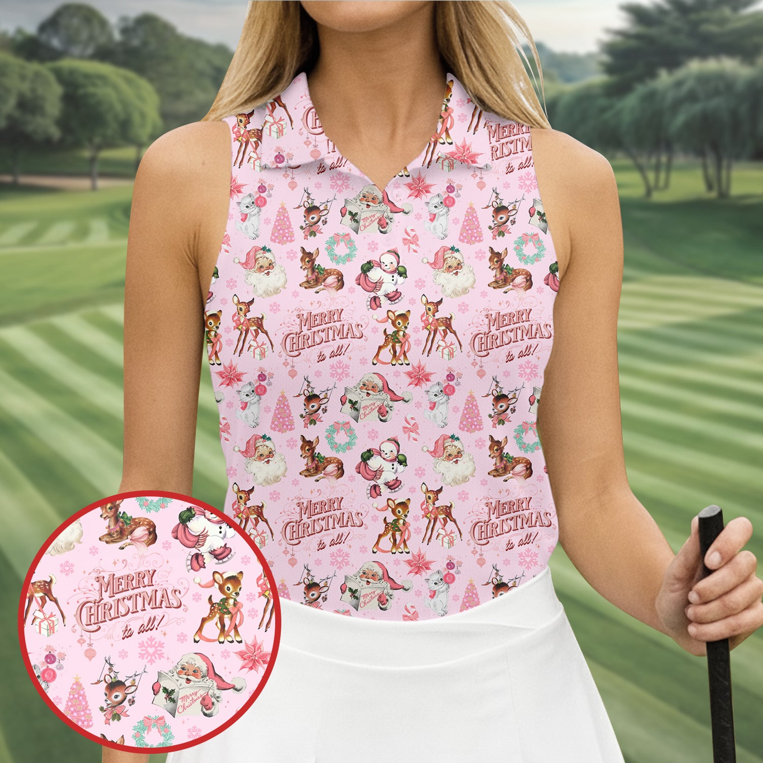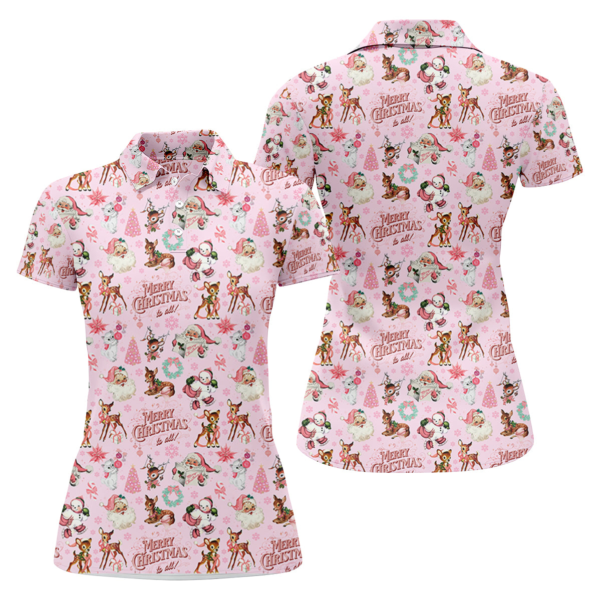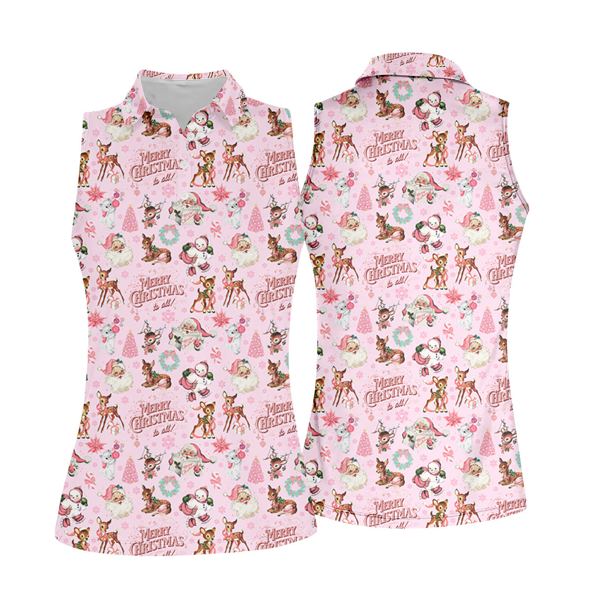 Santa Pink Christmas Golf Tops For Women, Christmas Golf Shirt, Women Golf Apparel