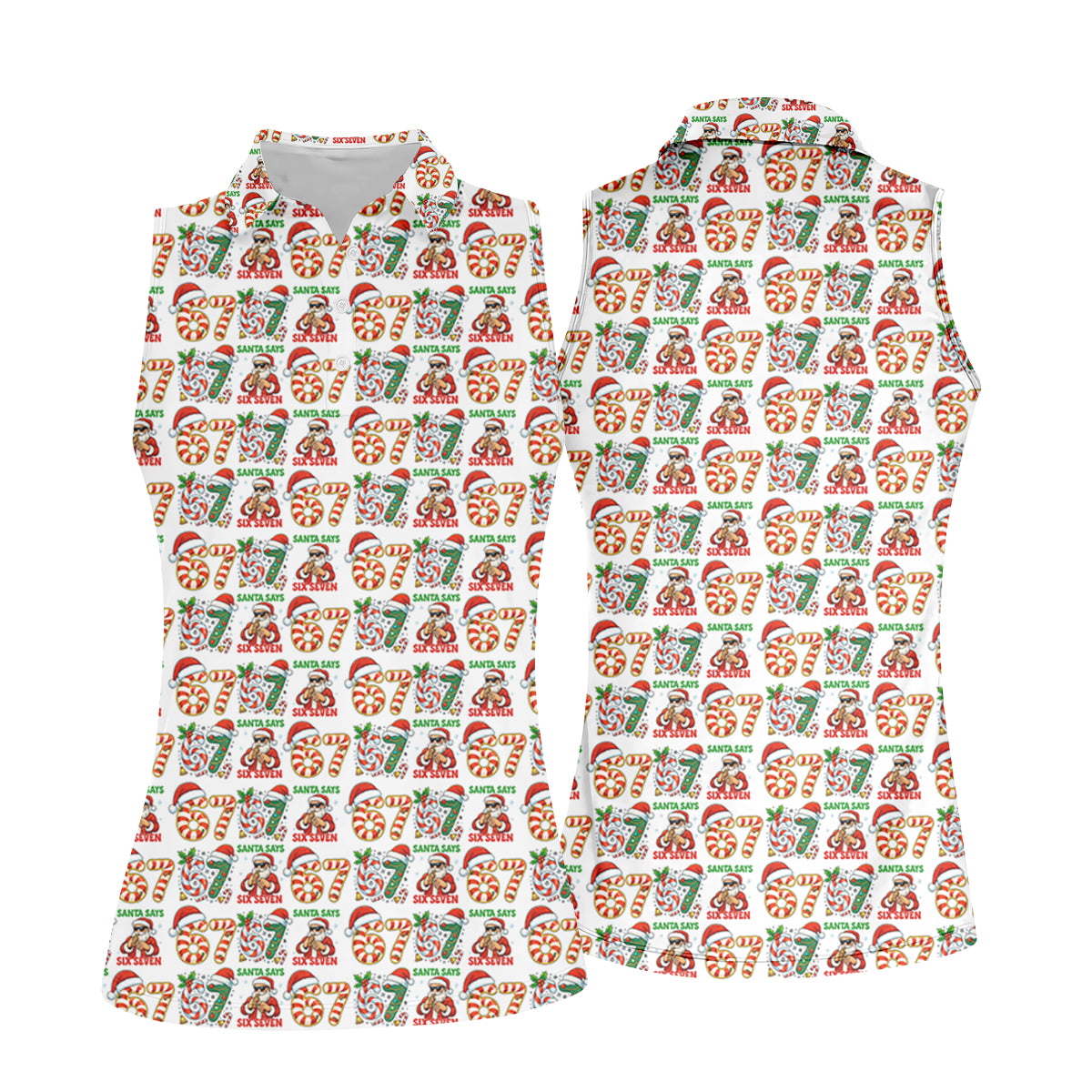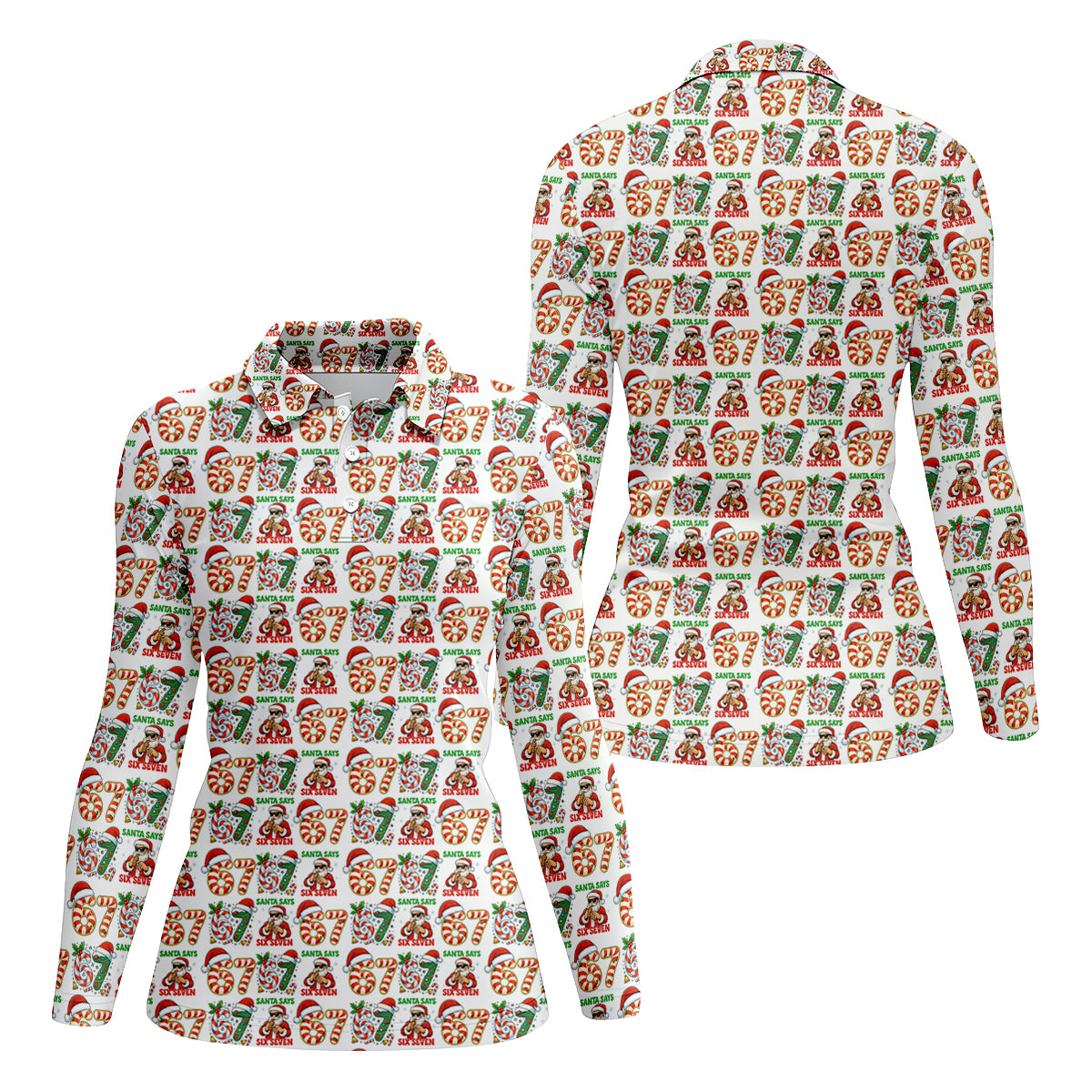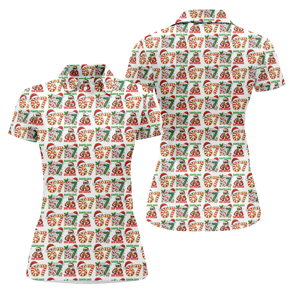 Santa Says Six Seven Funny Christmas Golf Tops For Women, Christmas Golf Shirt, Women Golf Apparel