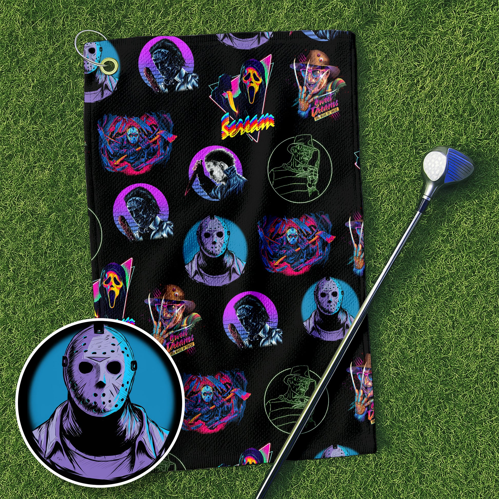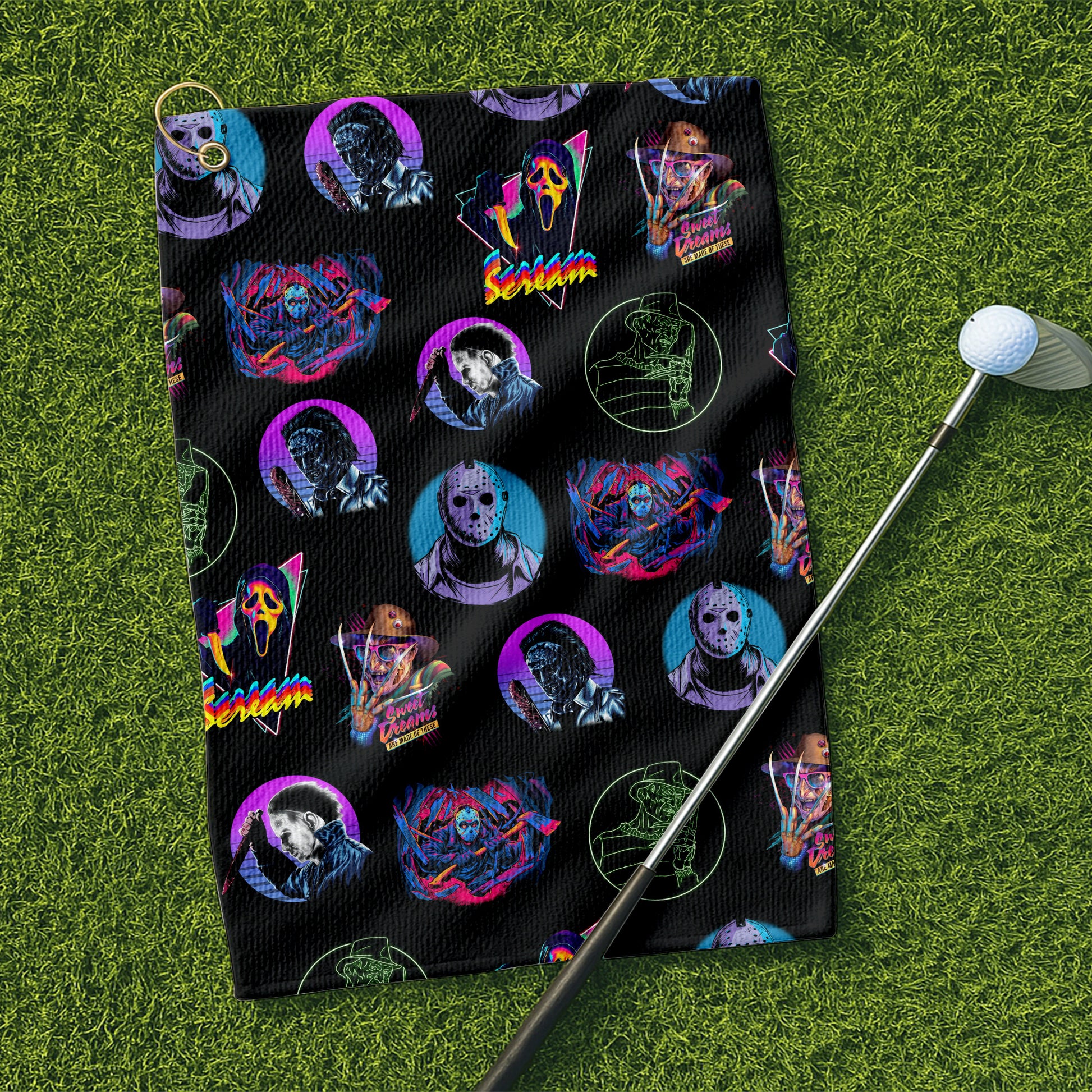 Scary Movie Characters Golf Towel, Unique Gift For Golfer, Christmas Golf Gift, Golf Accessories