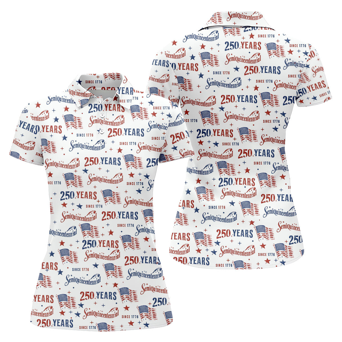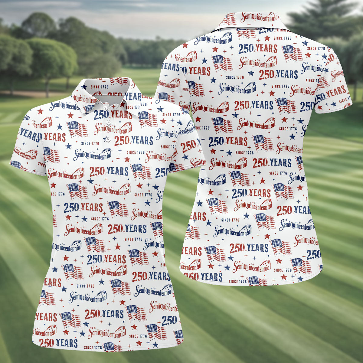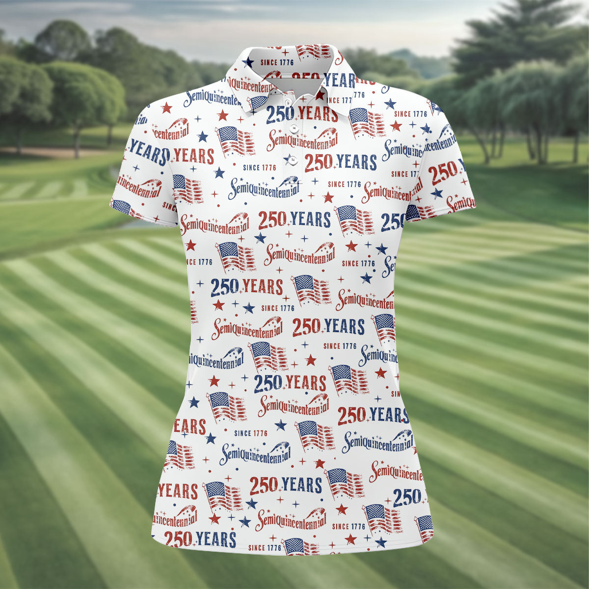 Semiquincentennial 250 Years Since 1776 Ladies Golf Tops, 4th Of July Patriotic Golf Shirt For Women