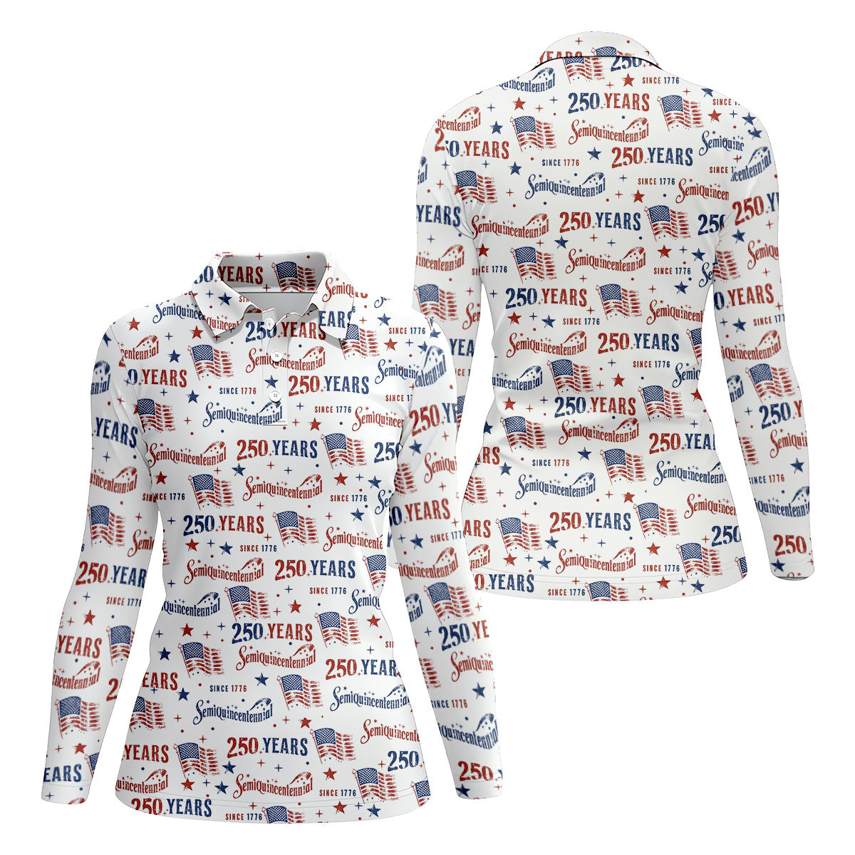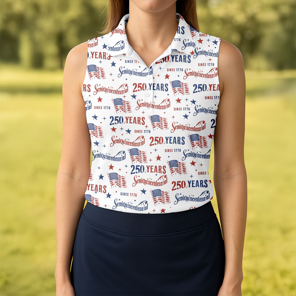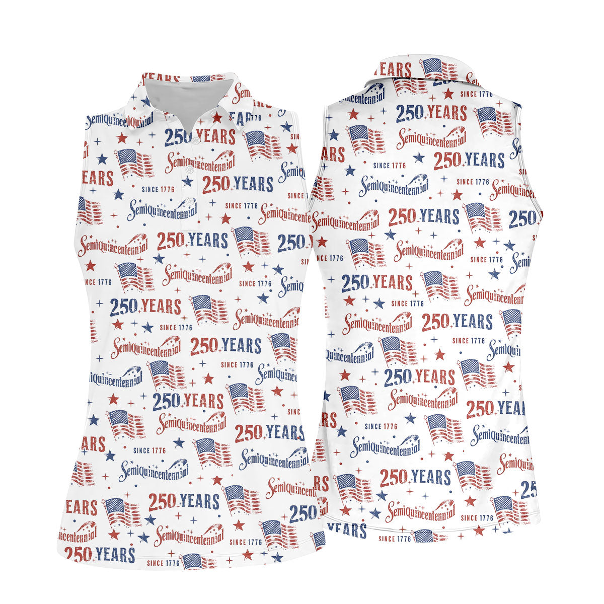 Semiquincentennial 250 Years Since 1776 Ladies Golf Tops, 4th Of July Patriotic Golf Shirt For Women